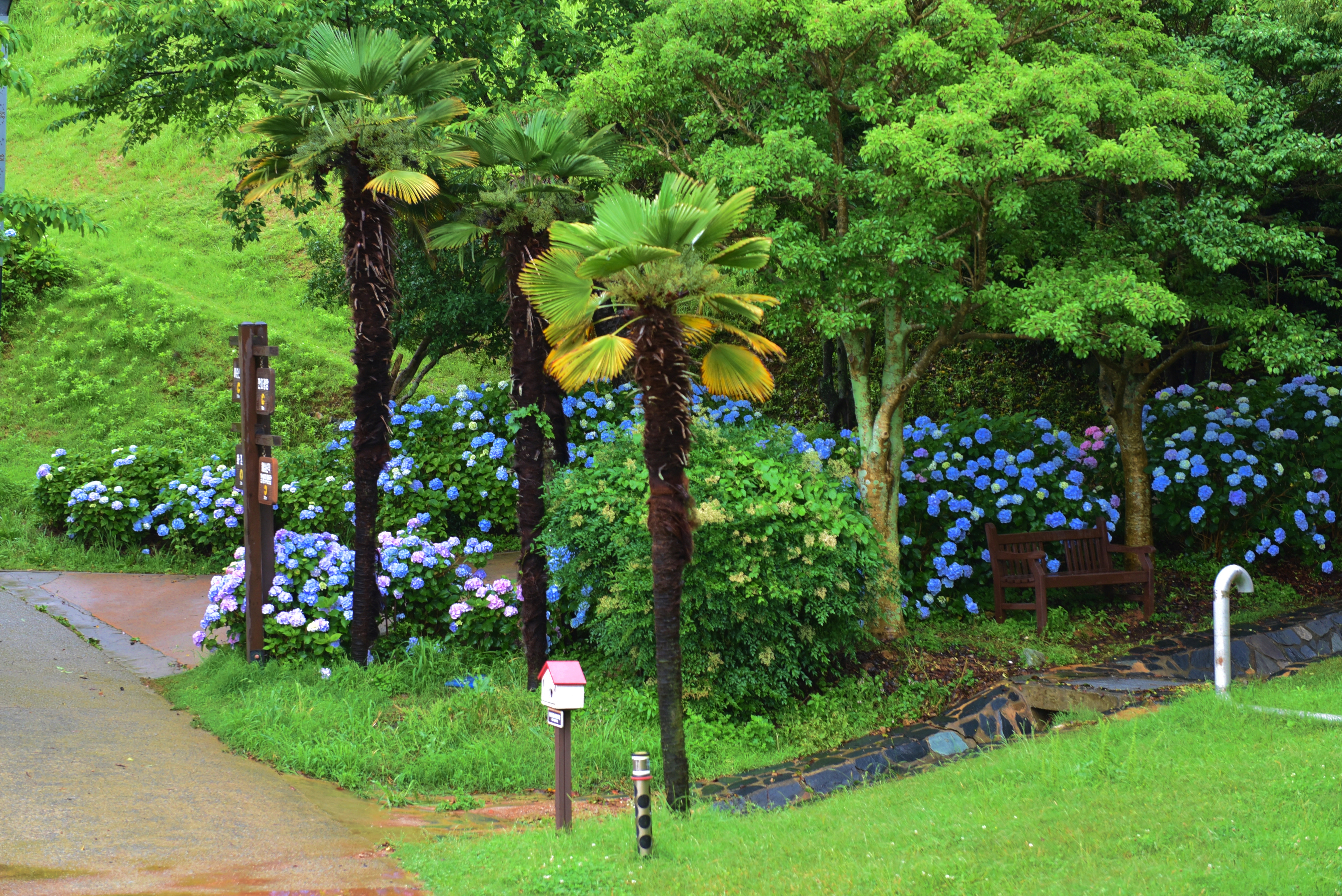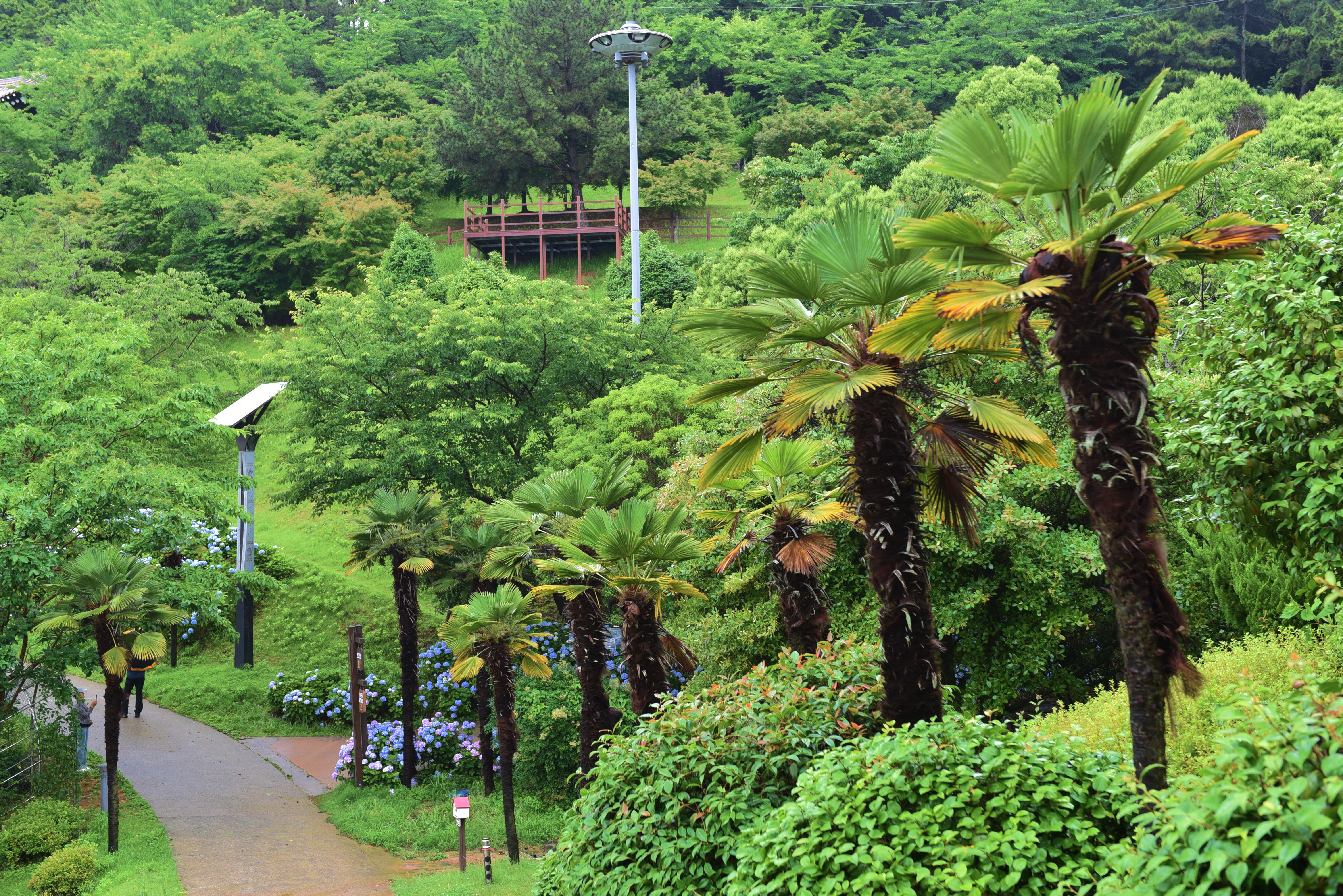 야자수와 어우러진 지나온 수국꽃길을 당겨 담고....