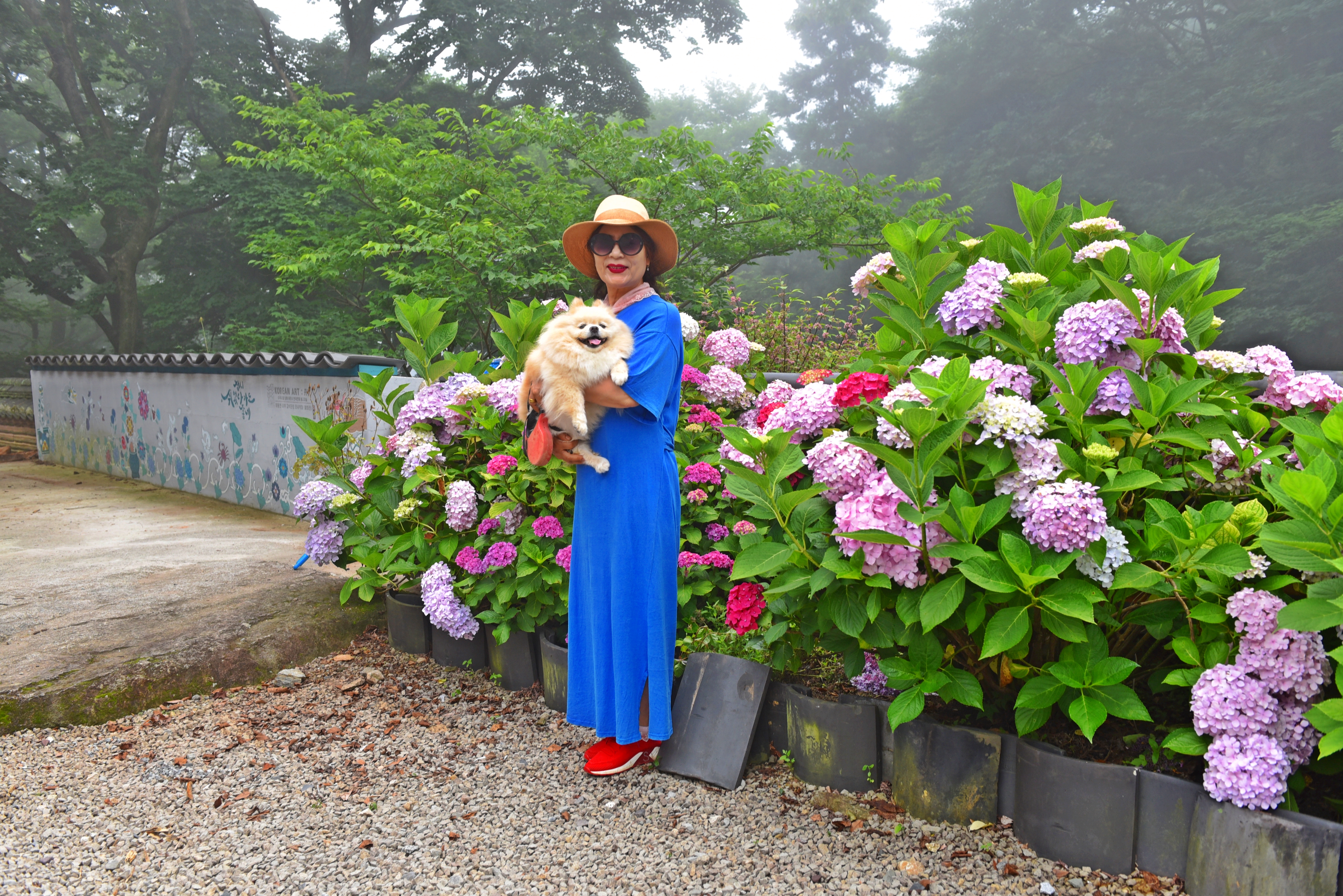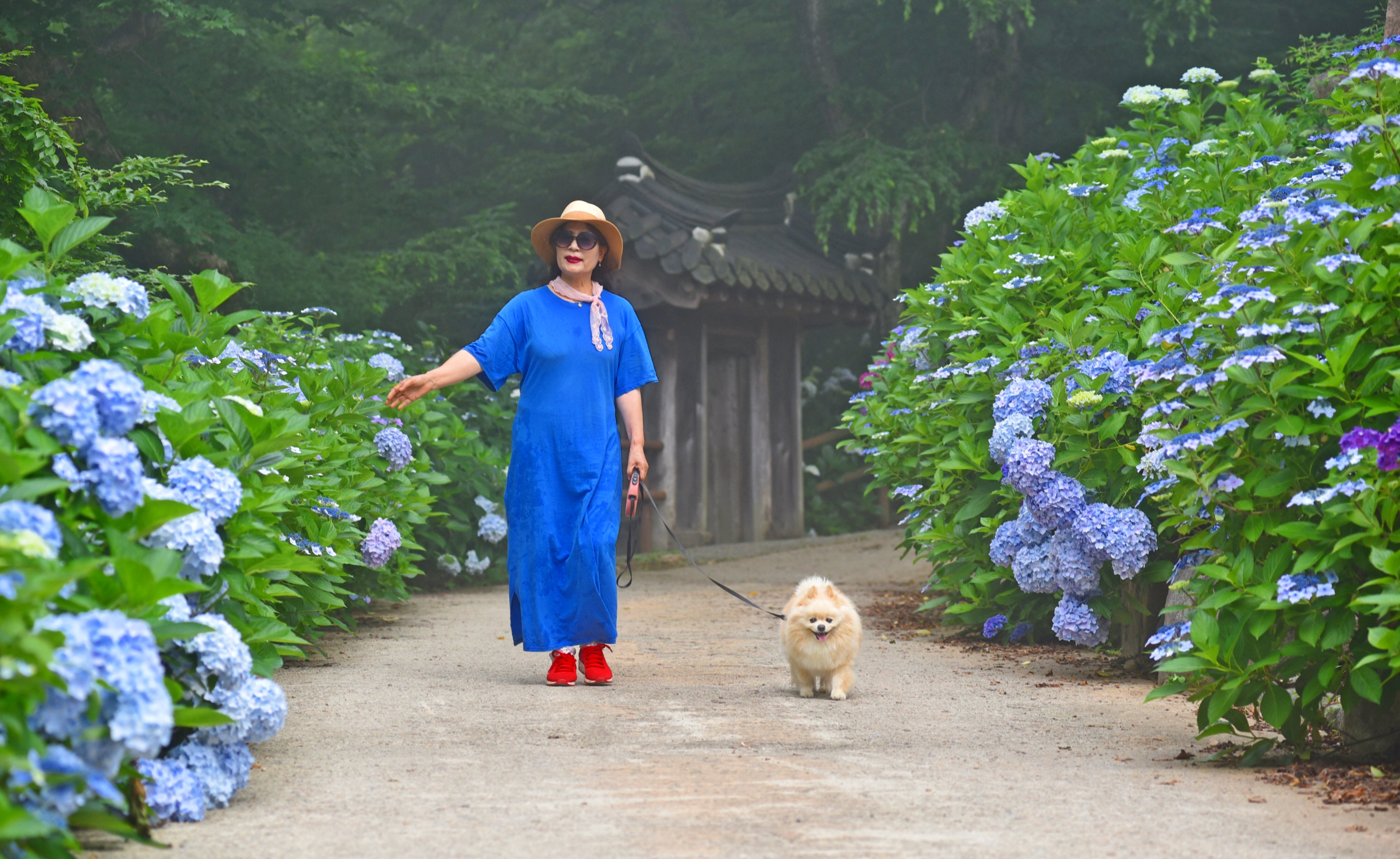 풍성한 블루빛 수국꽃길을 배경으로....