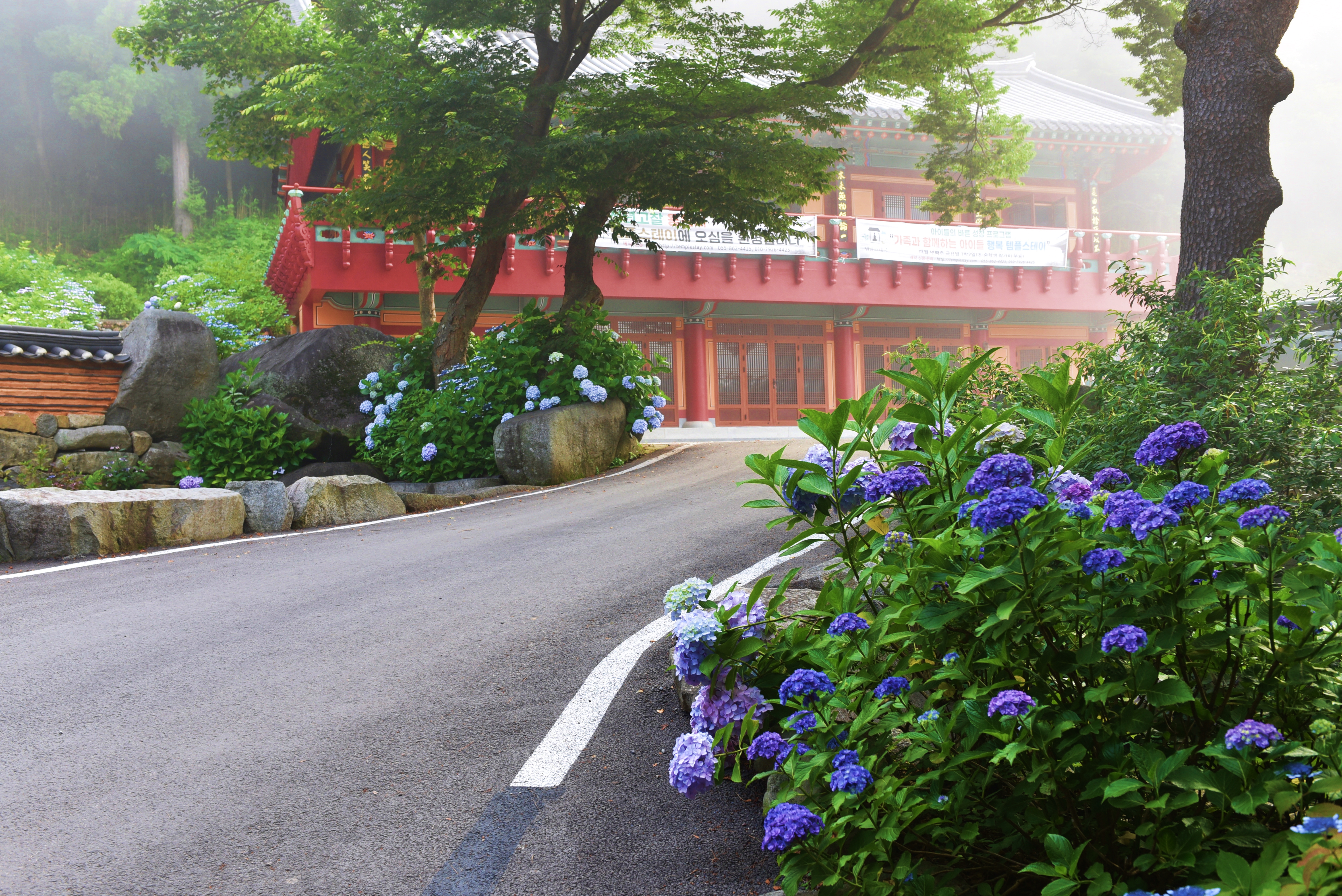 사찰 곳곳에 수국이 활짝 피었다