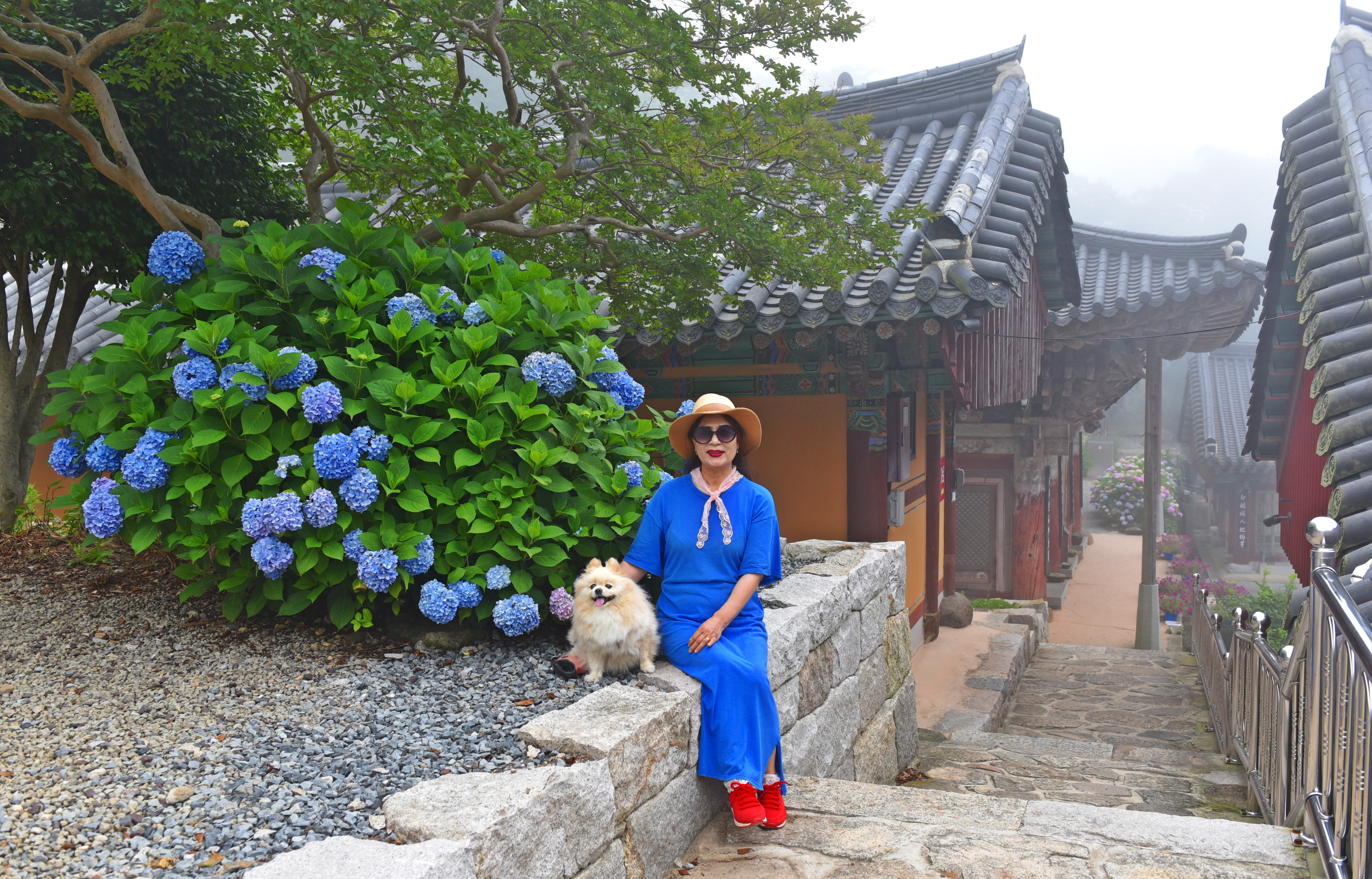 선열당 계단 옆 수국을 배경으로...