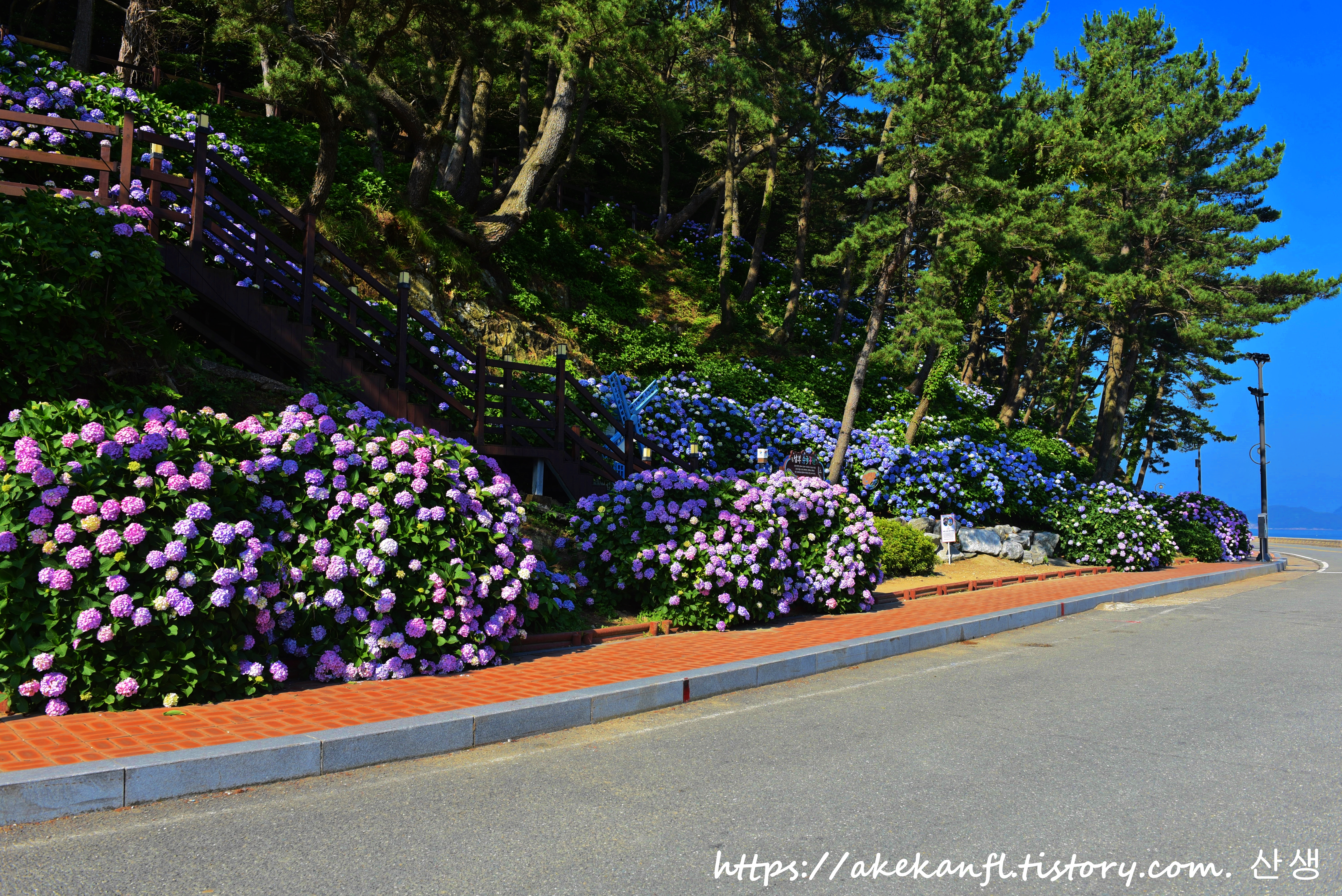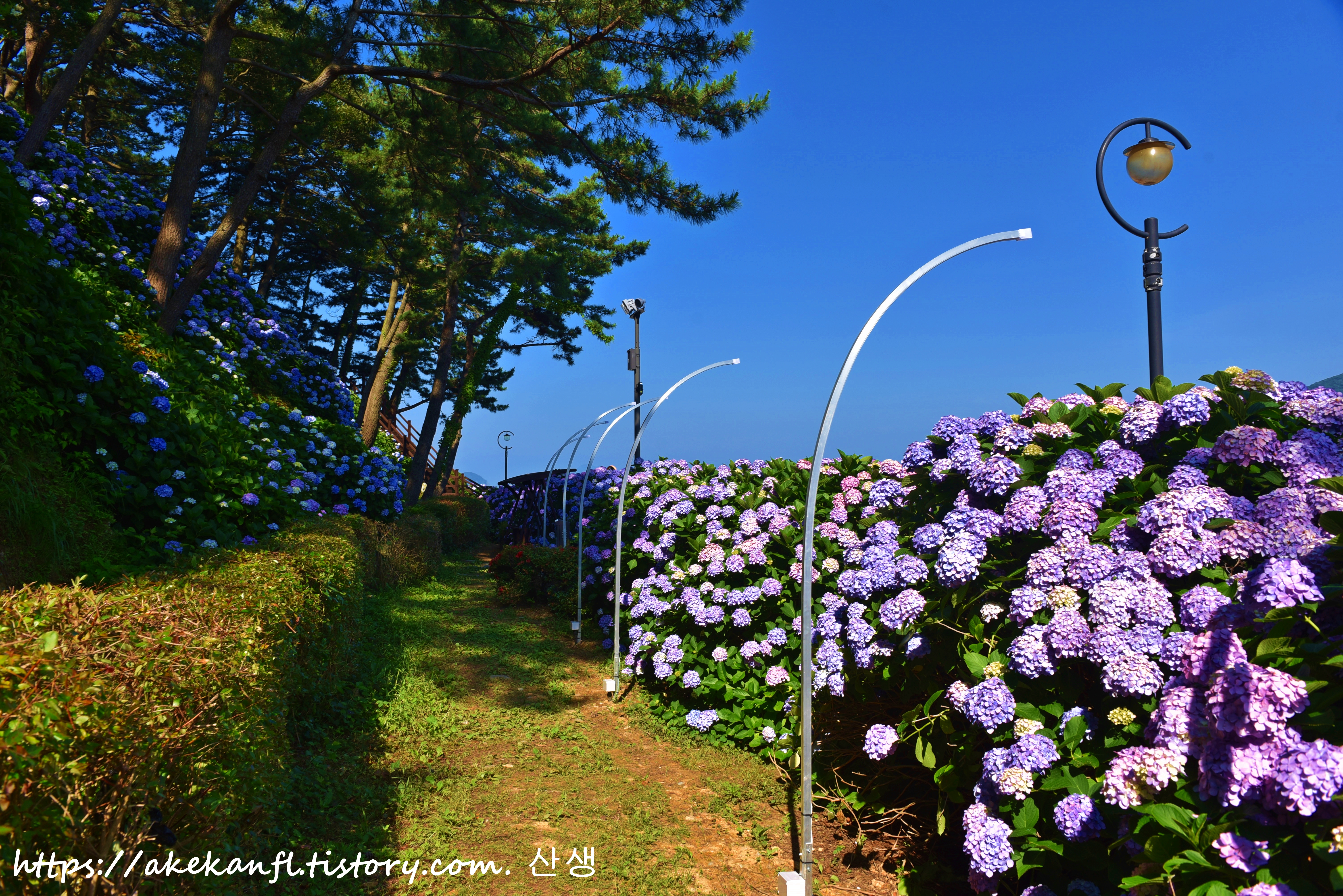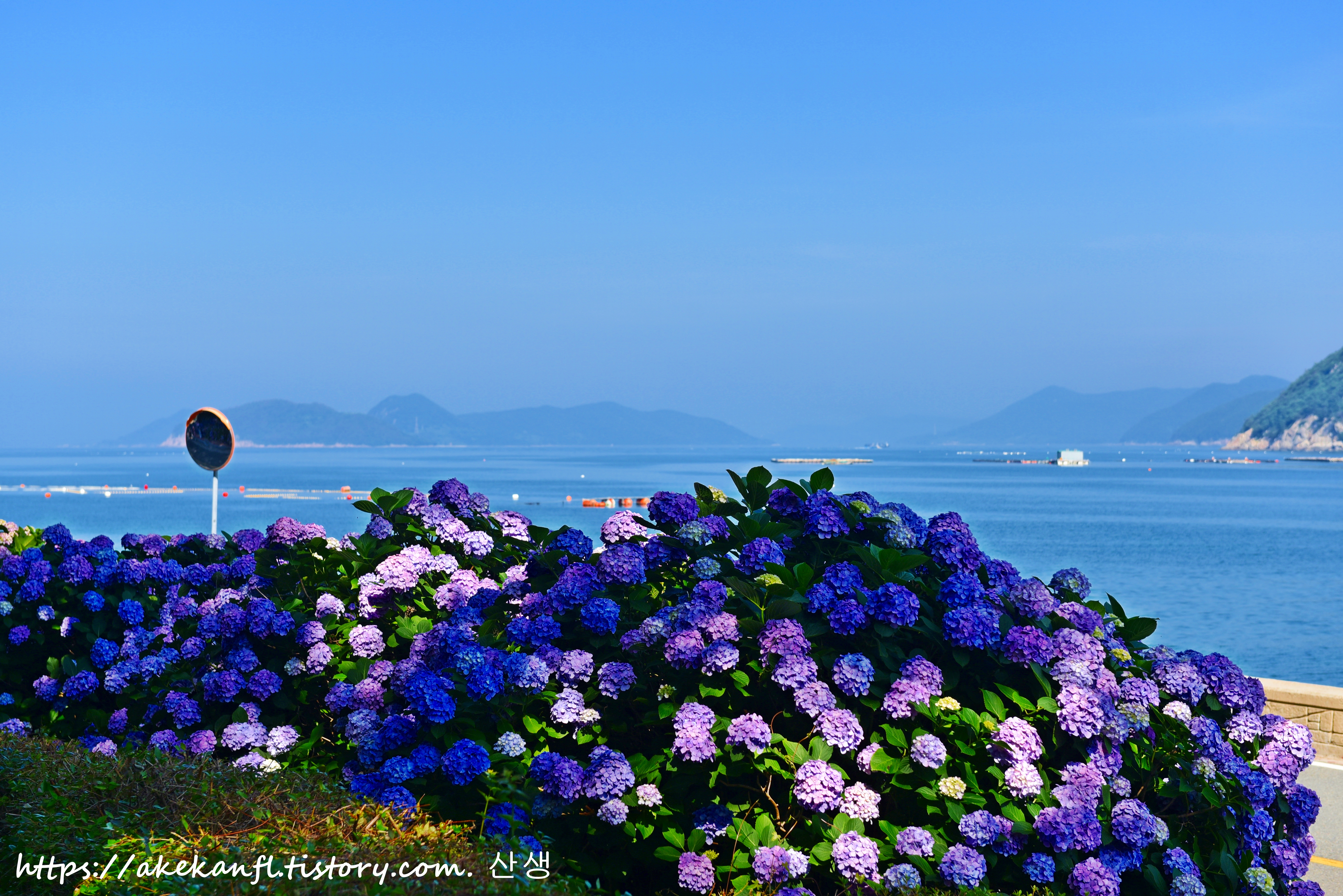 풍성한 수국너머로 쪽빛 바다를 담아보고...