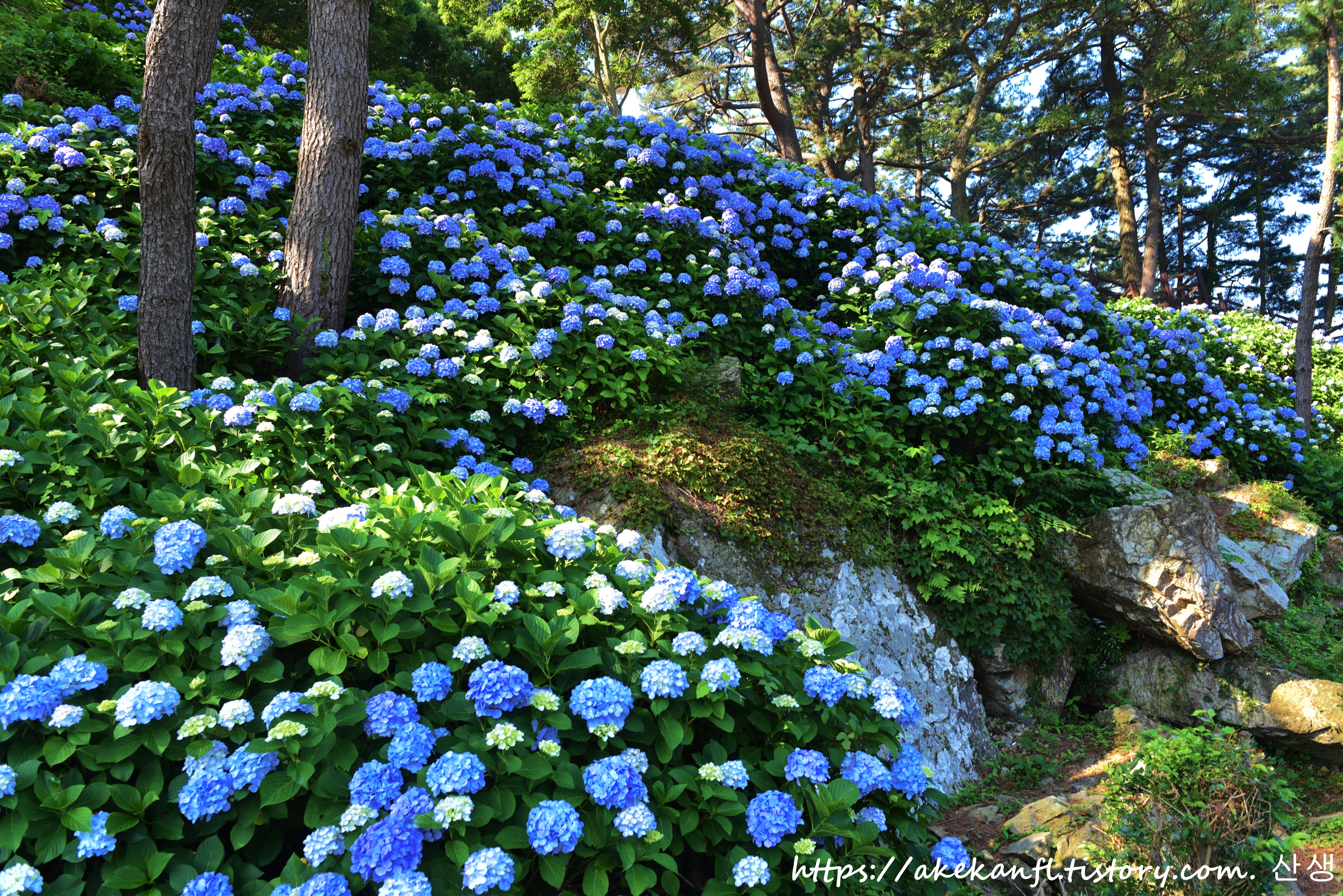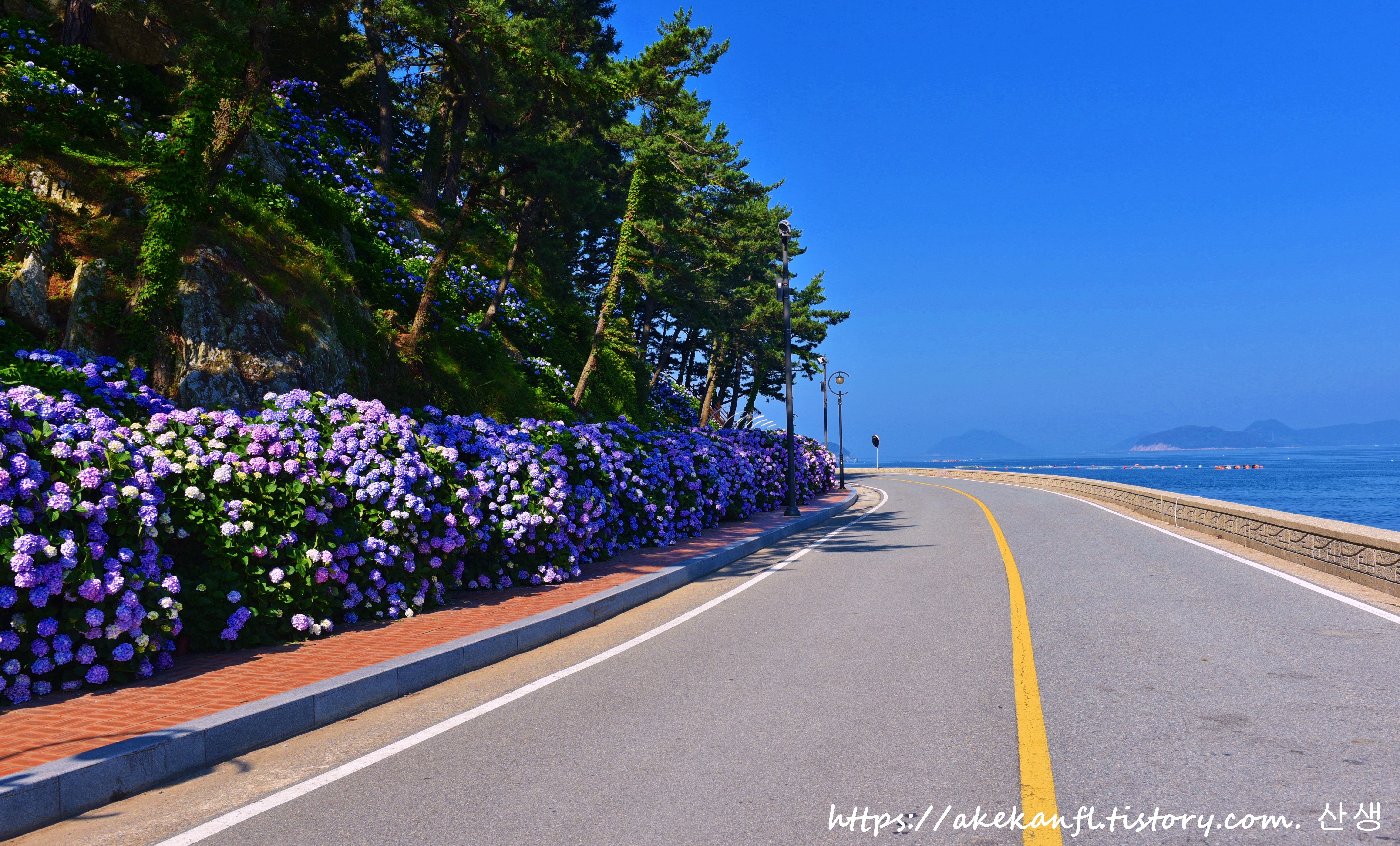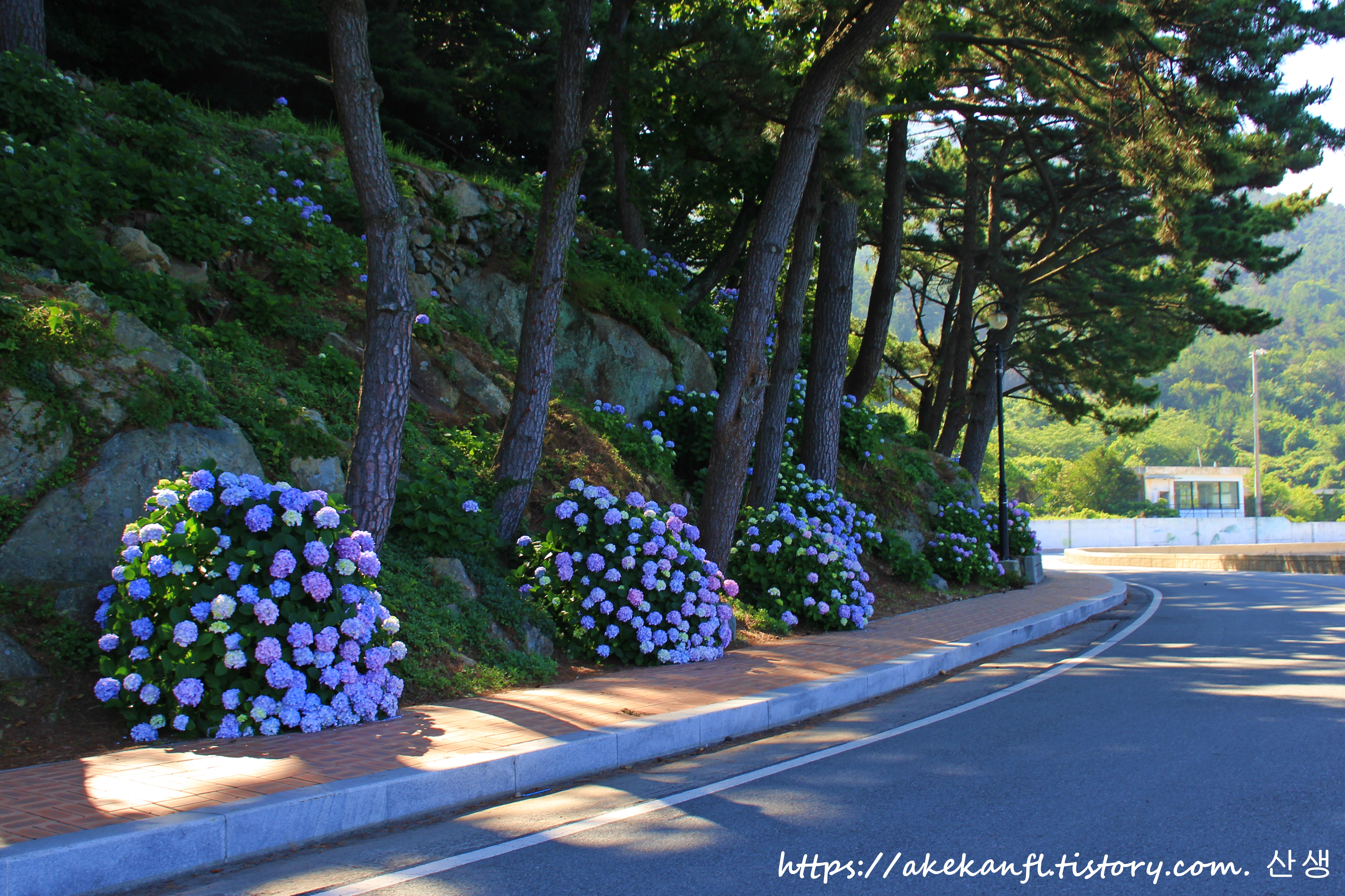 풍성한 수국너머로 쪽빛 바다를 담아보고...