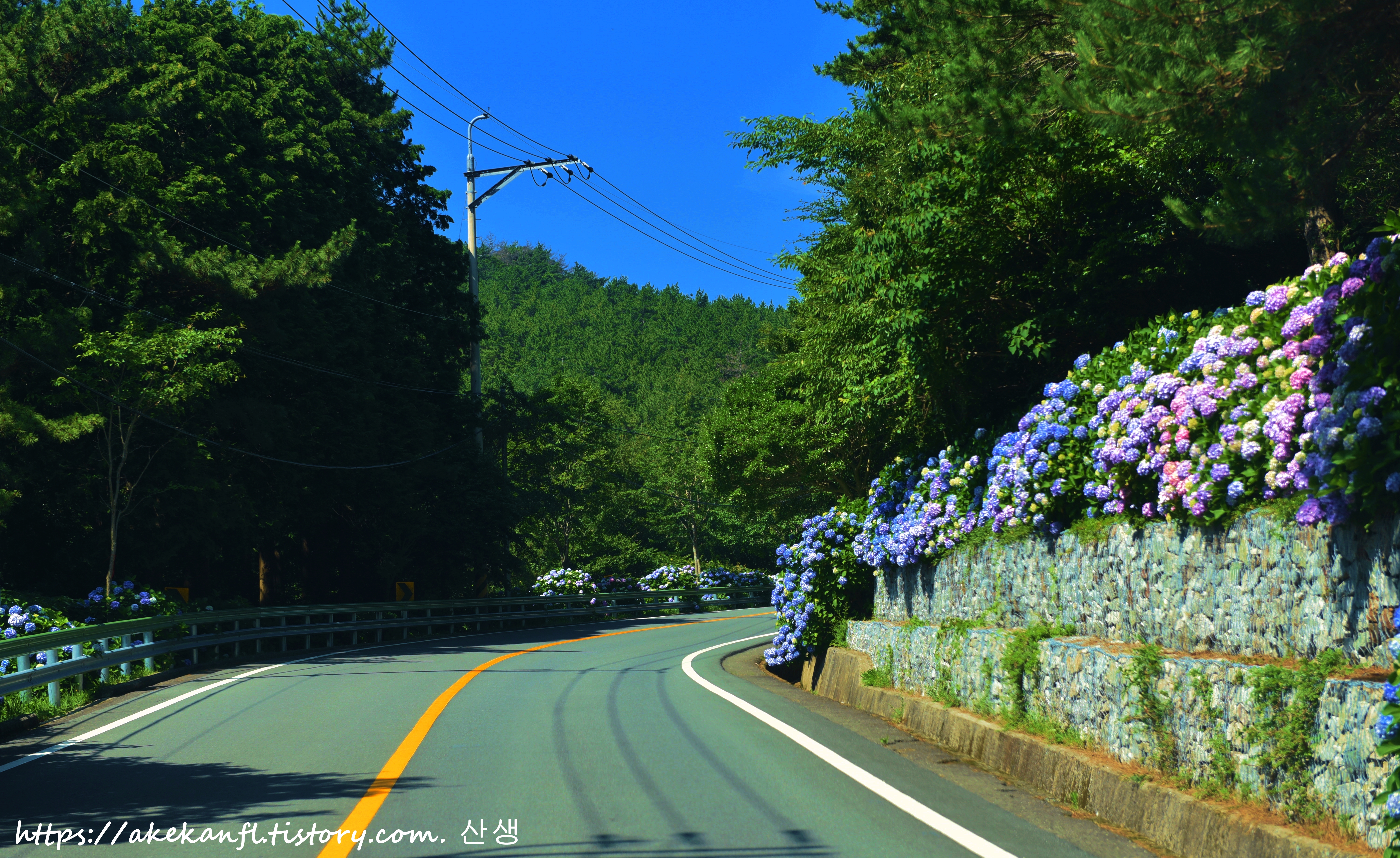 곱게 물들고 풍성한 수국꽃길을 당겨 담고...