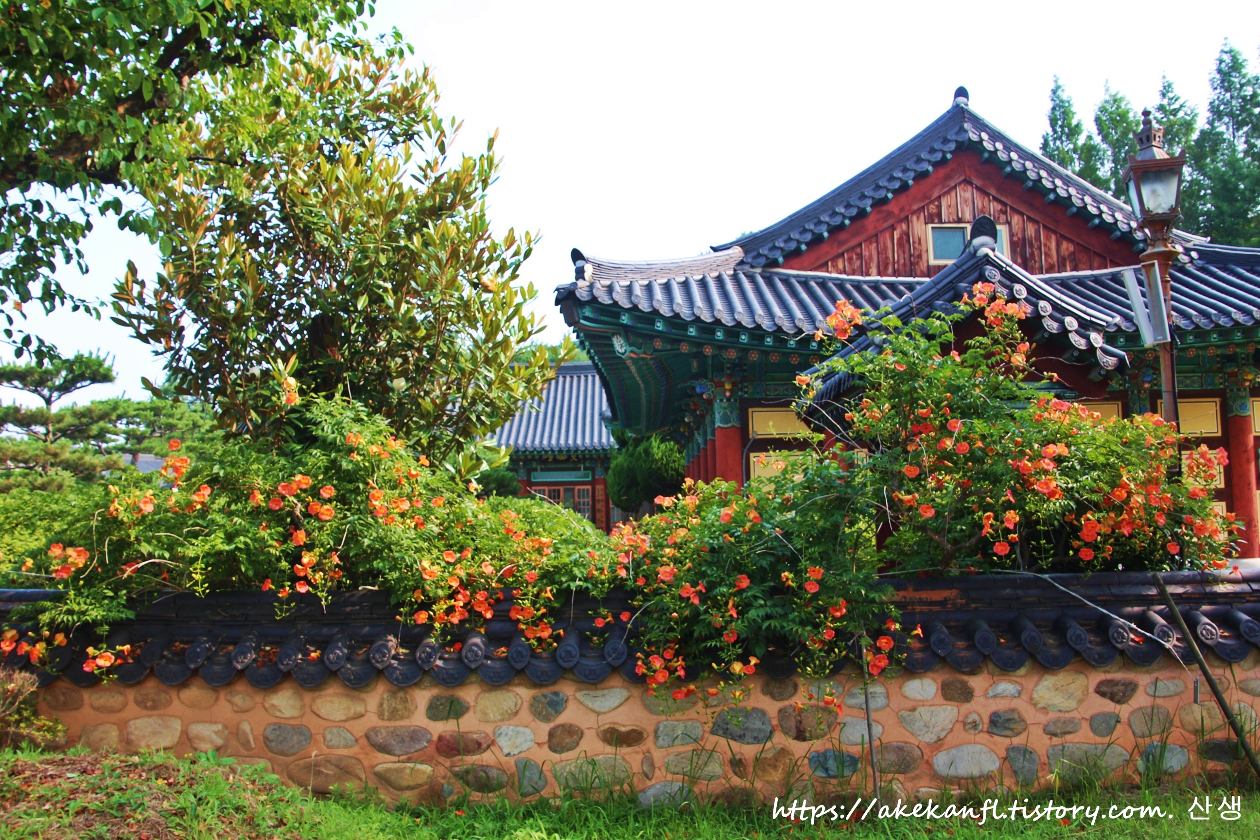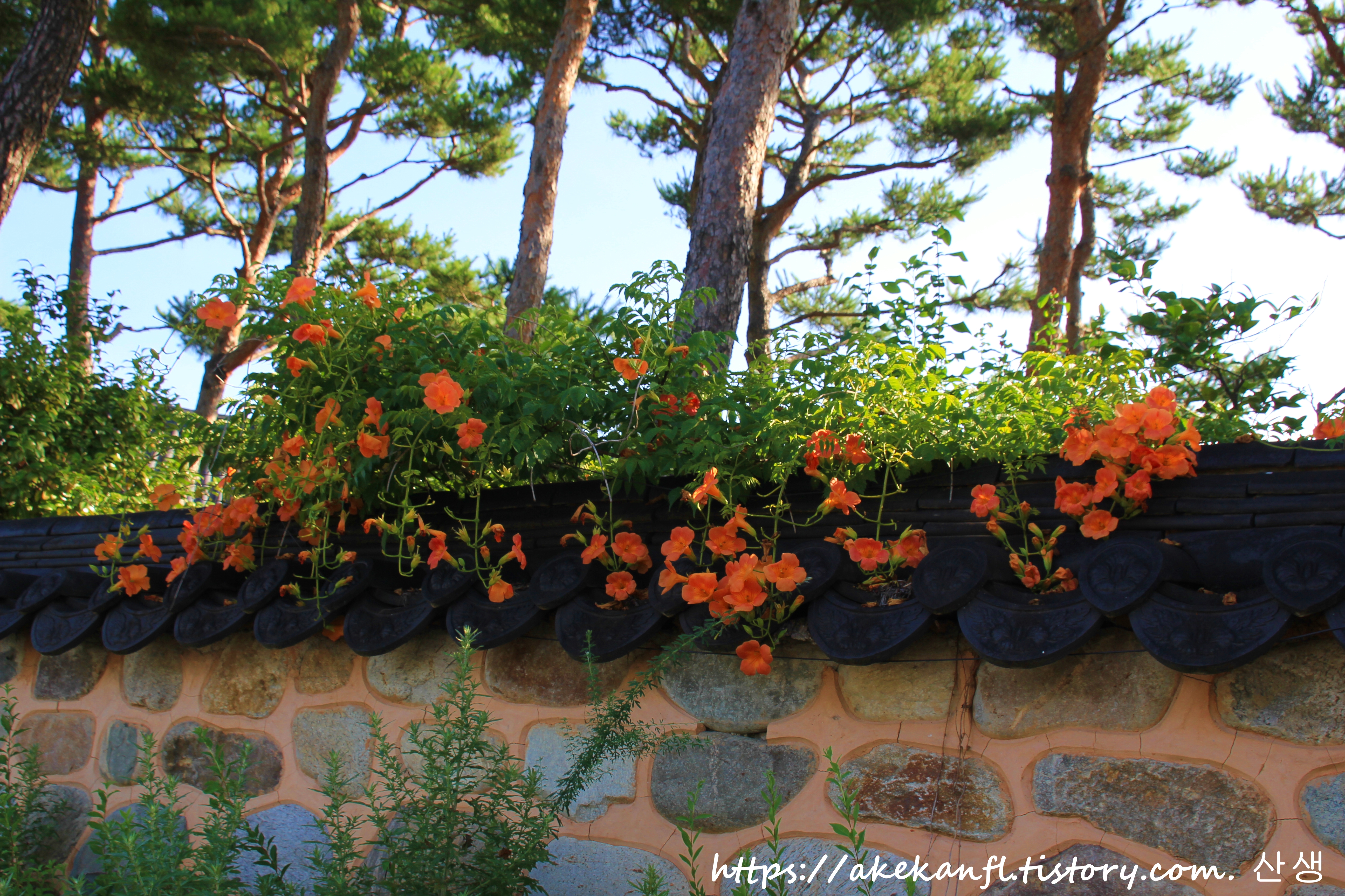 산청 겁외사 담장의 능소화