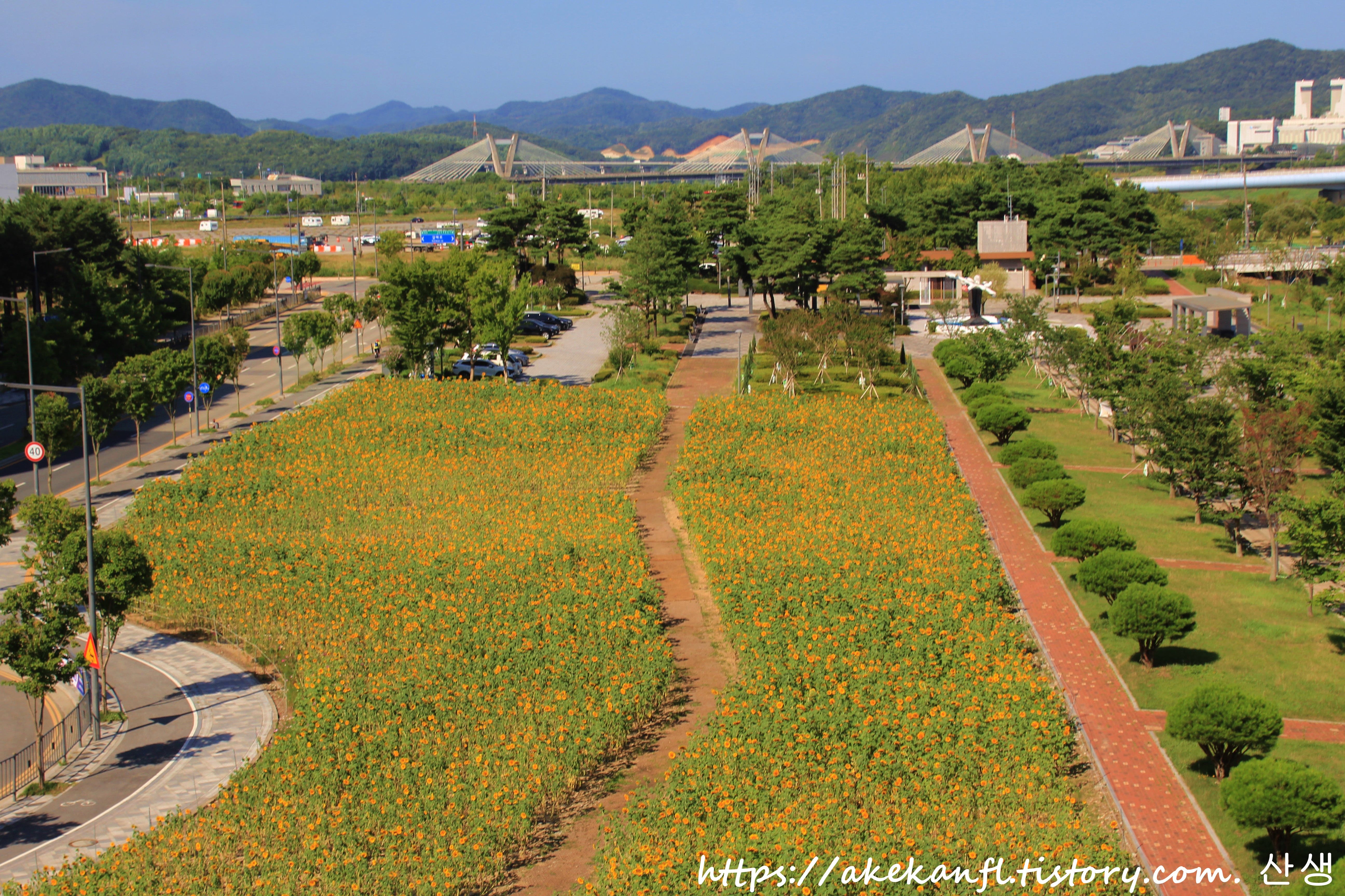 꽃길 중간에서 꽃밭을 넓게 담아본다