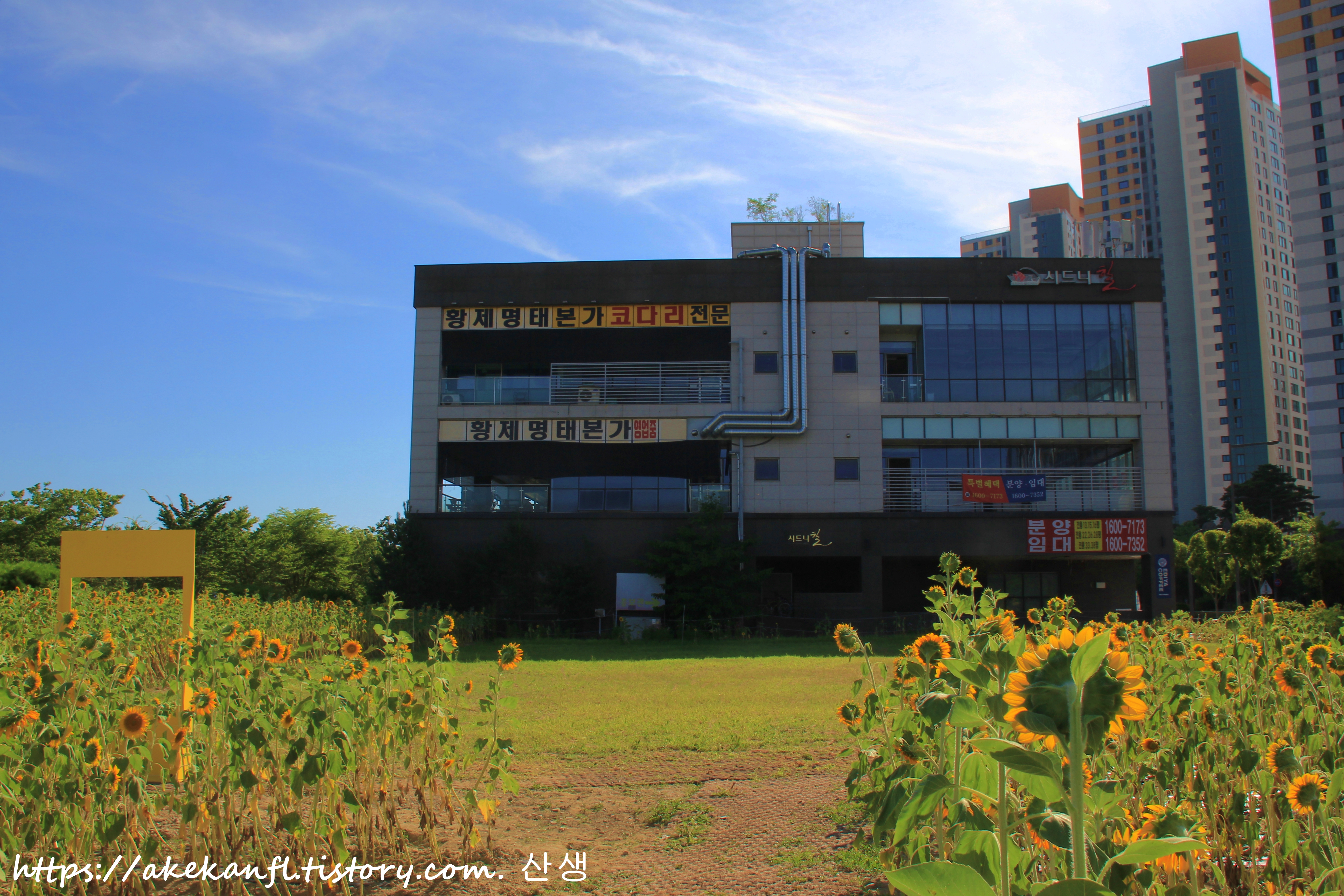 주변 건물 쪽의 꽃밭을 당겨 담고...