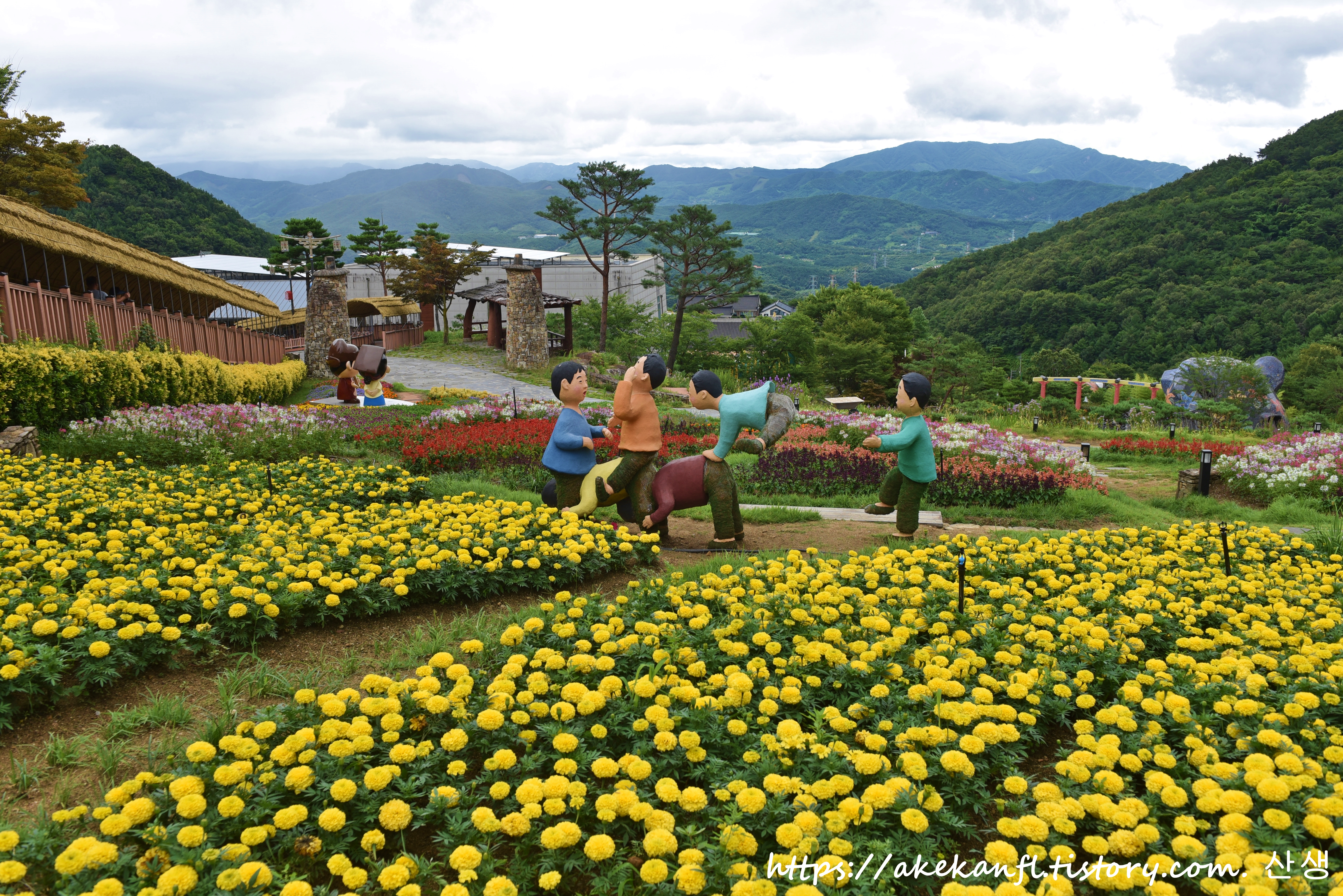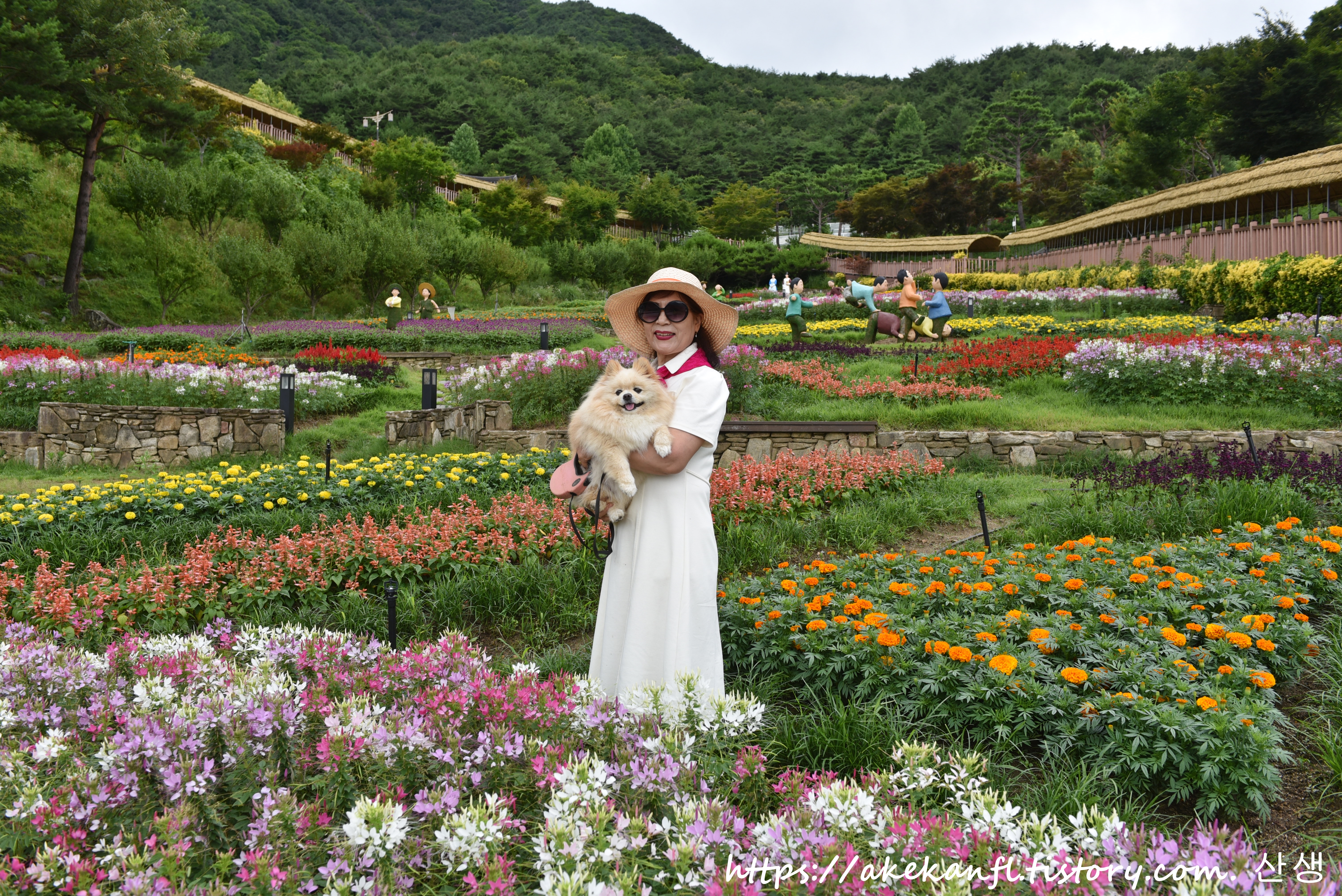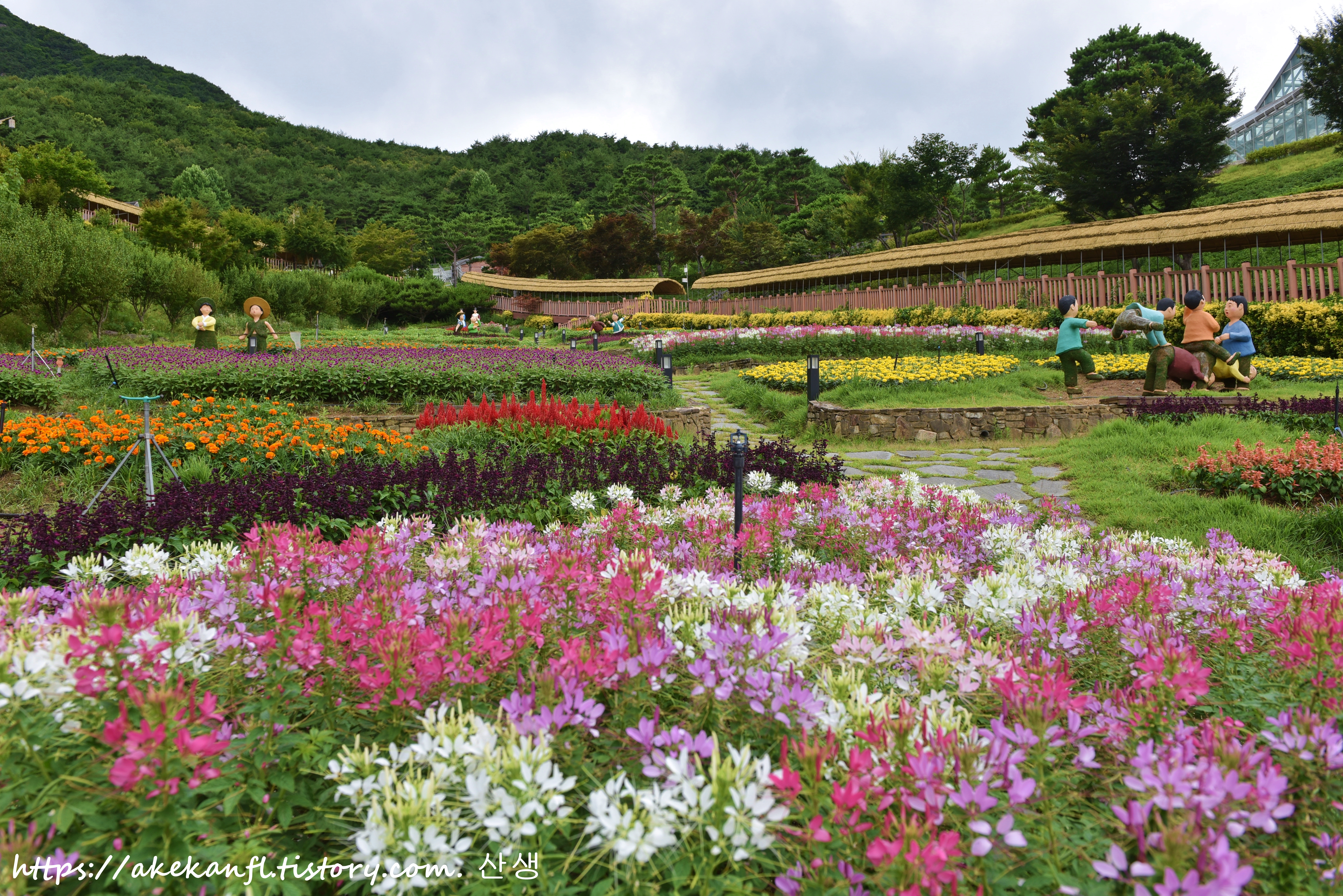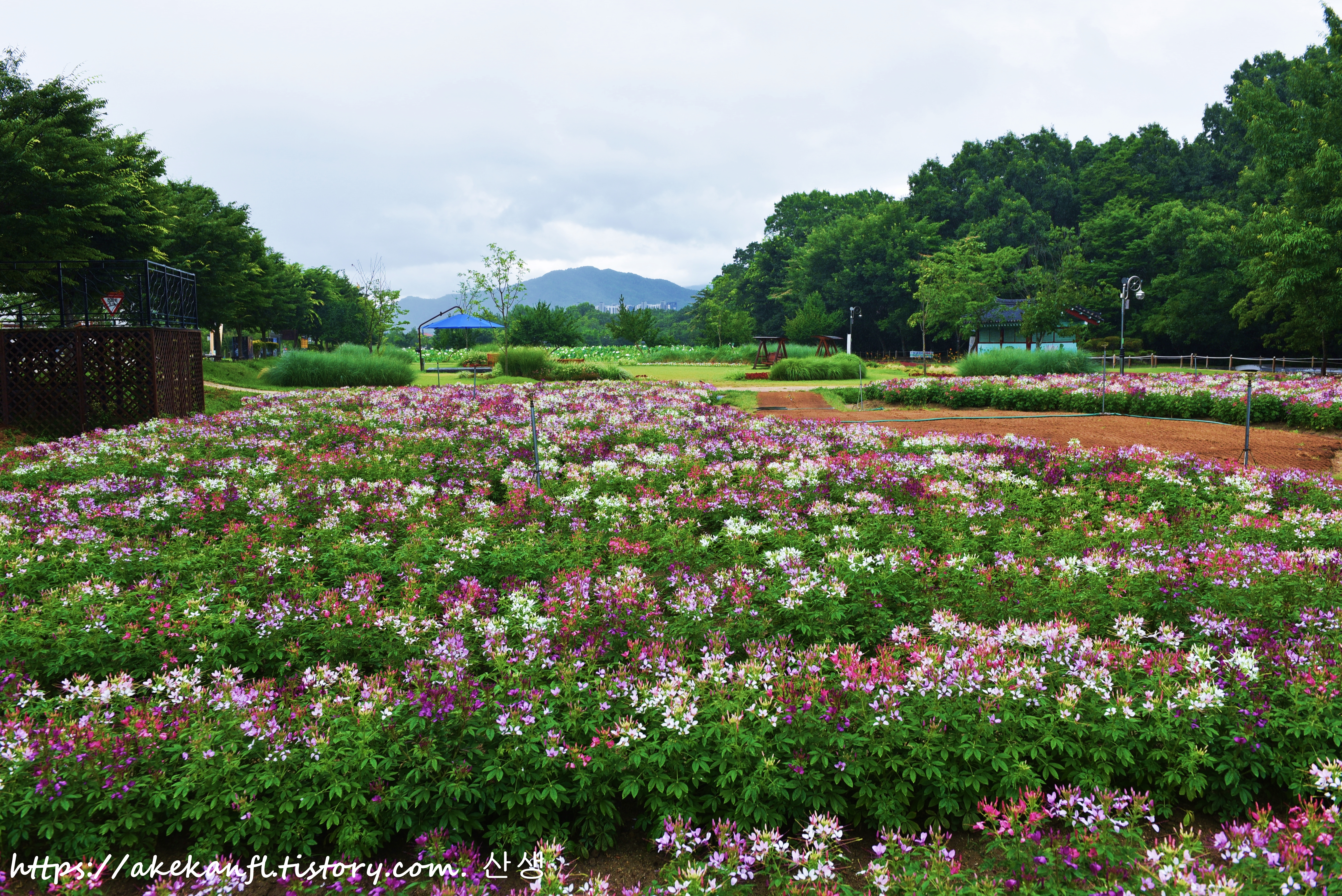 공원에는 풍접초 메리골드 맨드라미 등