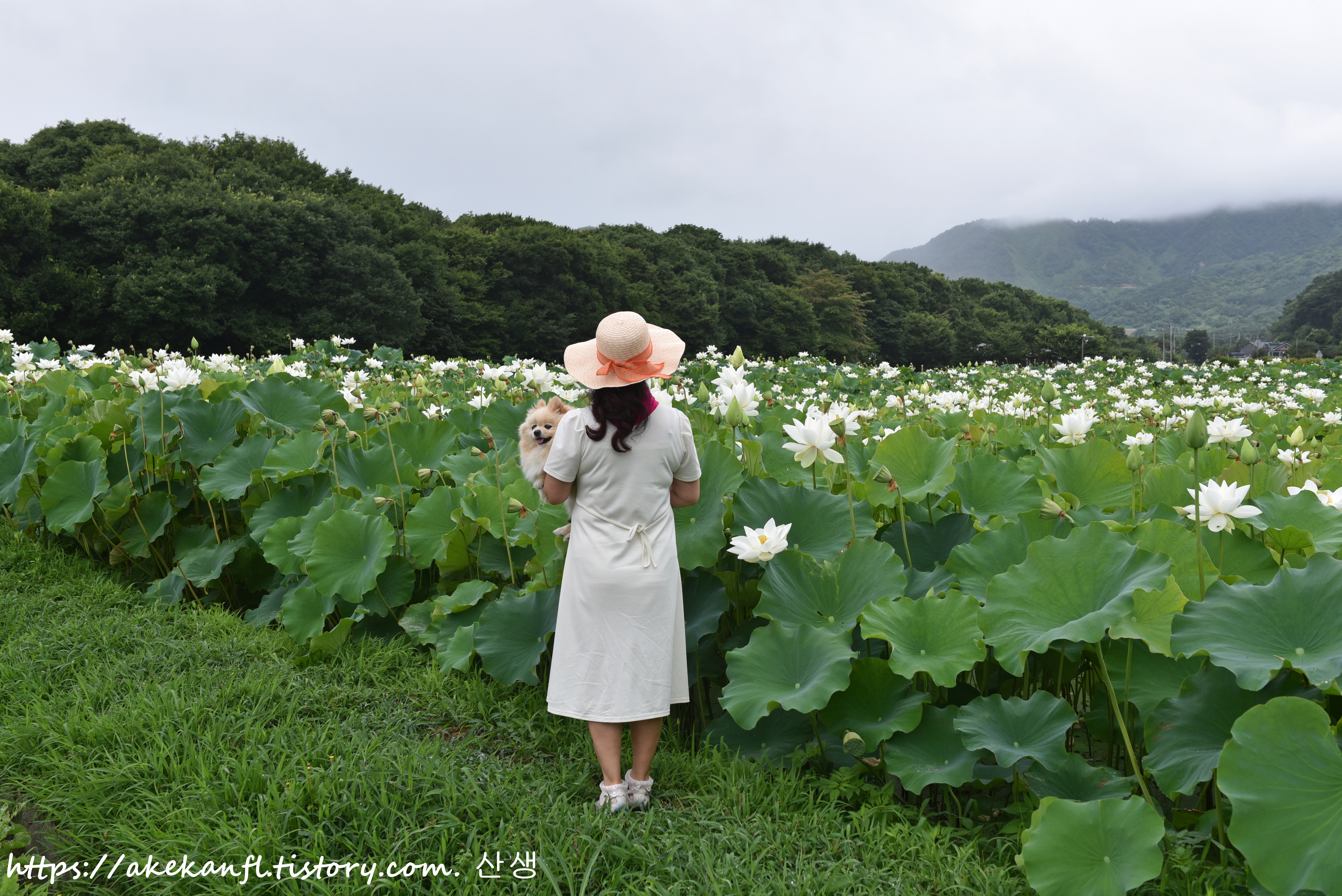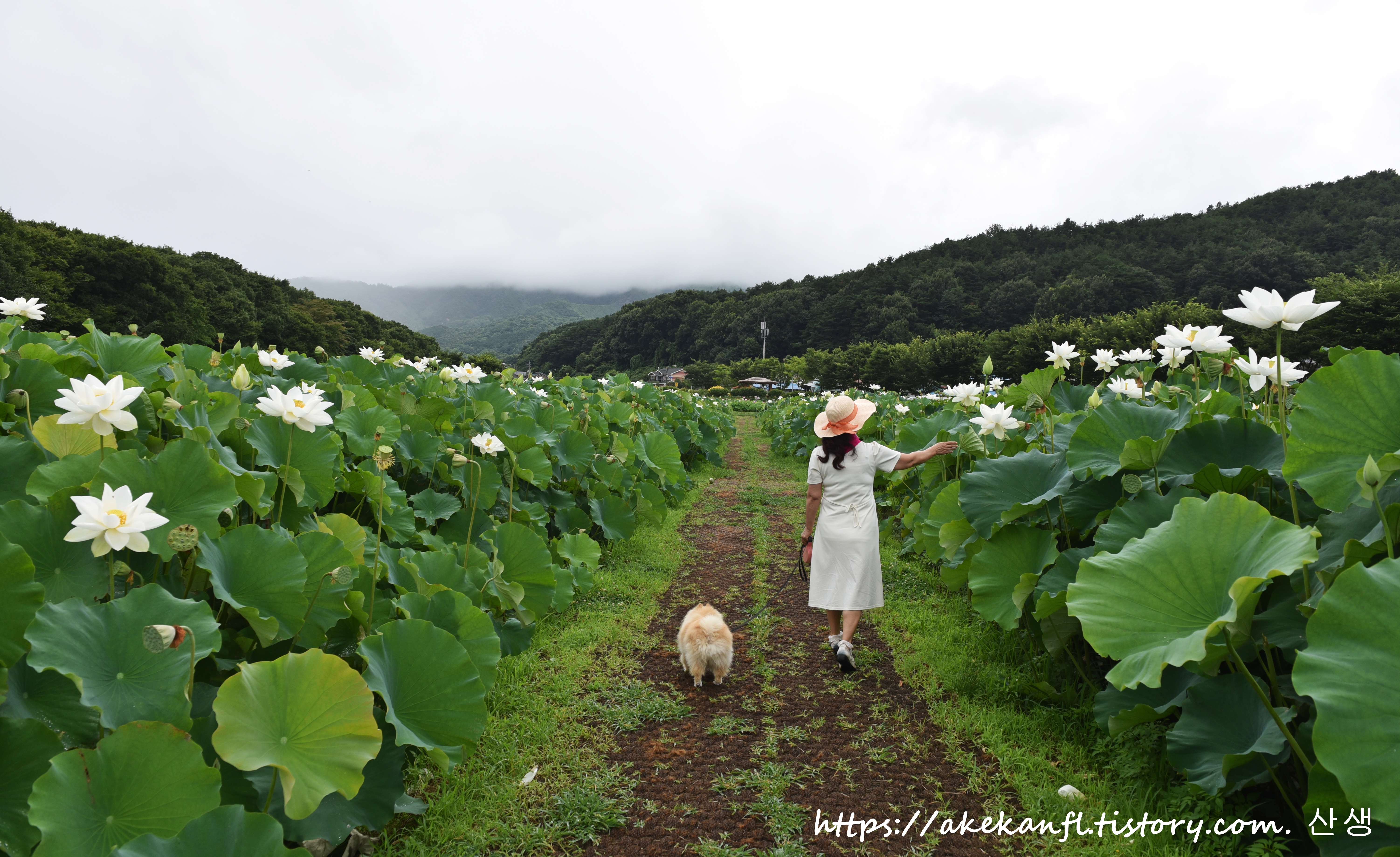 멀리 백련 꽃밭 쪽의 옆지기를 당겨 담고...