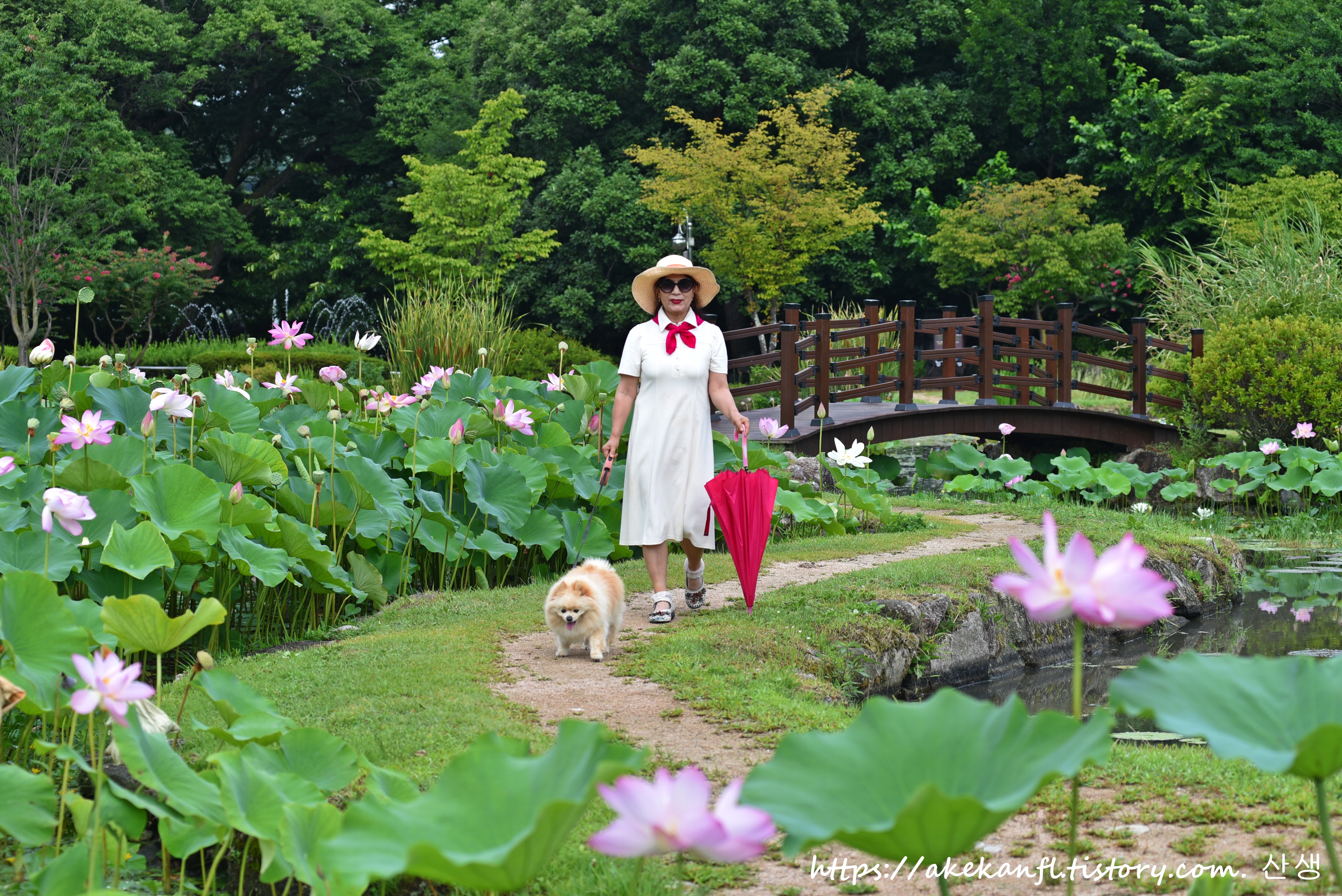 연못 꽃길에서...