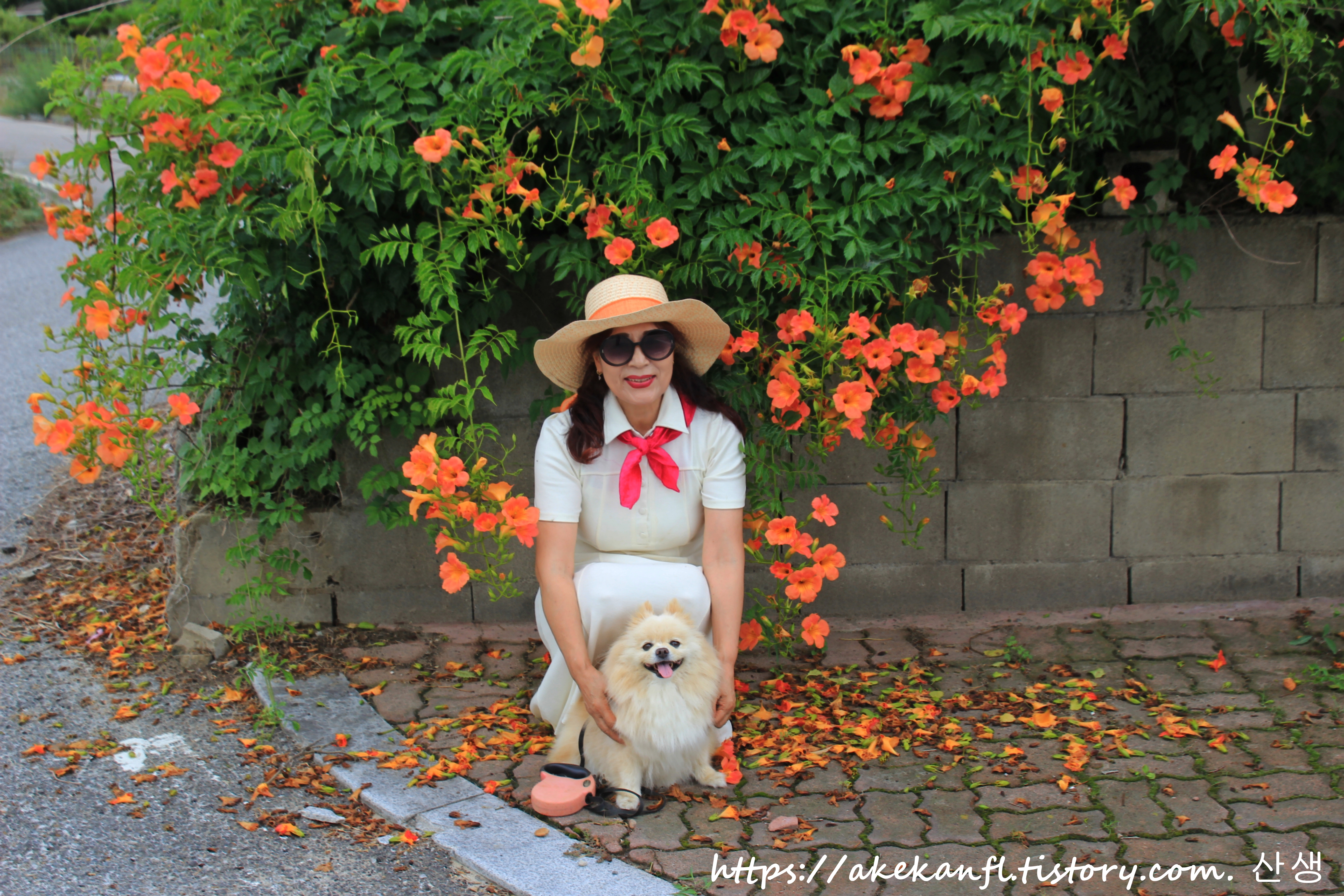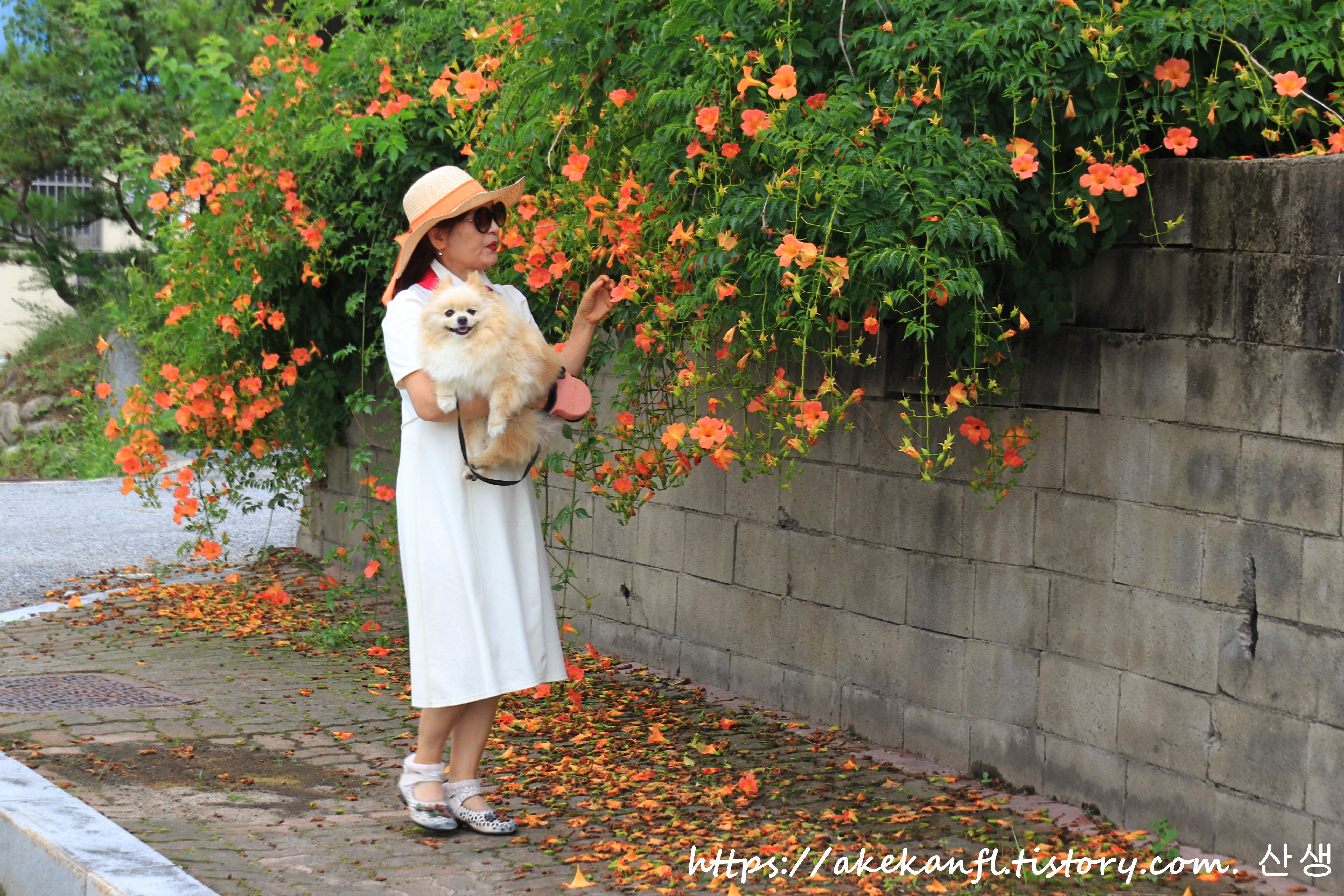 화사하게 핀 능소화를 배경으로...