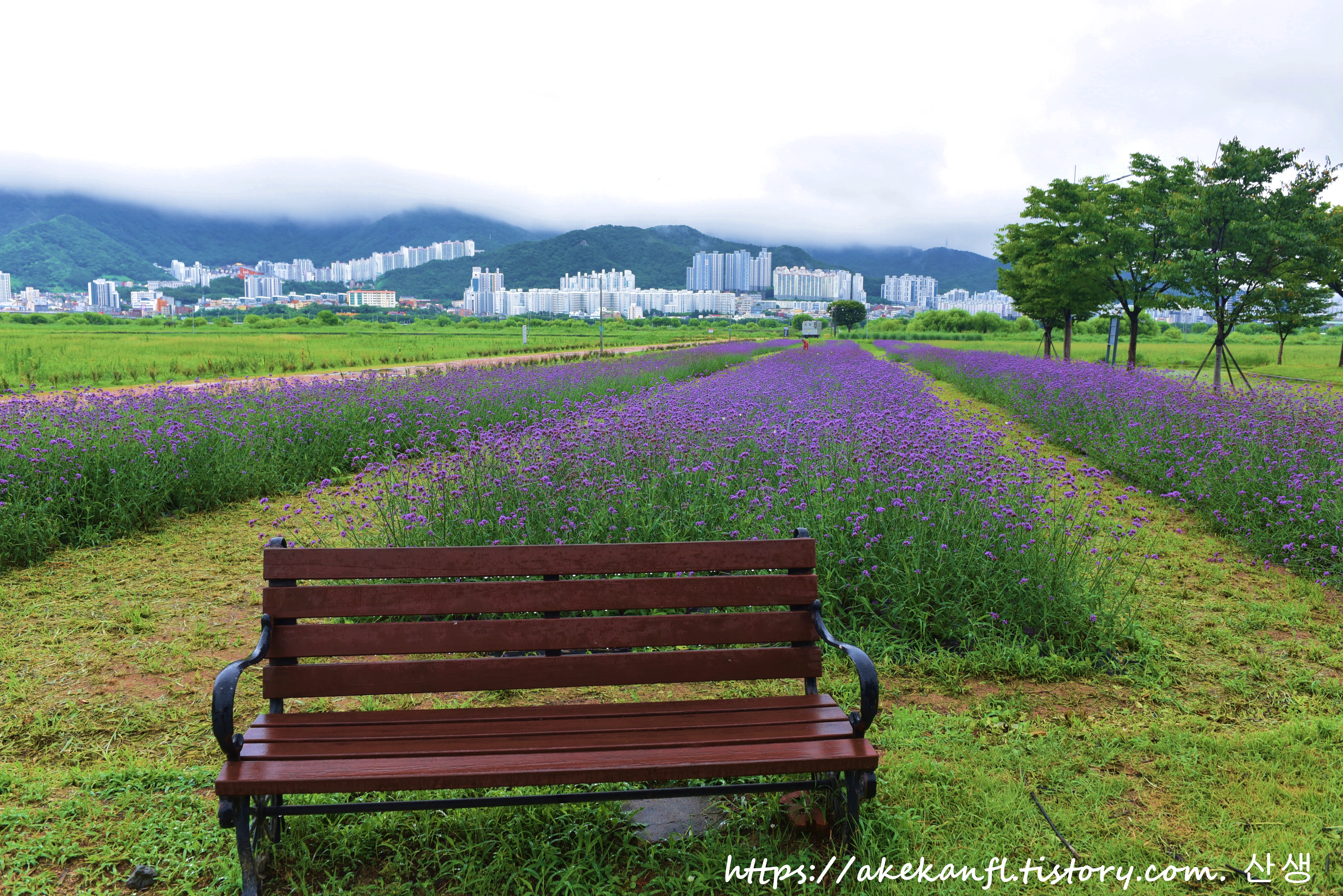 멀리 구포 쪽 건물과 꽃밭의 풍광을 담아봄