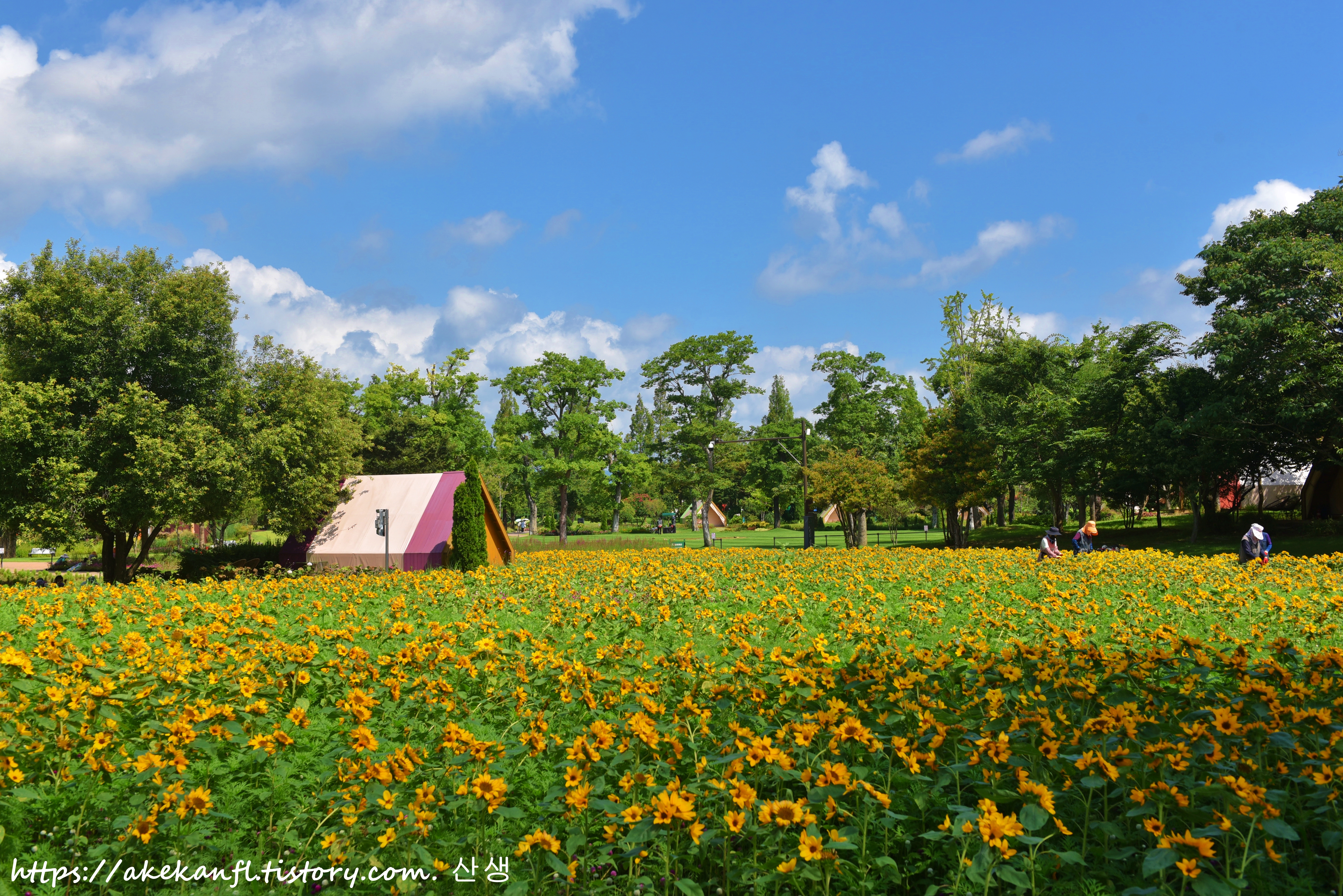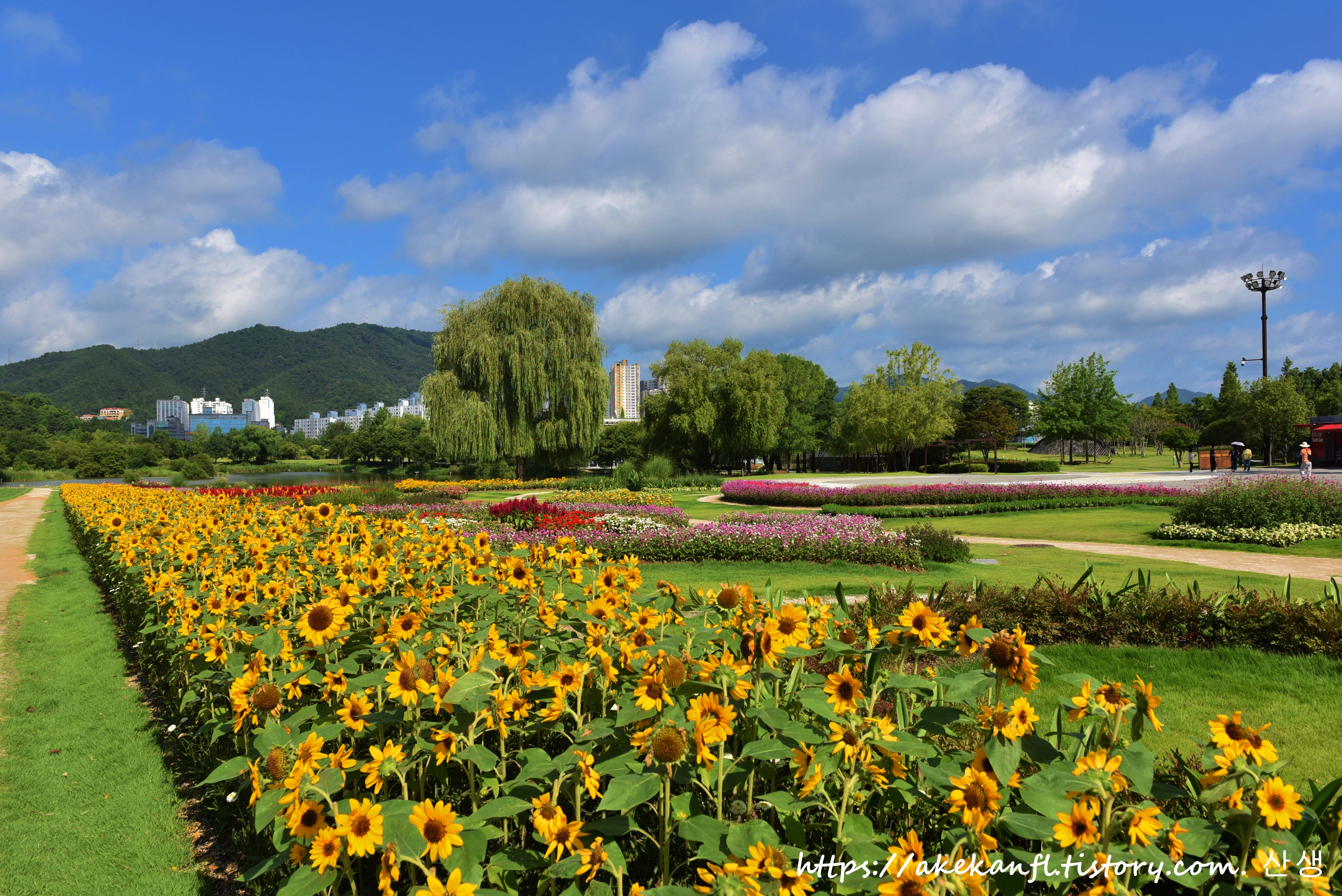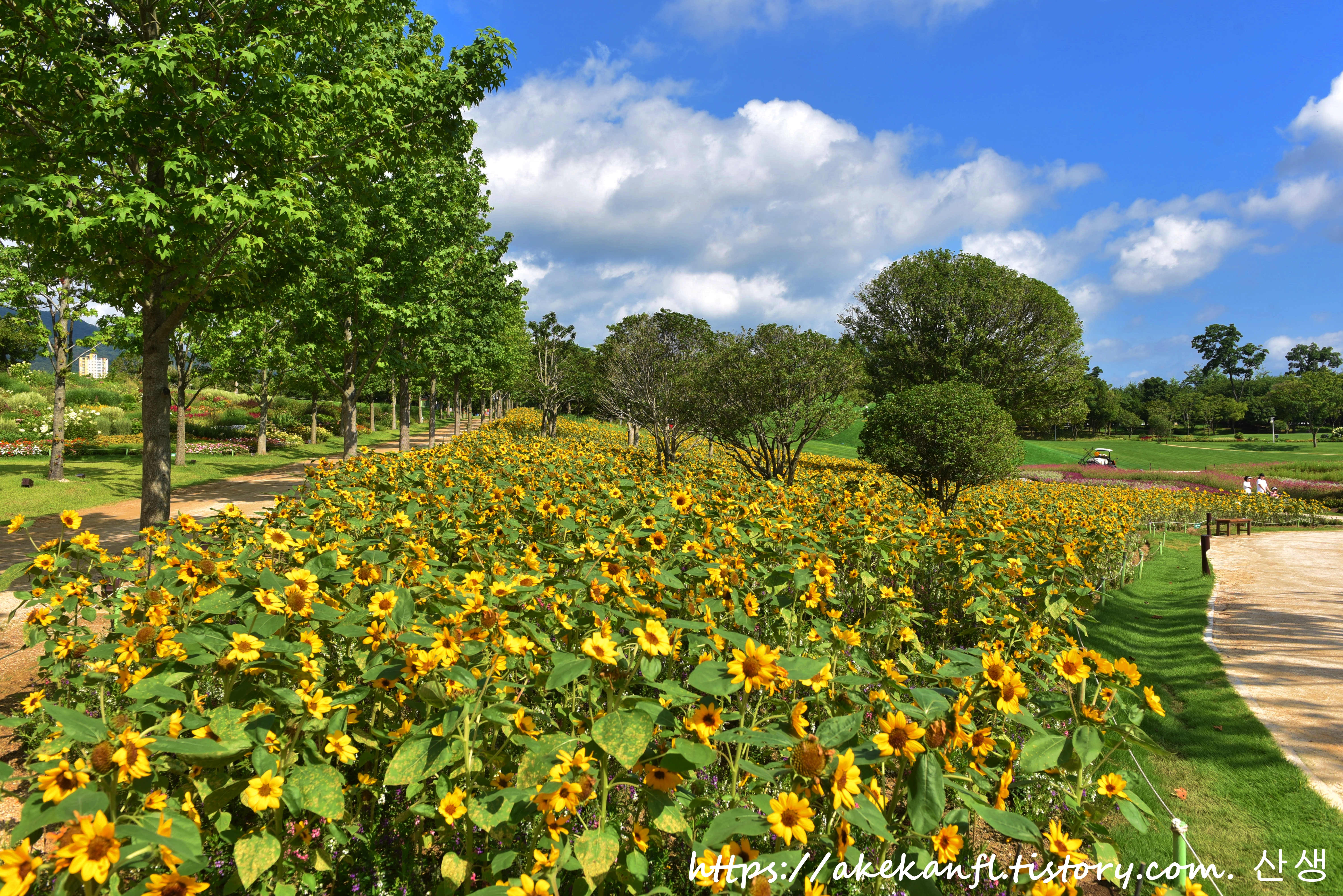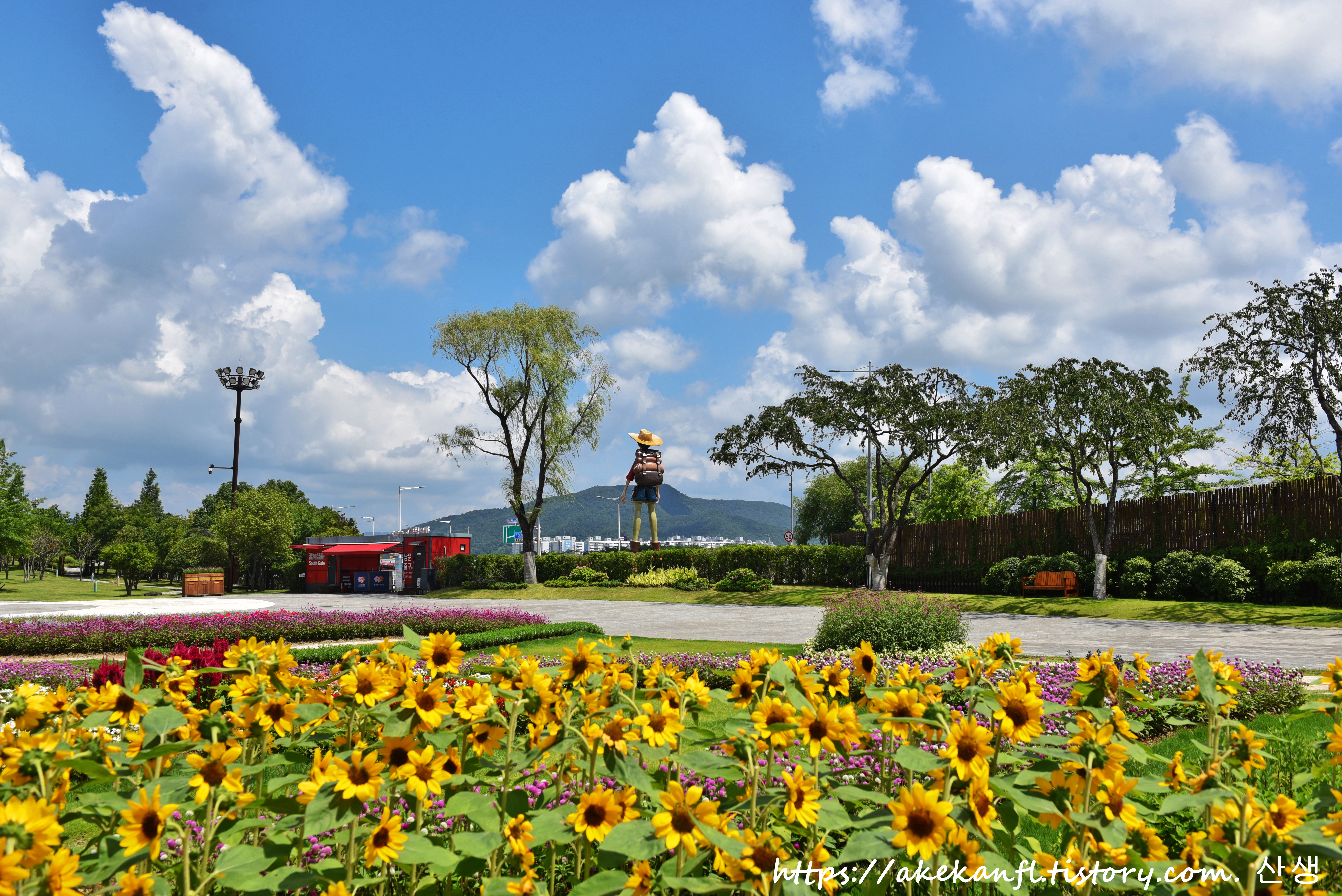 쉼터 쪽에는 해바라기 꽃길이 눈길을 끈다 ㅋ