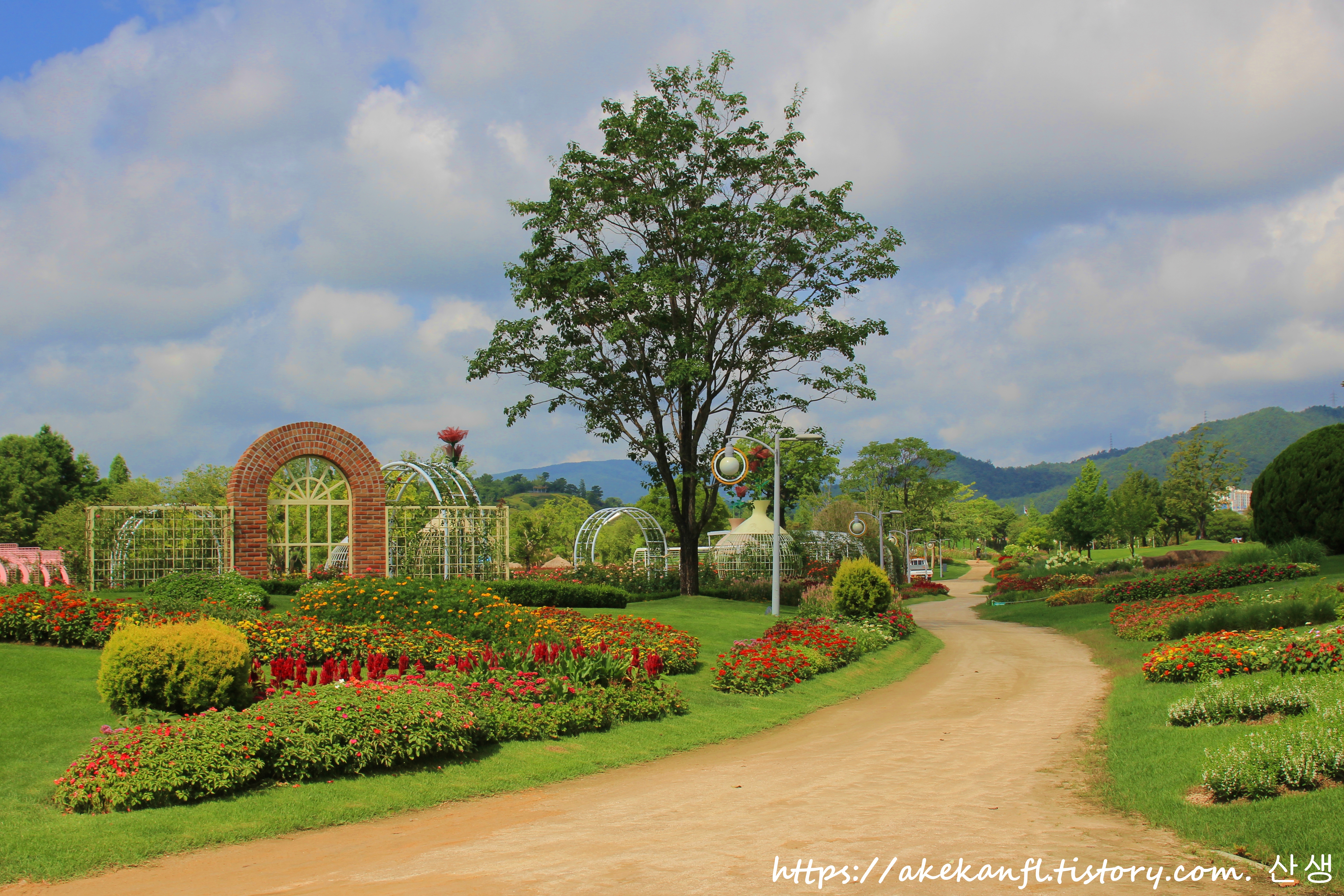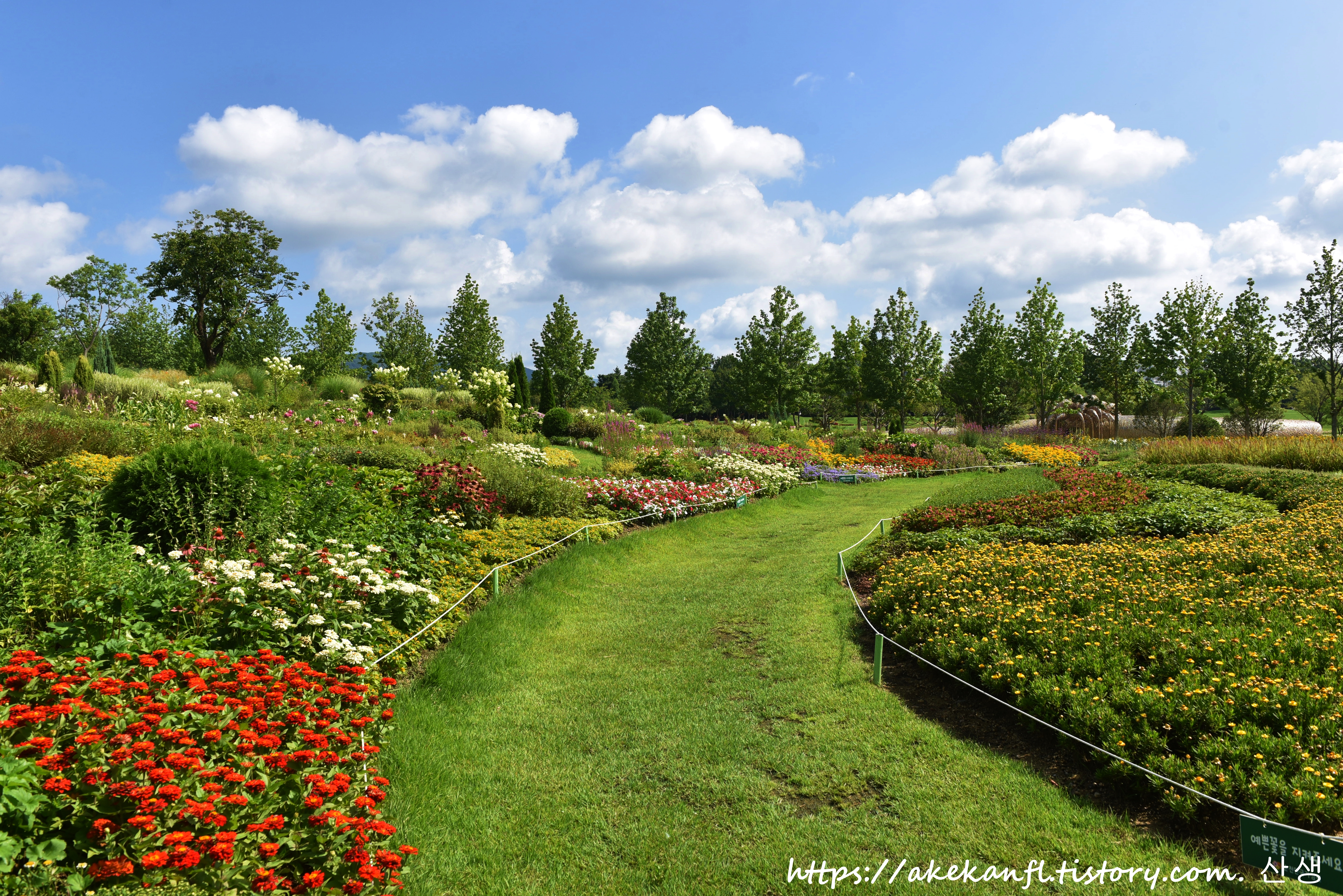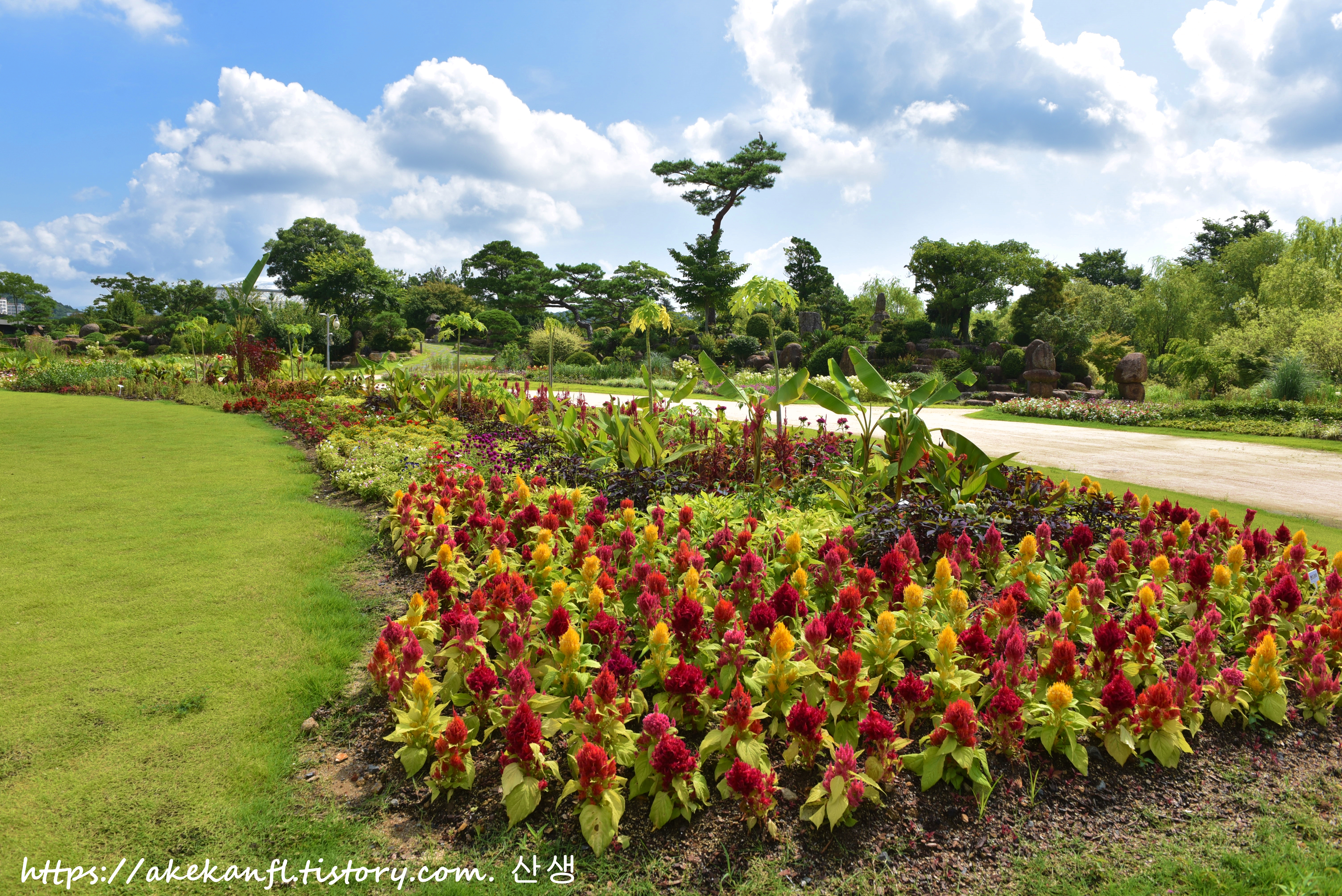목수국 등 다양한 초화류 꽃밭을 담고...