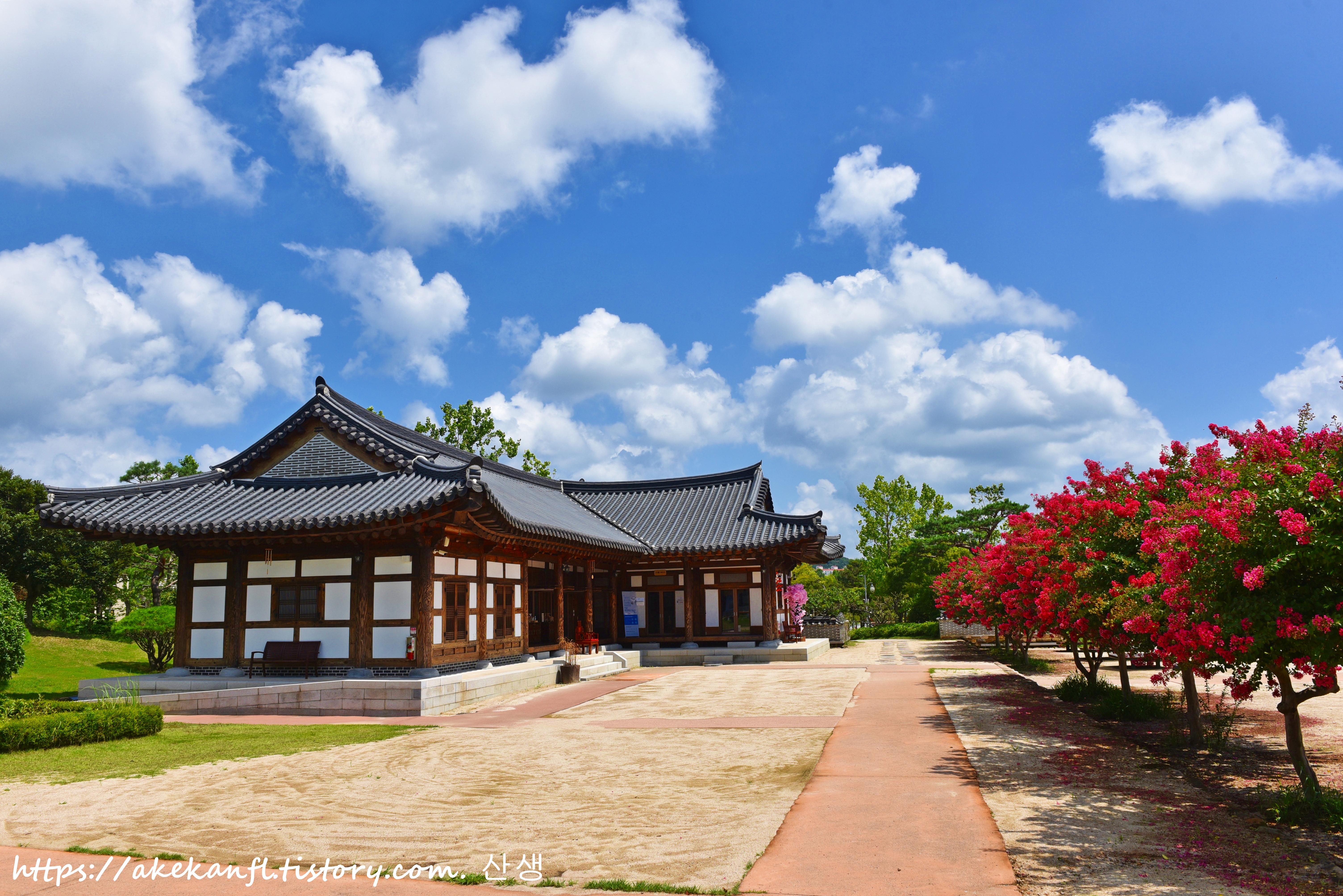 베롱나무와 어우러진 체험관 쪽을 당겨 담고...