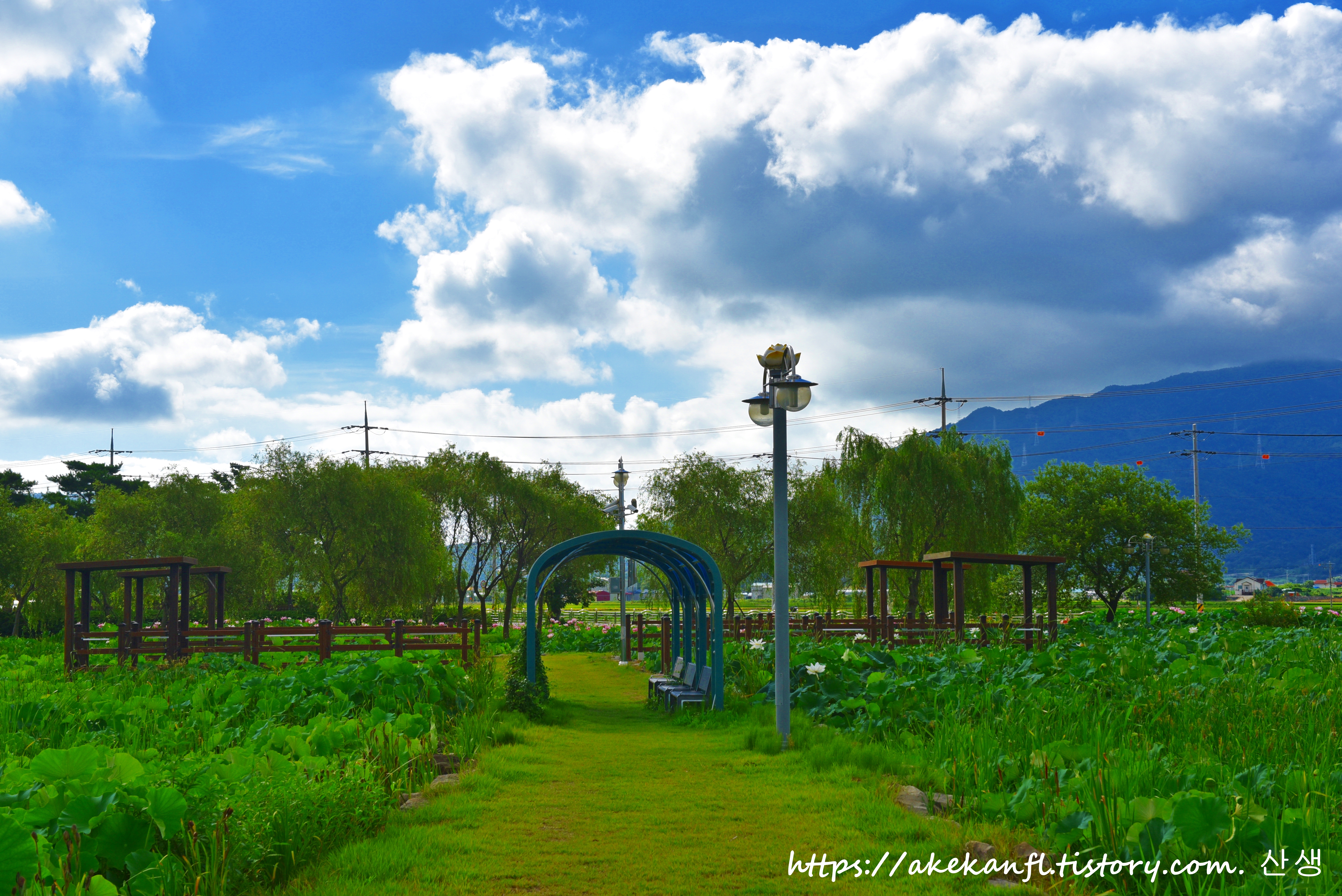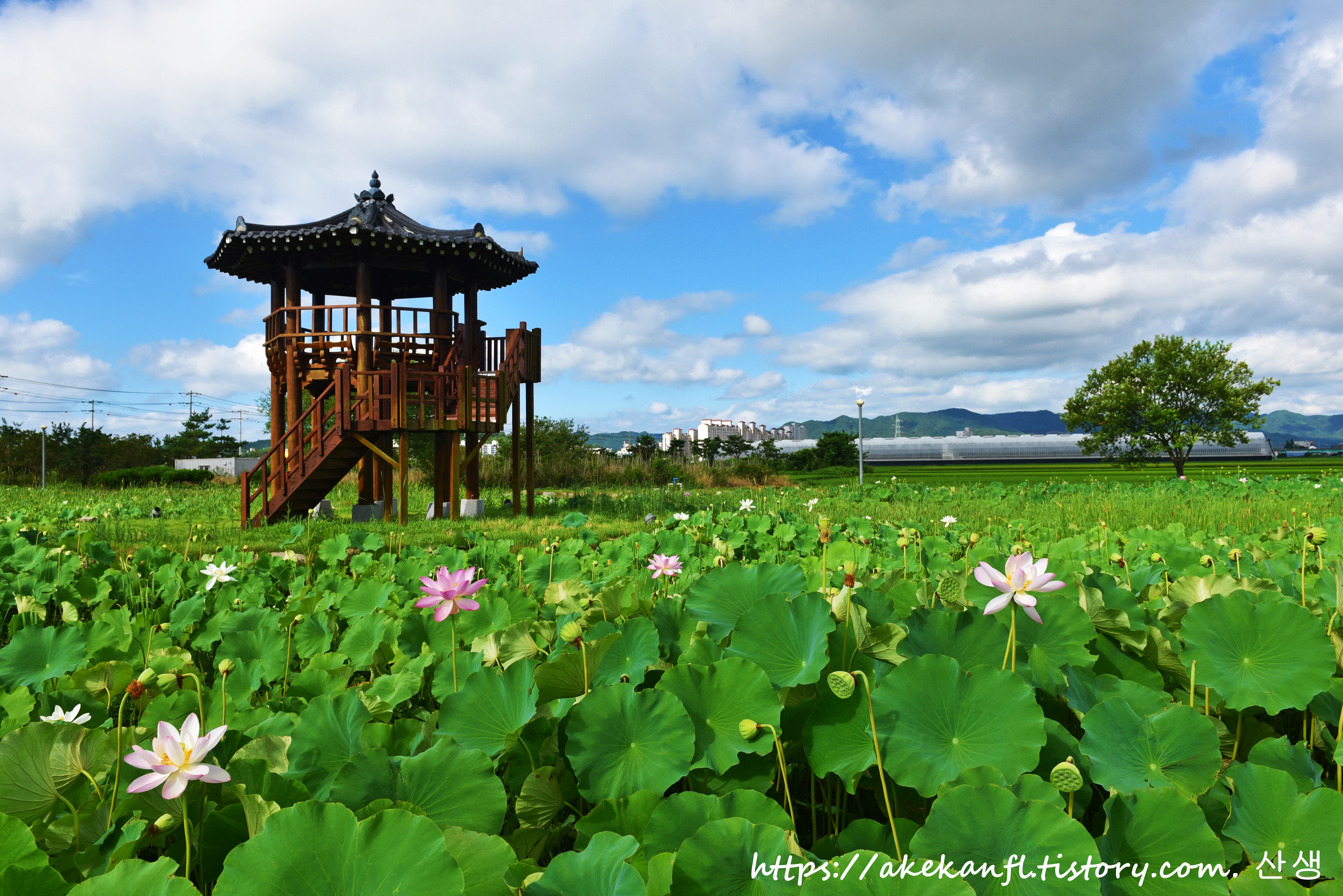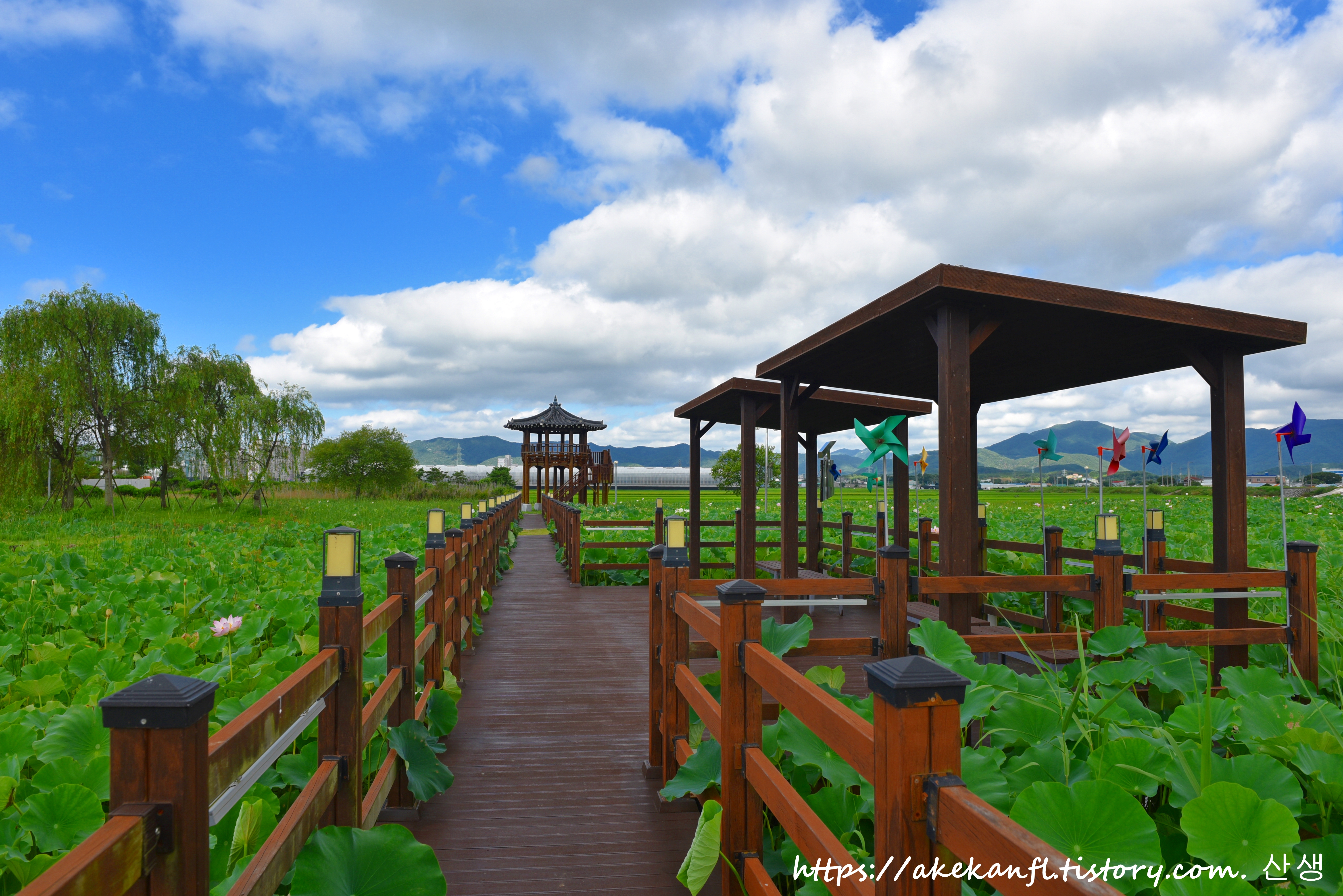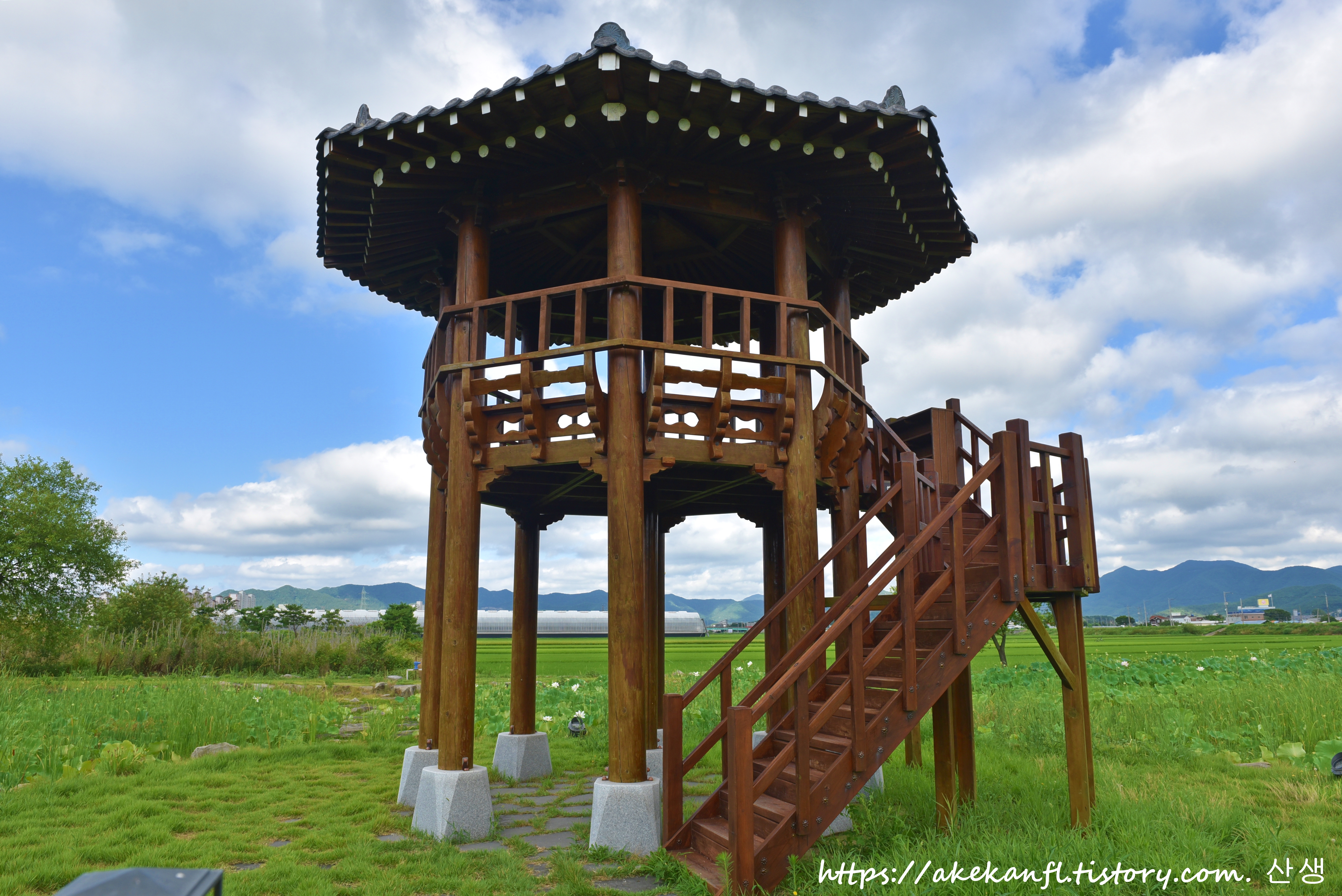 연꽃과 어우러진 정자전망대 쪽을 담아봄