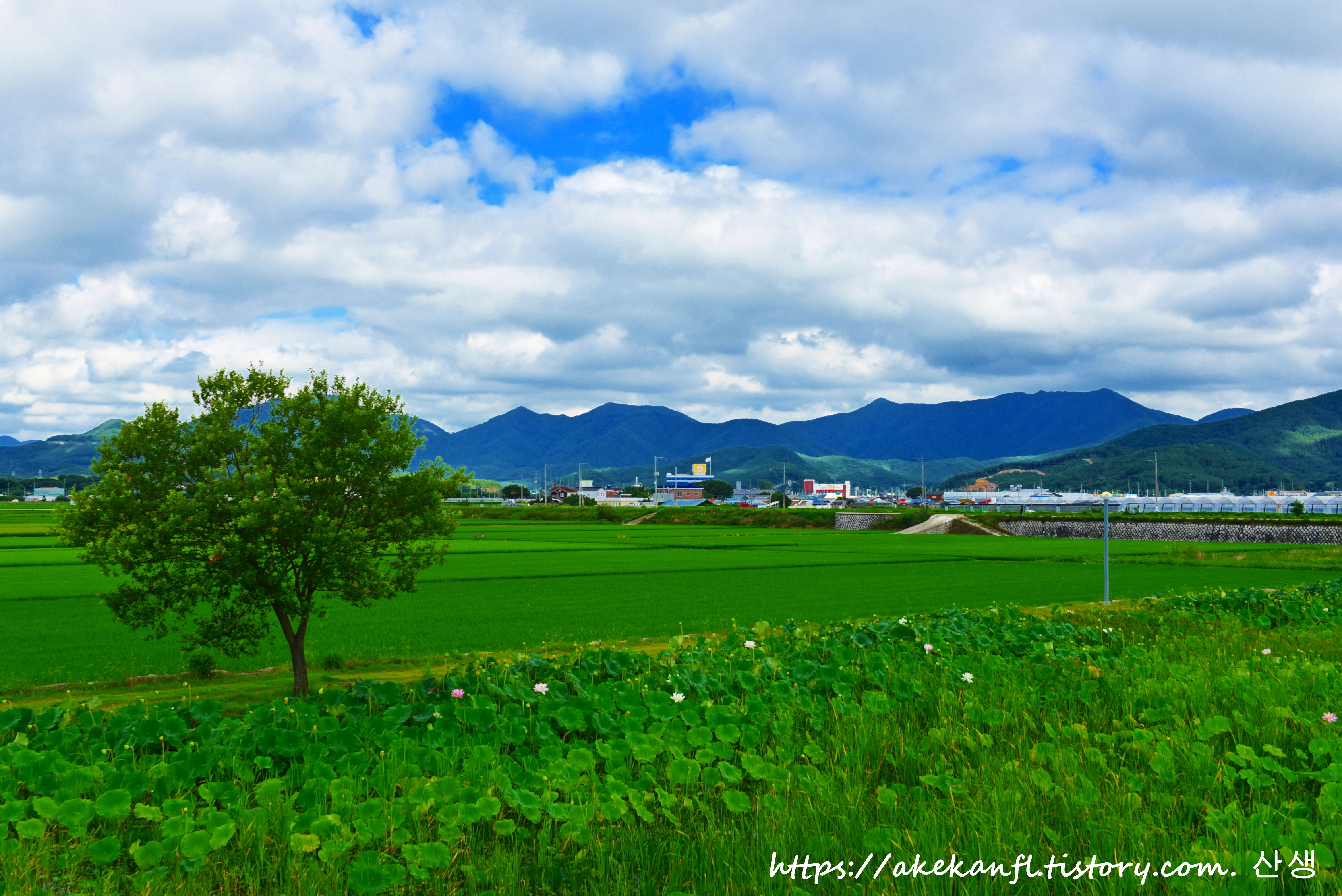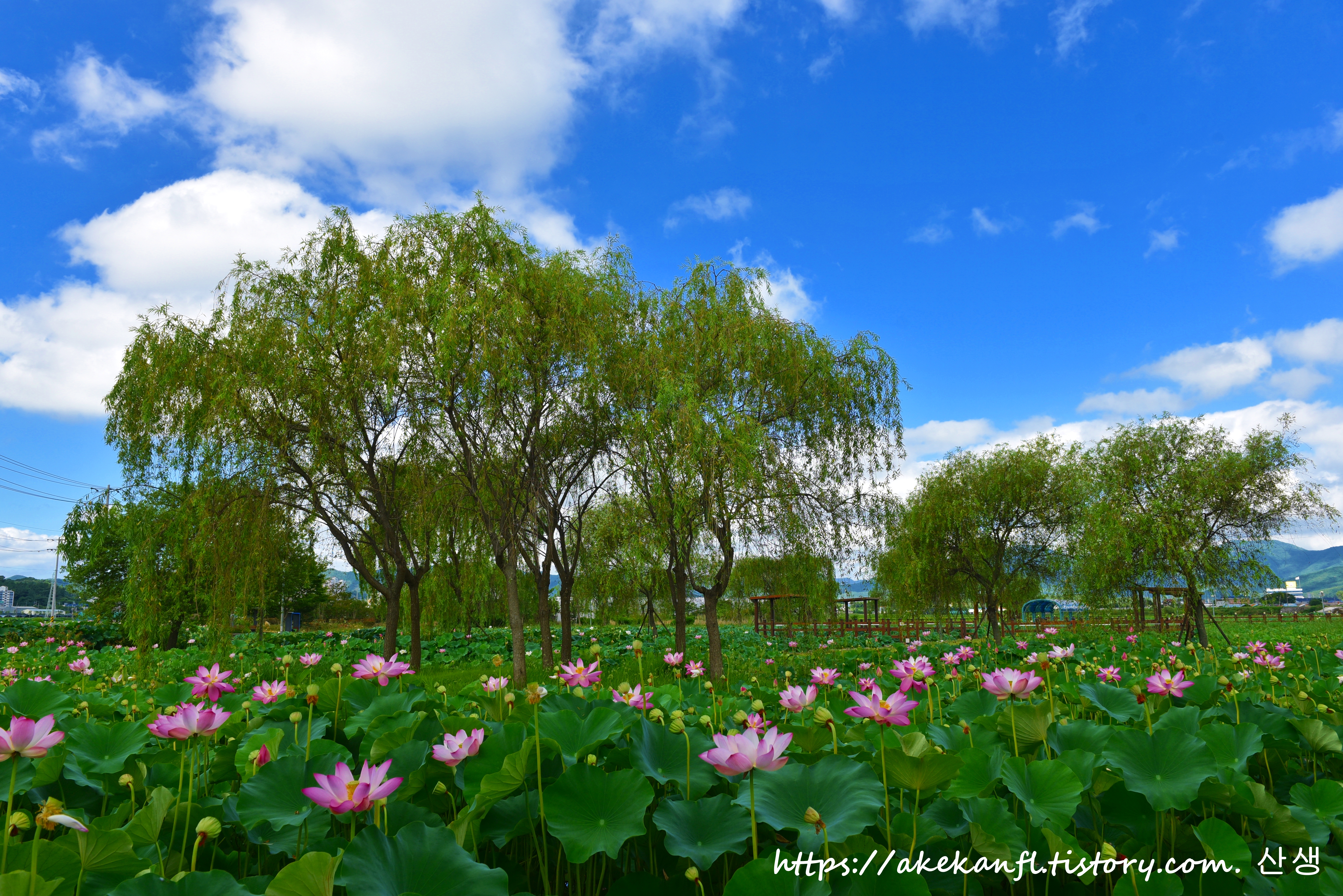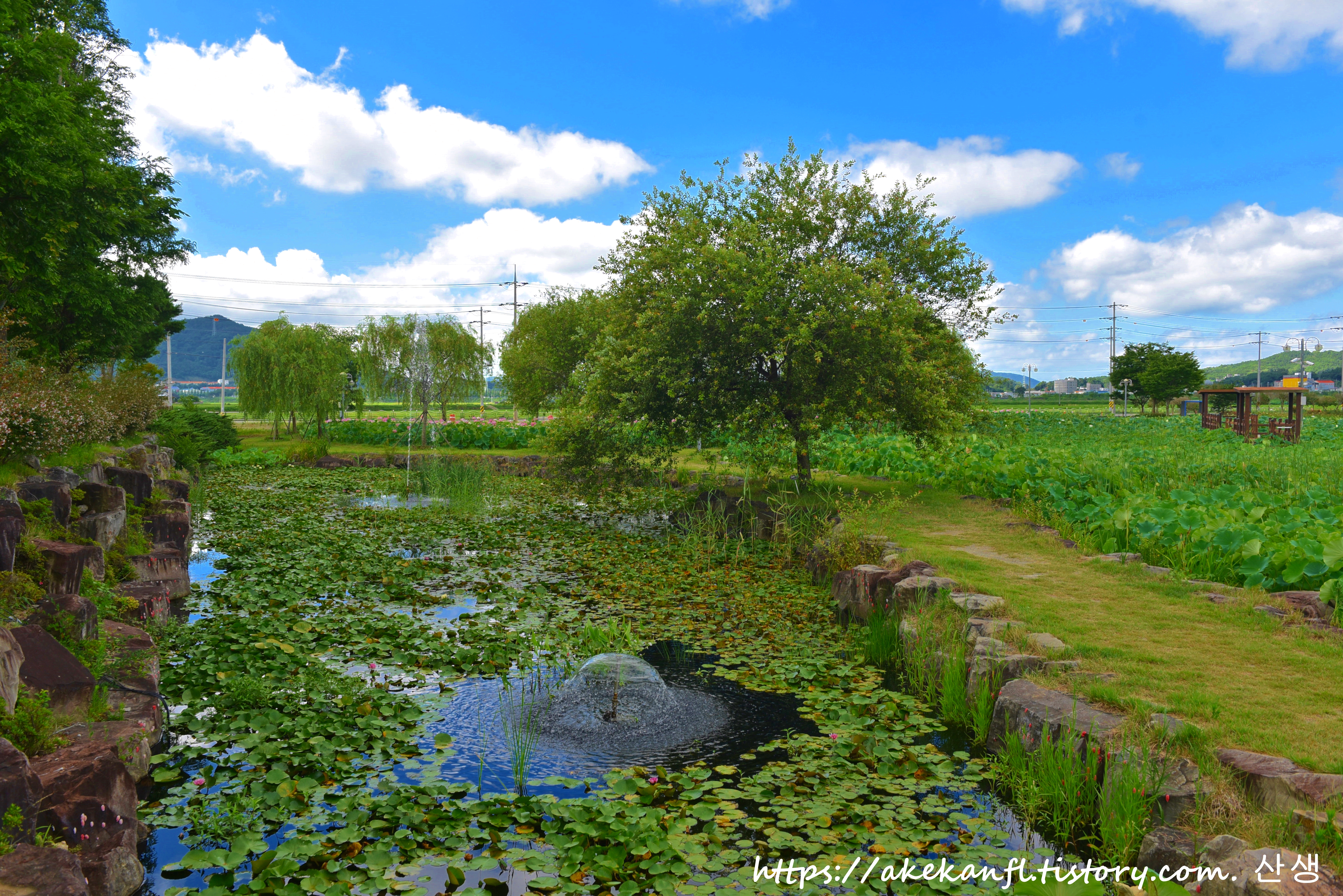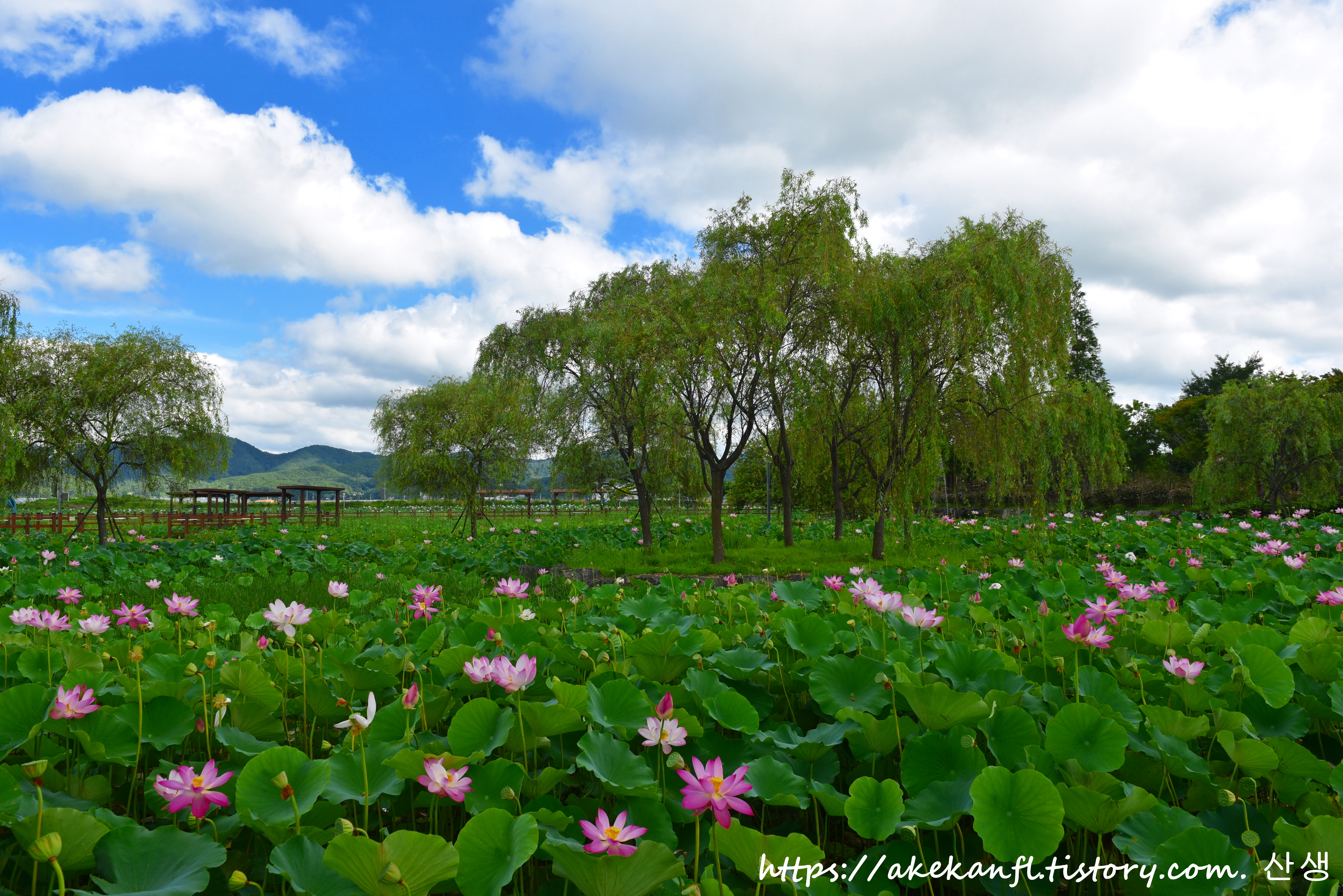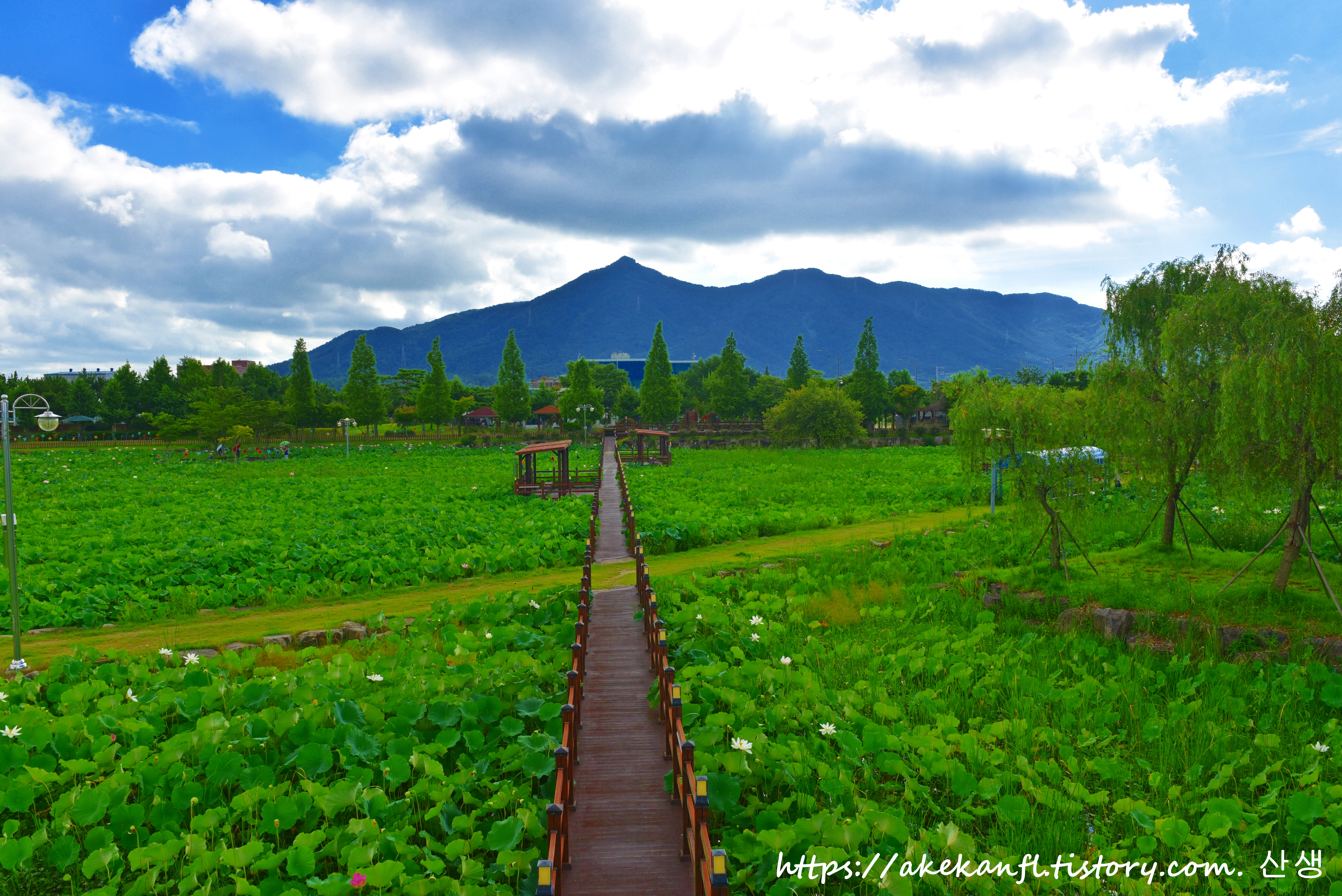 연꽃과 어우러진 정자전망대 쪽을 담아봄