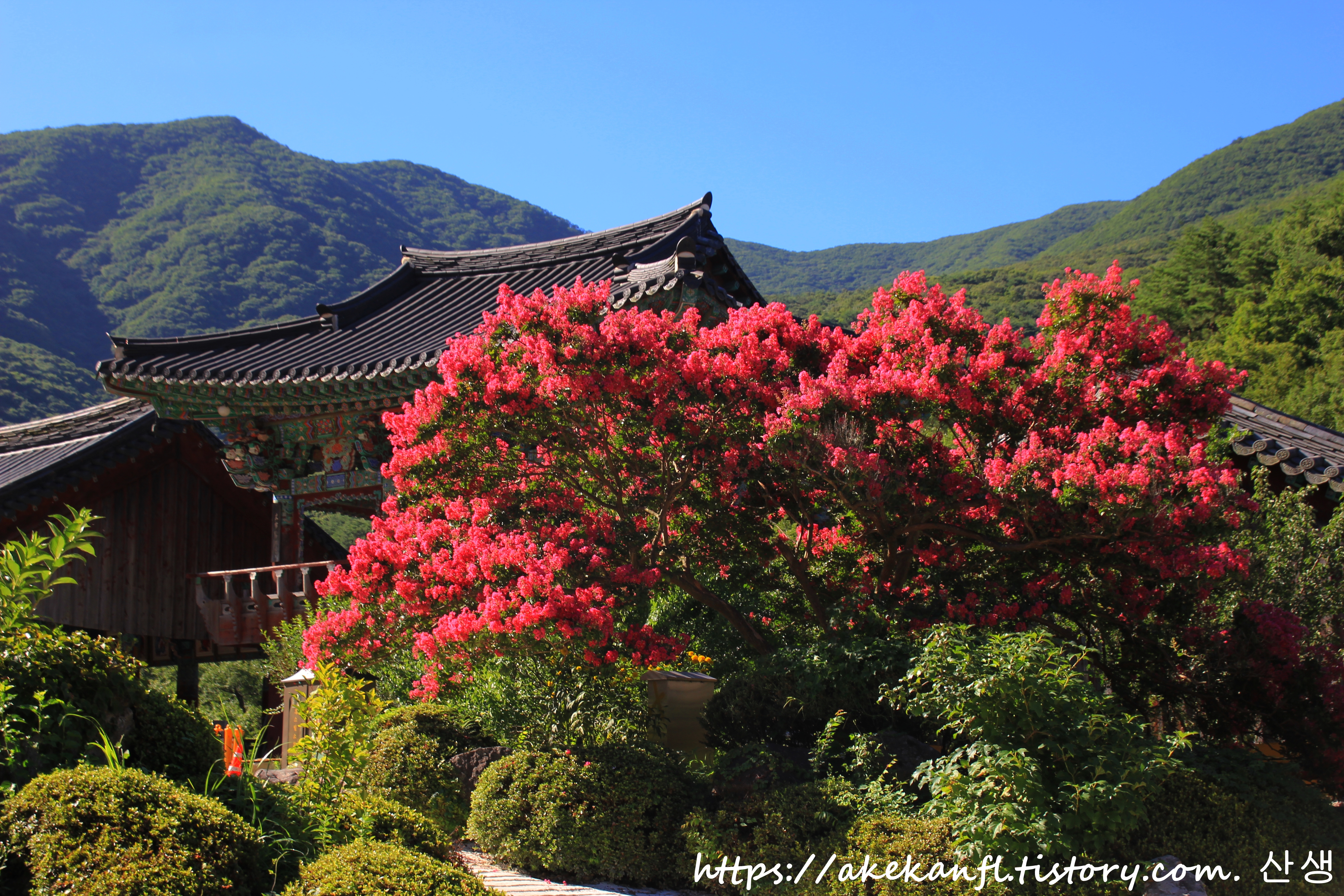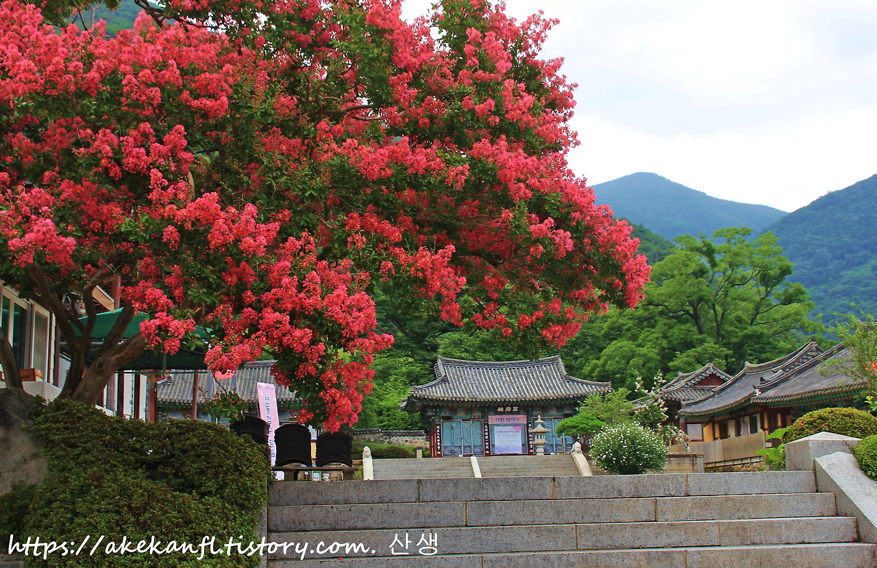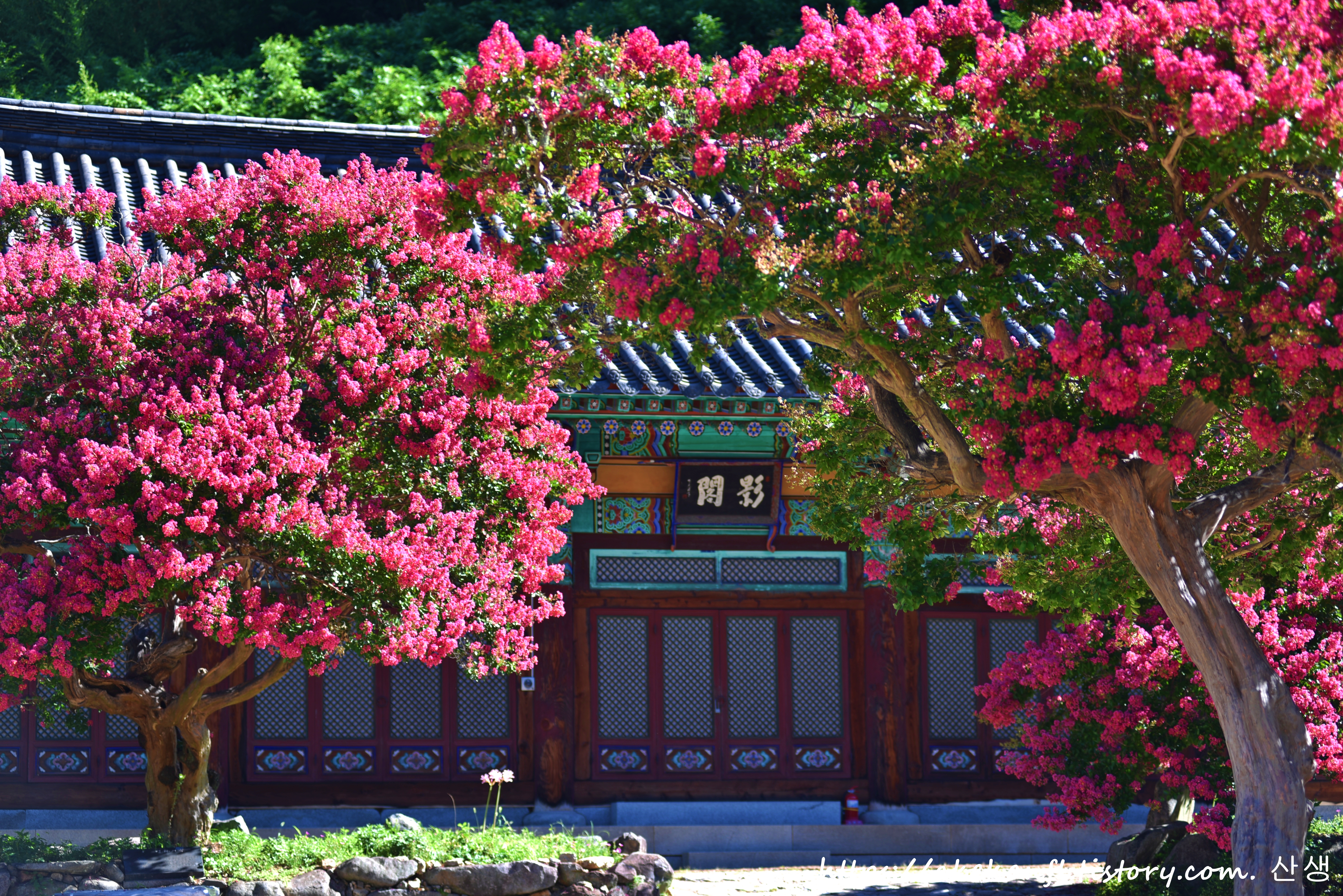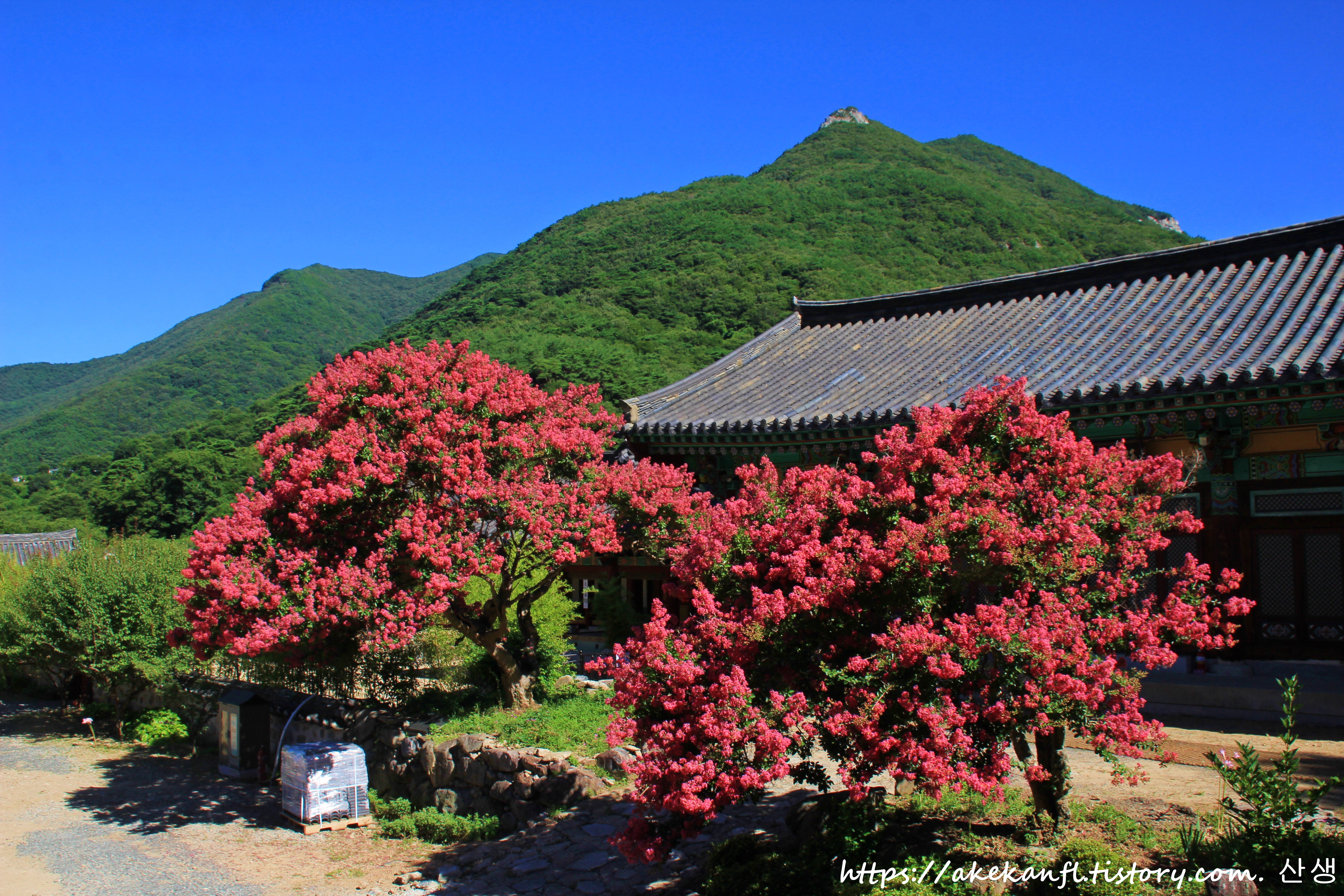 풍성하게 핀 배롱나무와 칠성전 쪽을 담고...