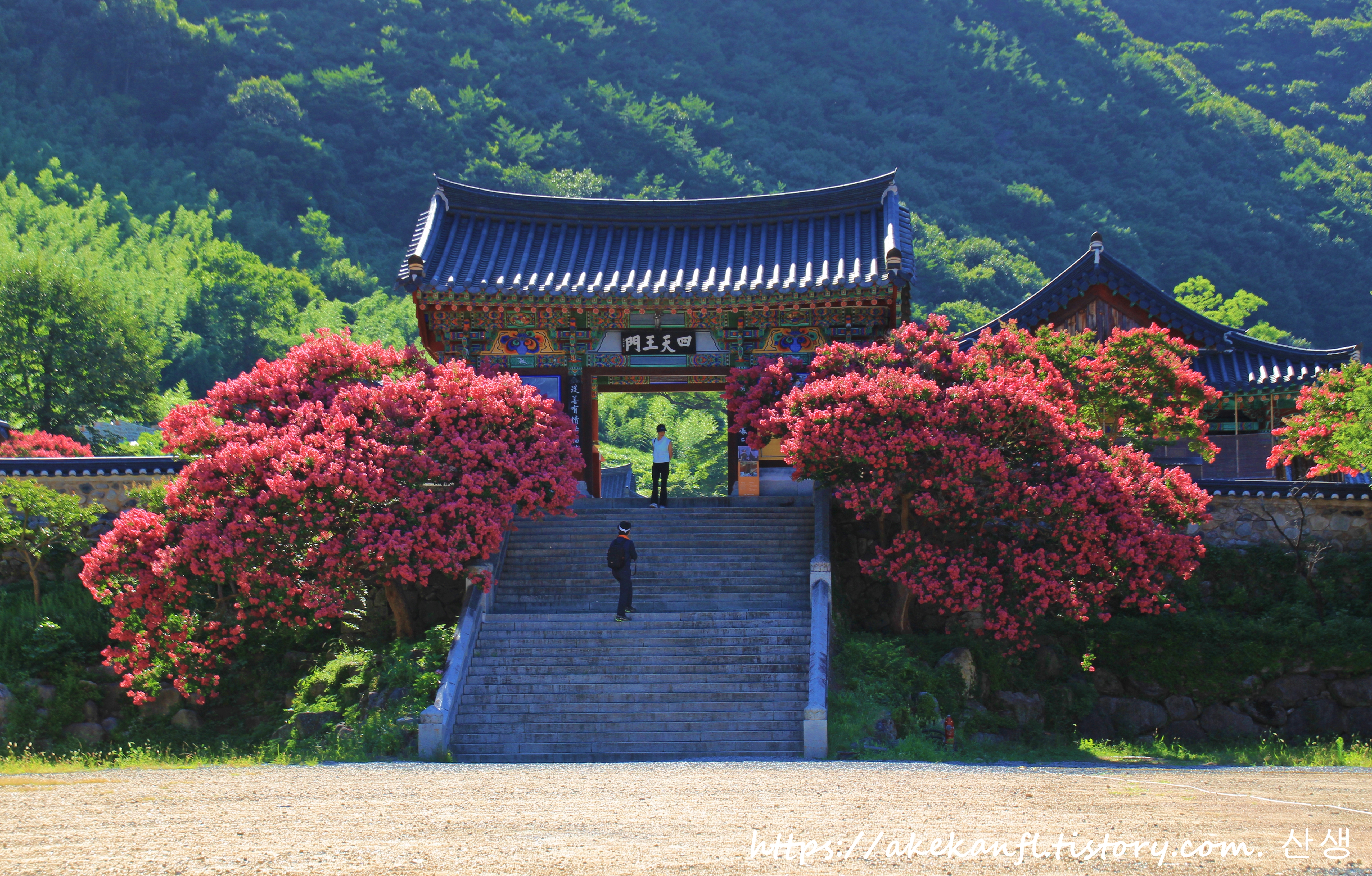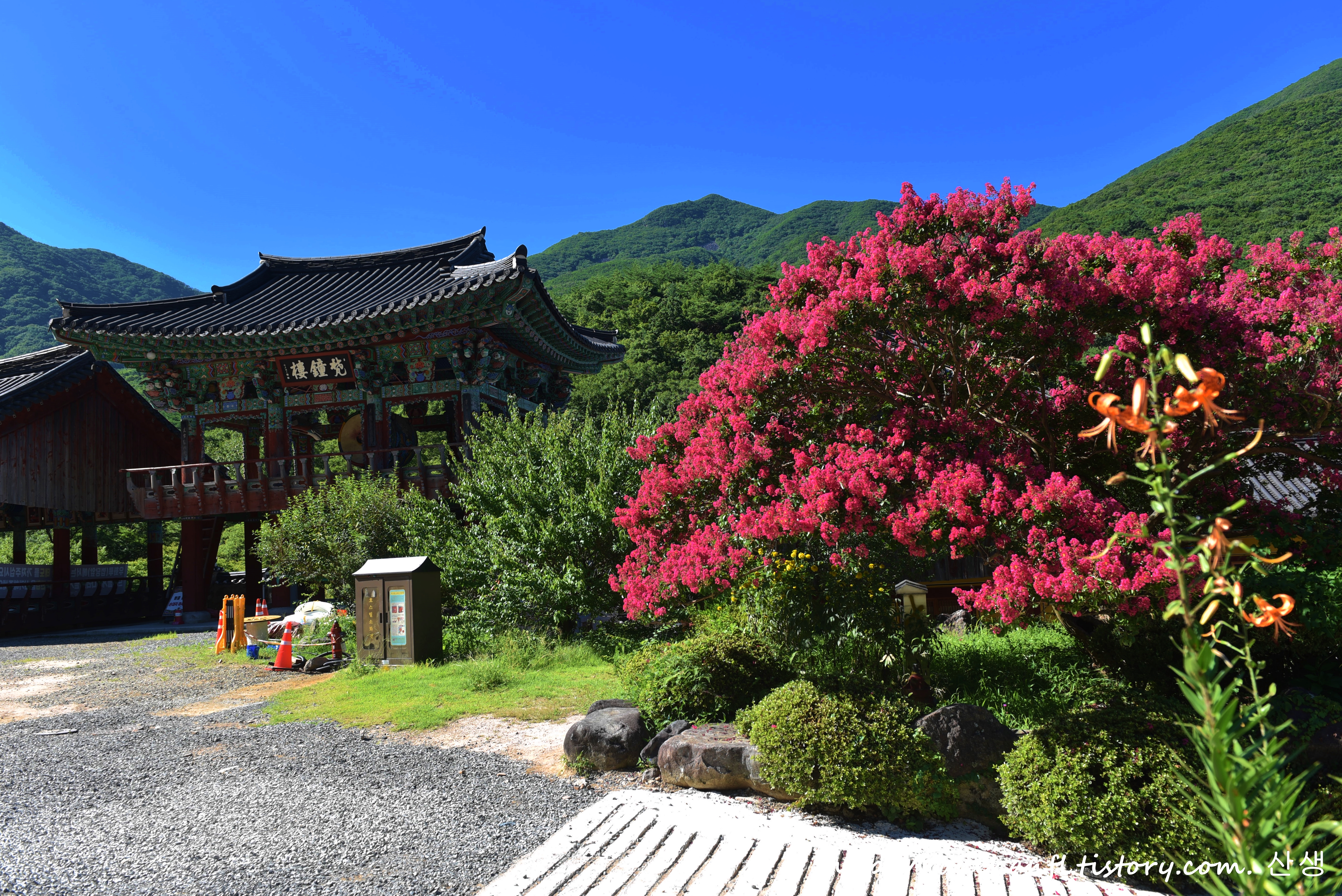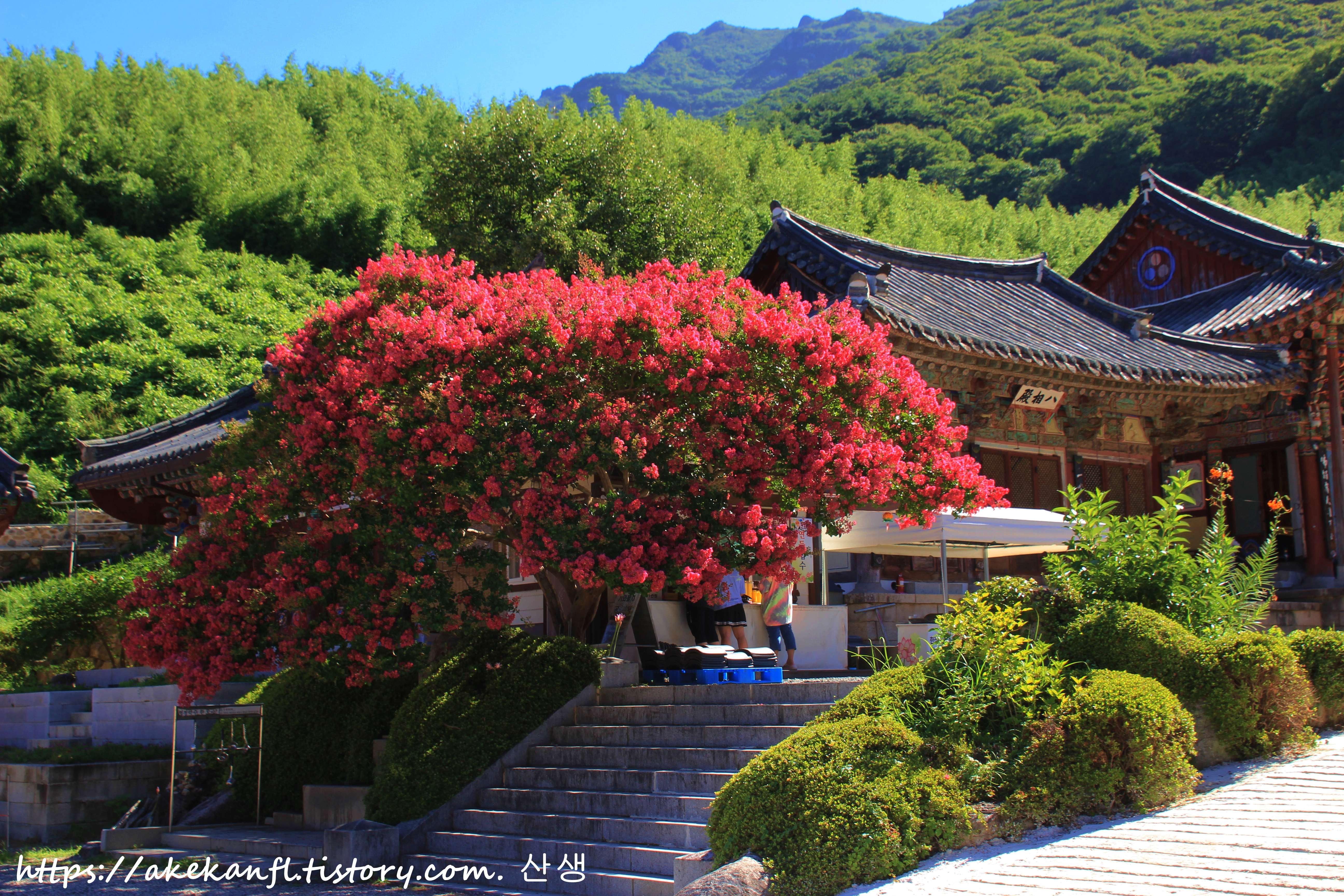 풍성하게 핀 배롱나무와 칠성전 쪽을 담고...