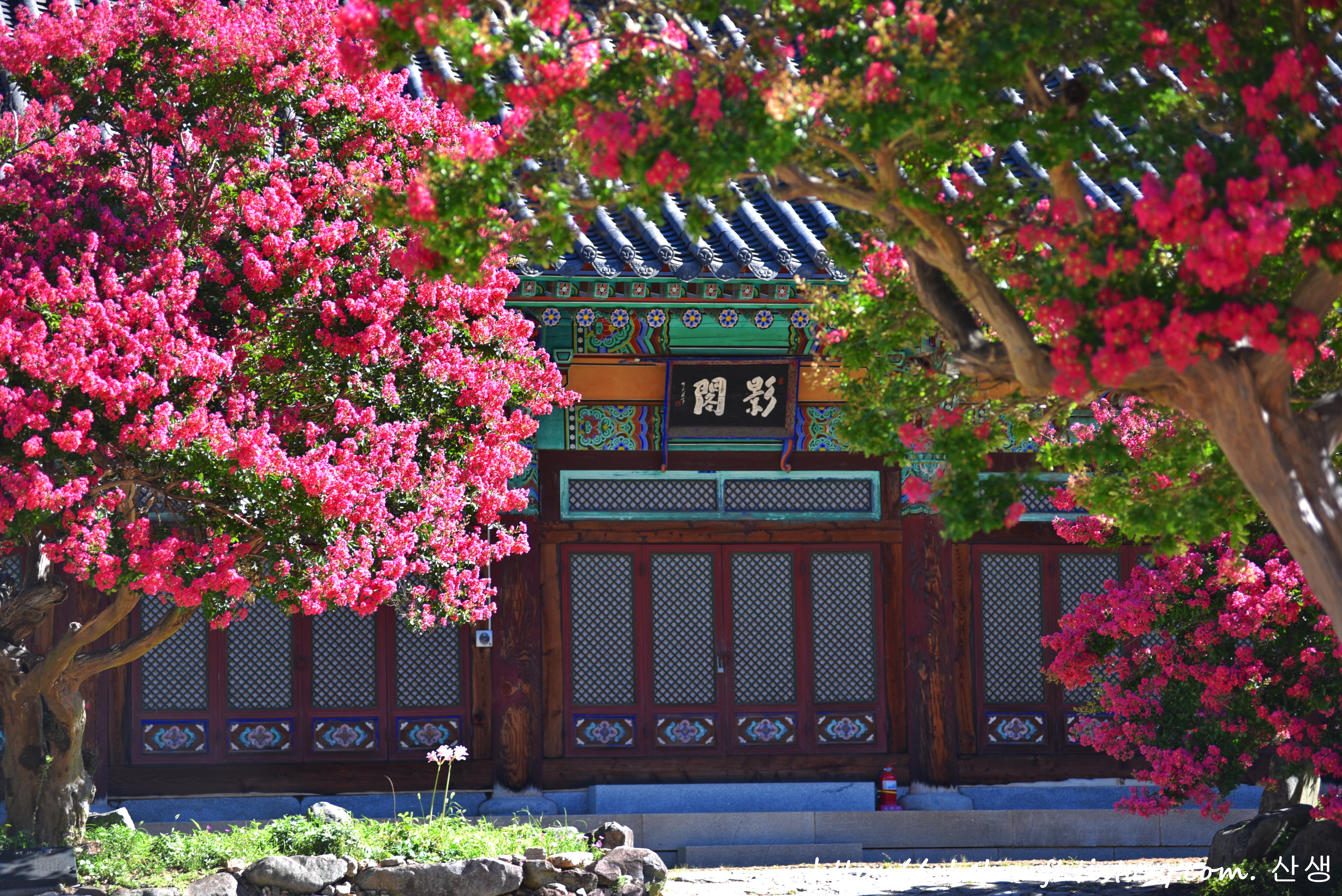 배롱나무와 어우러진 영각 쪽 풍광을 담아봄