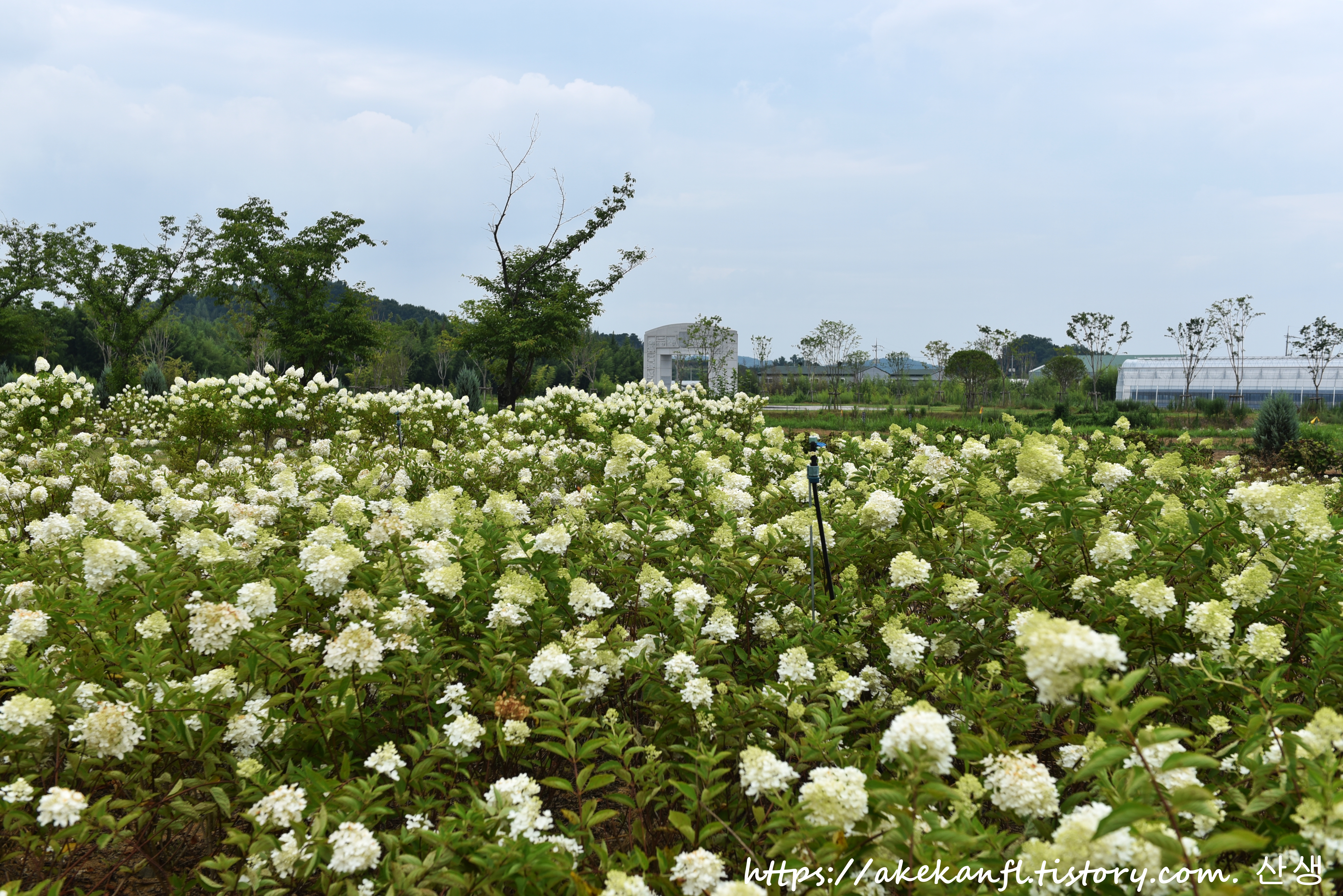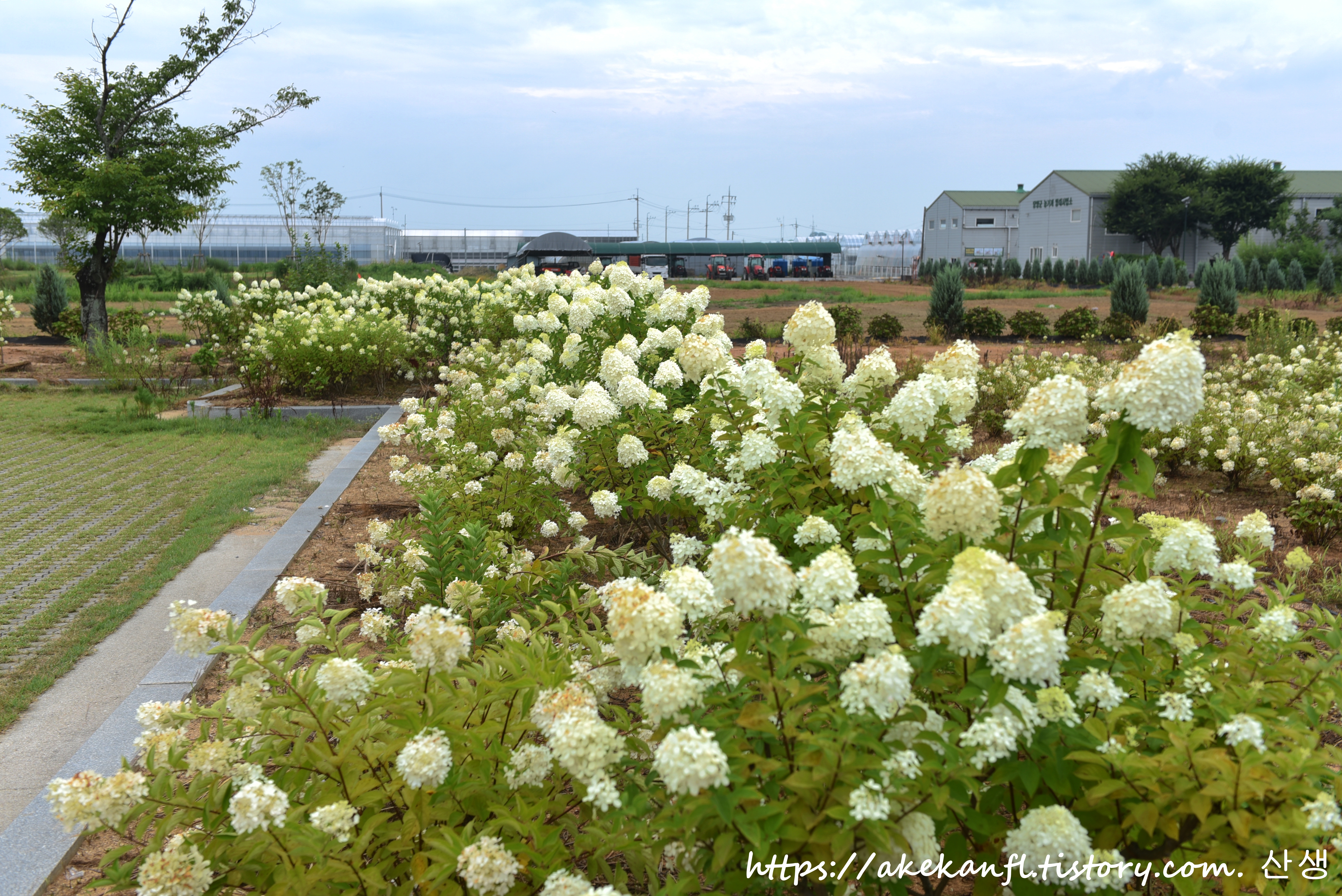 성에 차지 않는 목수국 꽃밭을 둘러보고