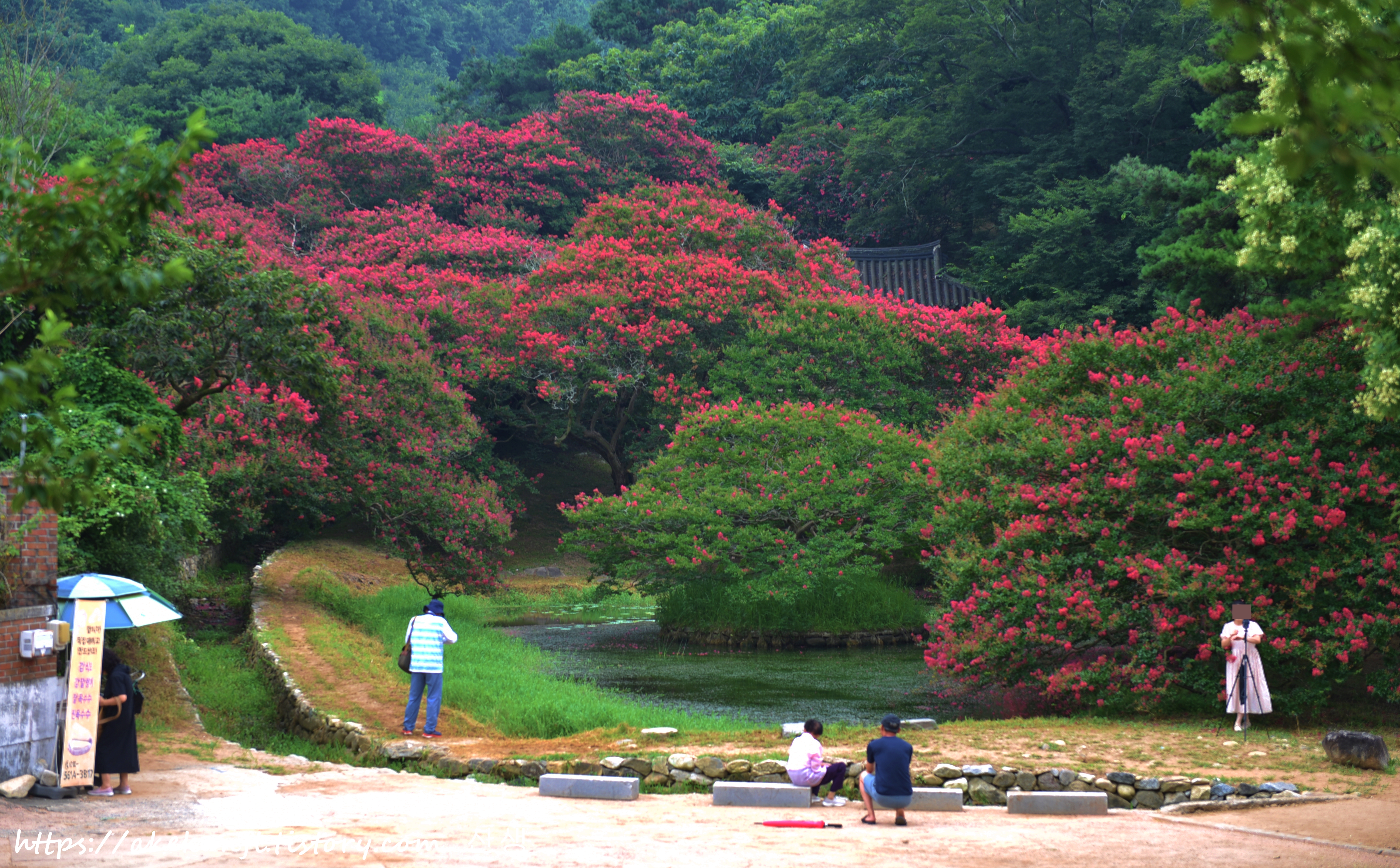붉게 물든 배롱나무 숲을 당겨 담아봄