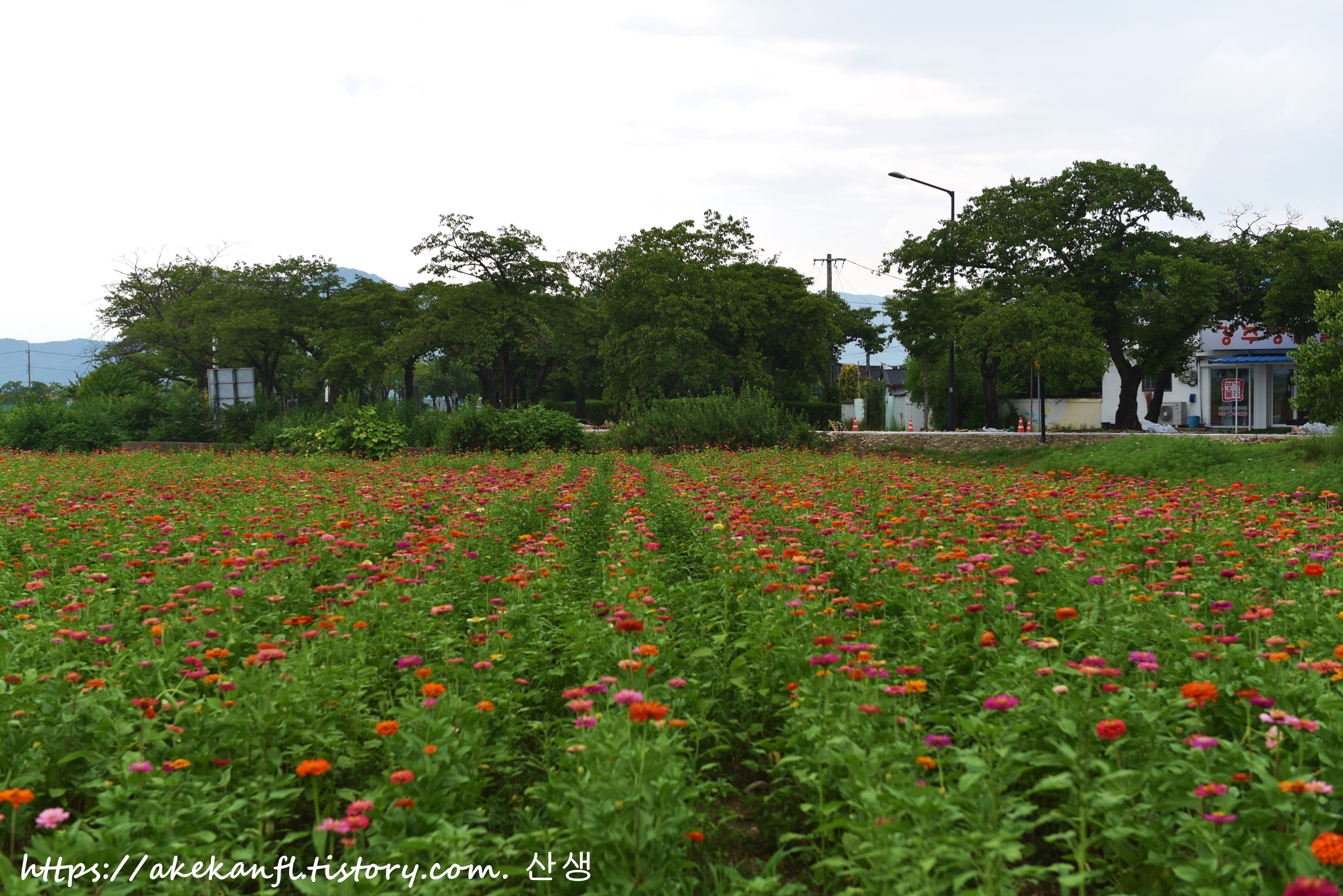 넓은 백일홍 꽃밭을 담아본다