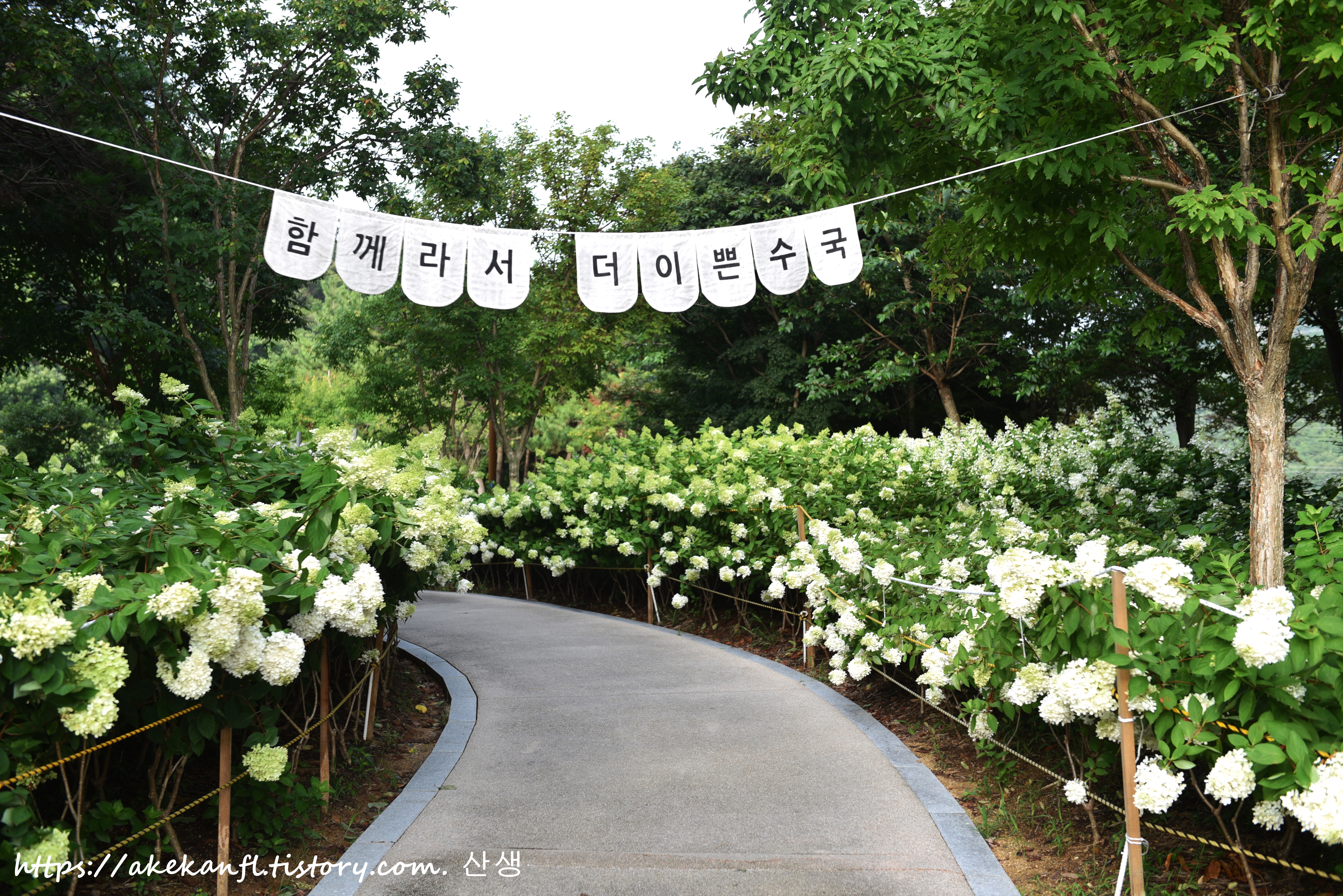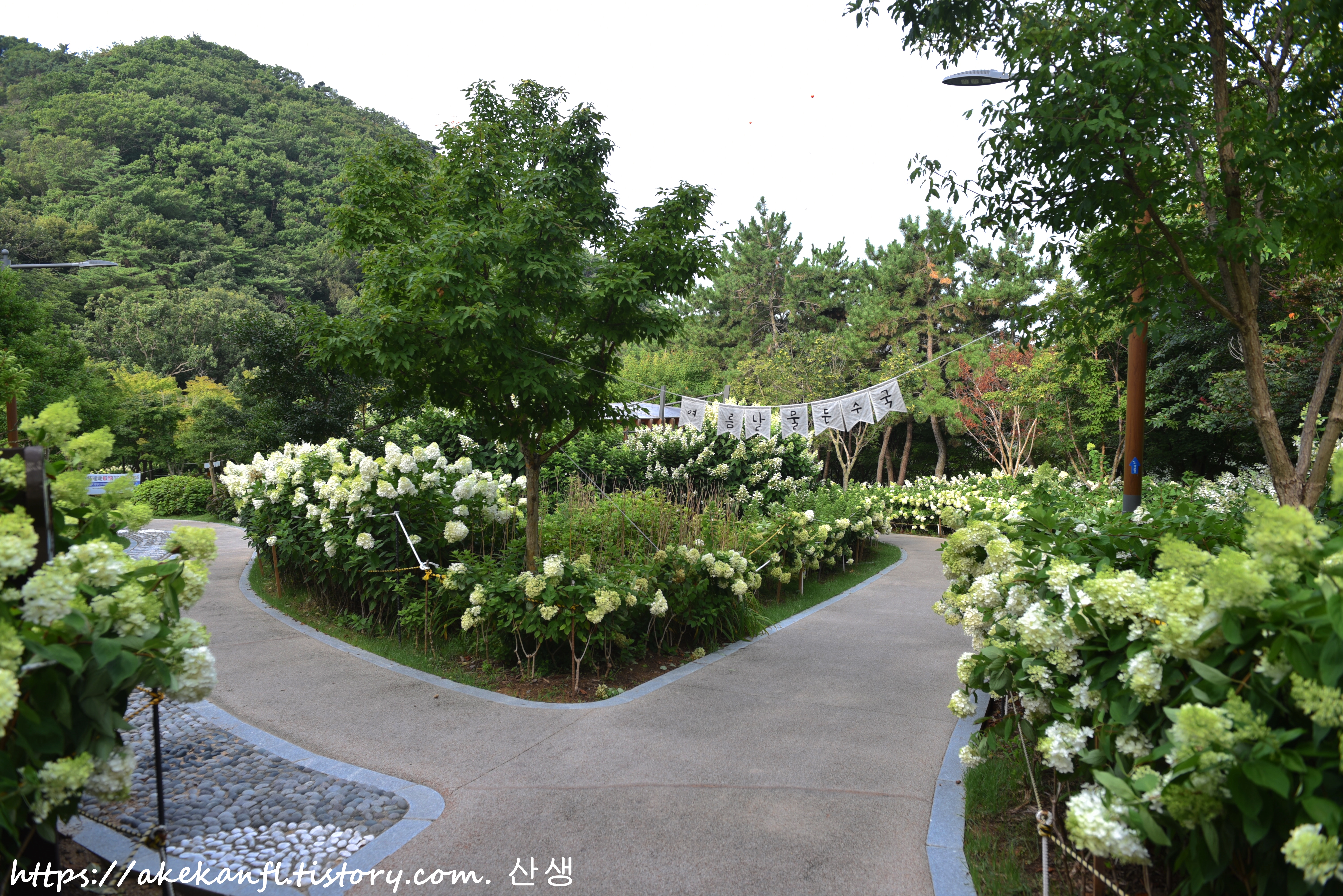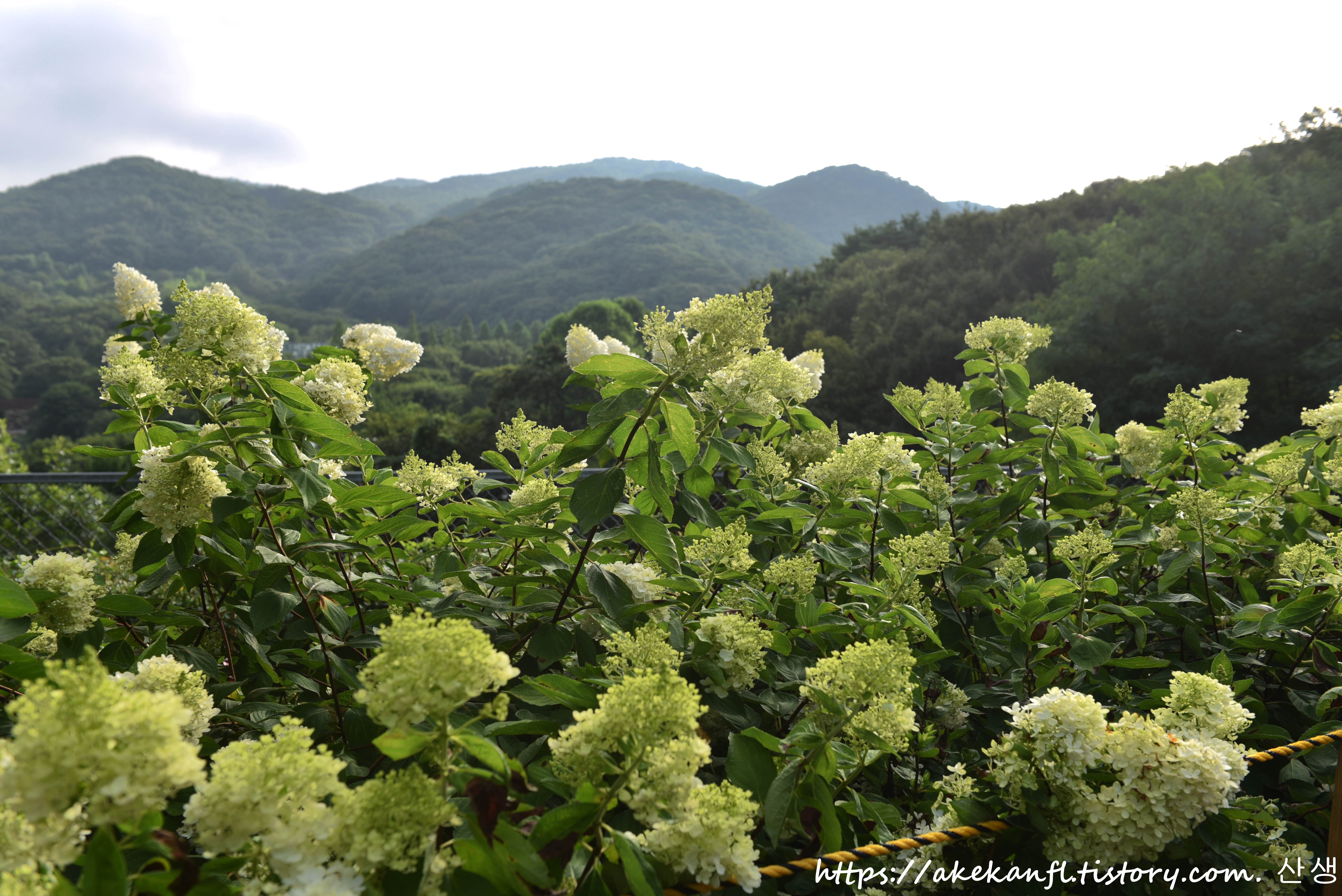 늦게 핀 수국 몇 송이가 눈길을 끈다 ㅋ
