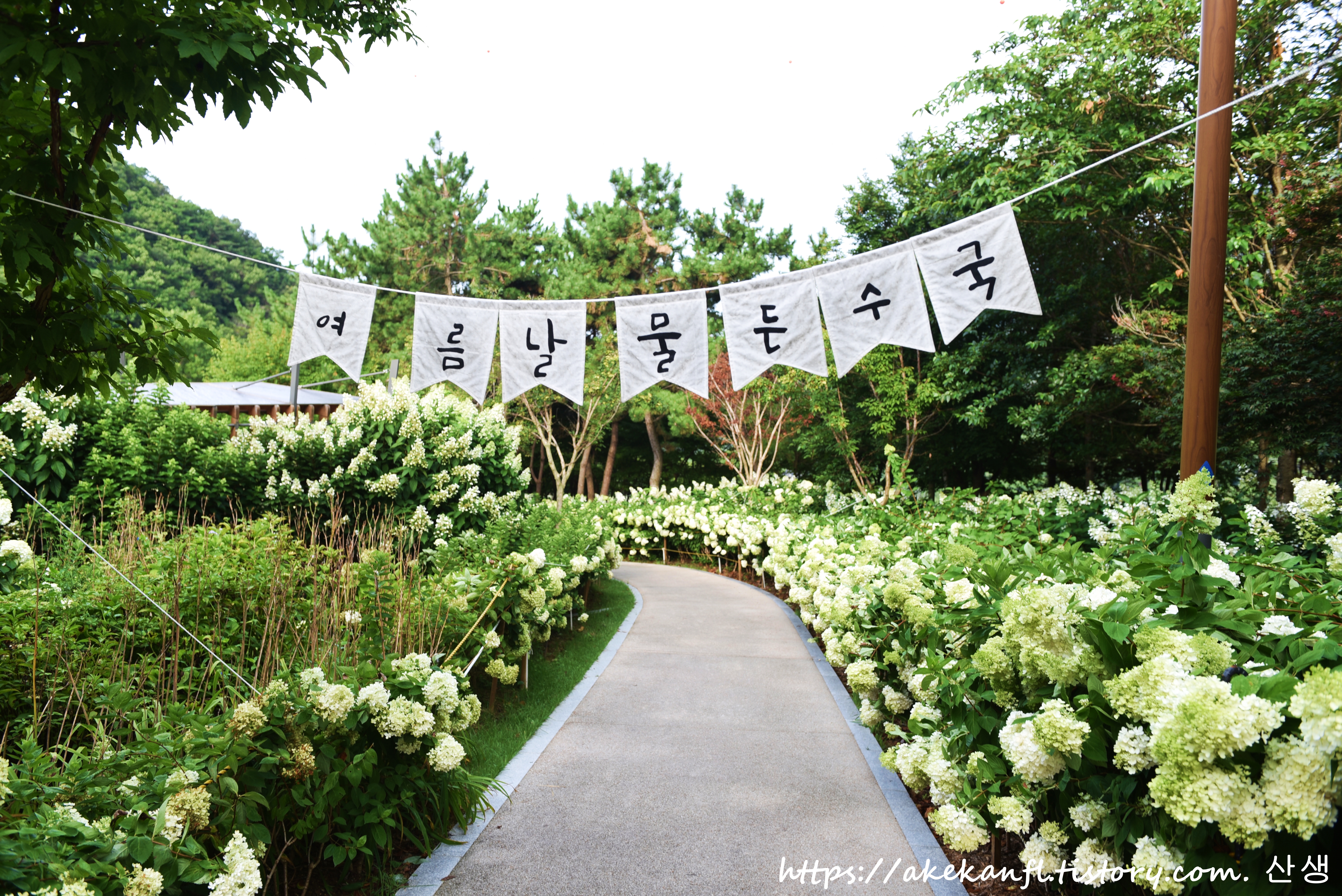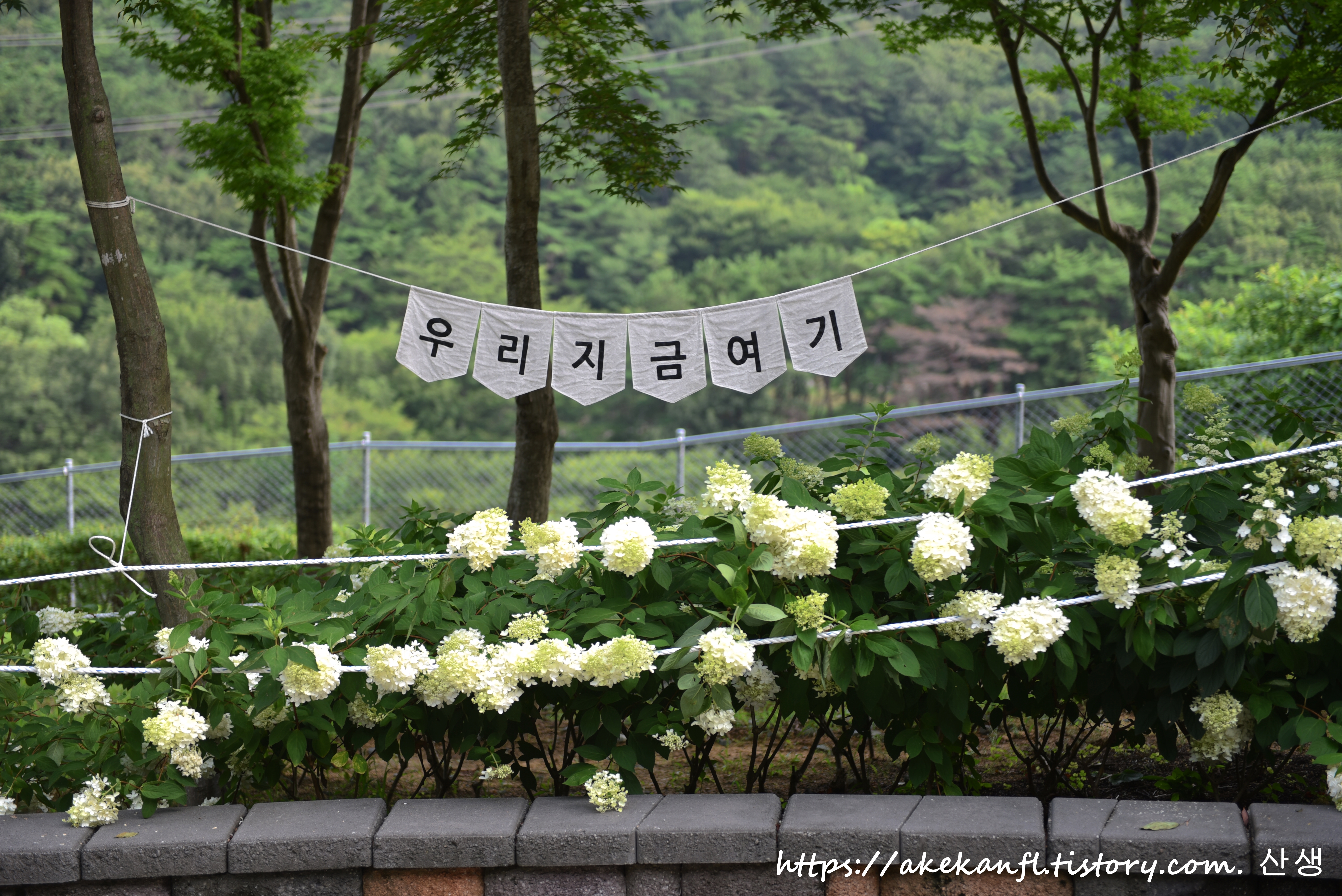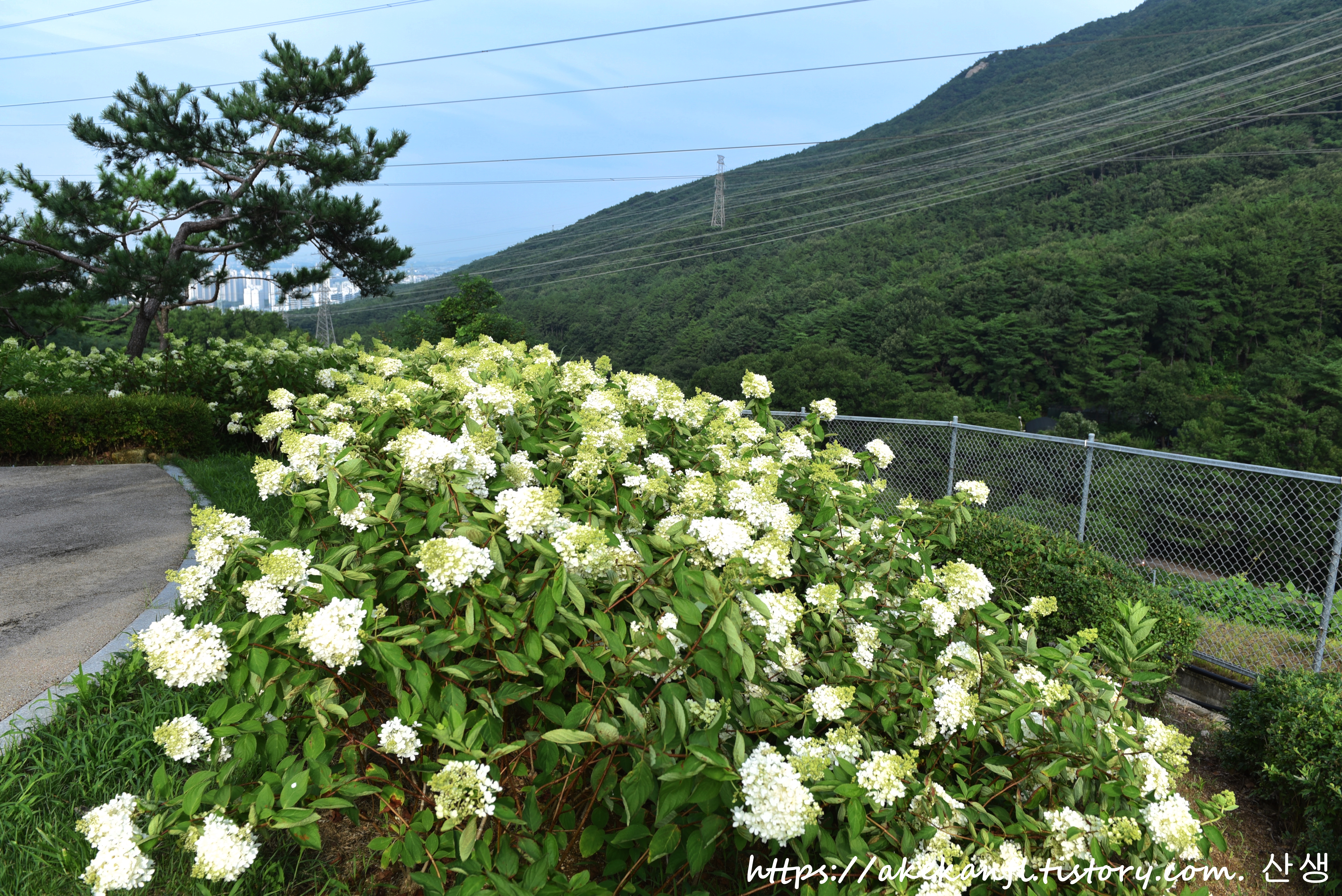 늦게 핀 수국 몇 송이가 눈길을 끈다 ㅋ