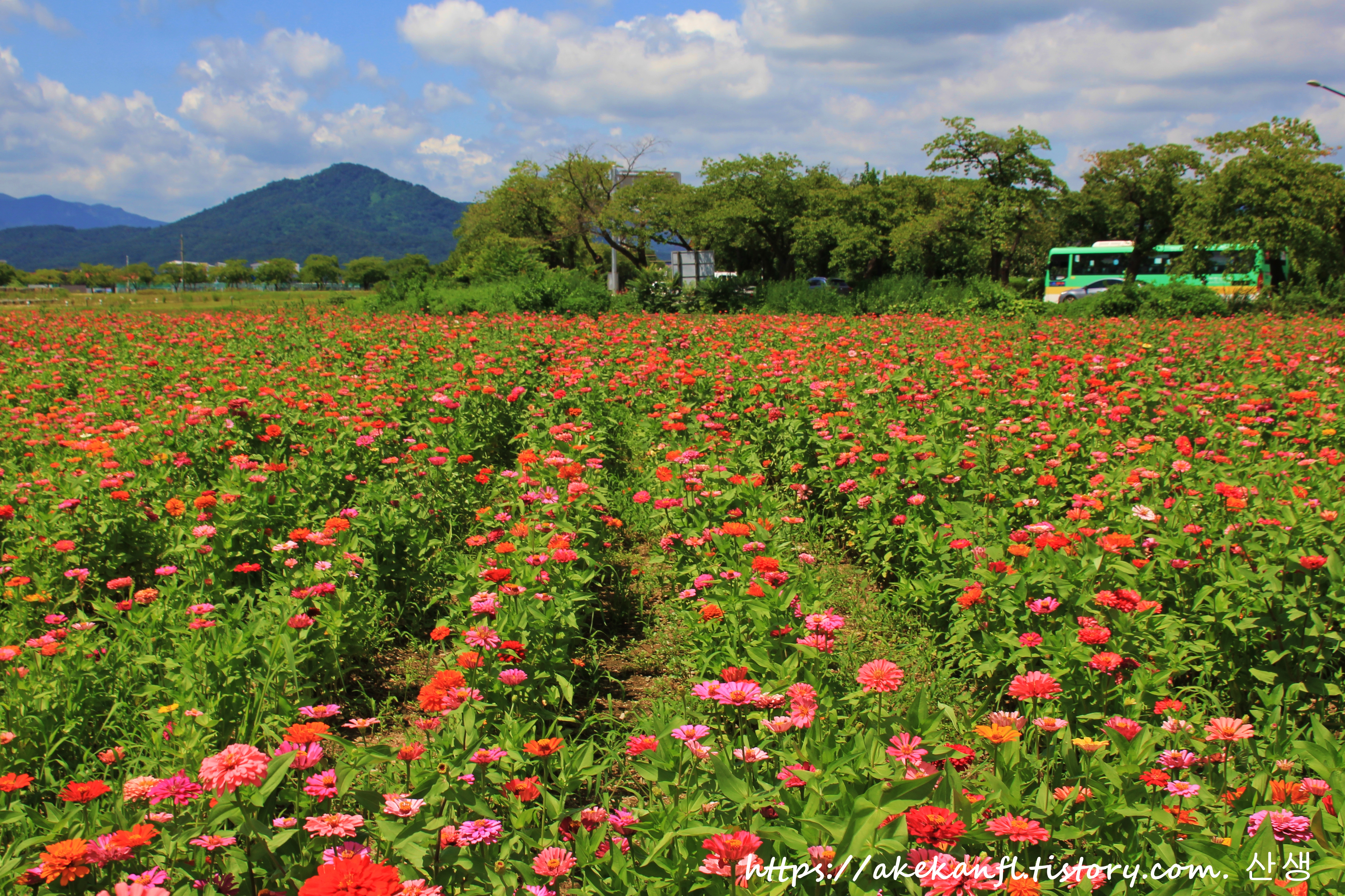 형형색색의 백일홍 꽃밭을 담고...