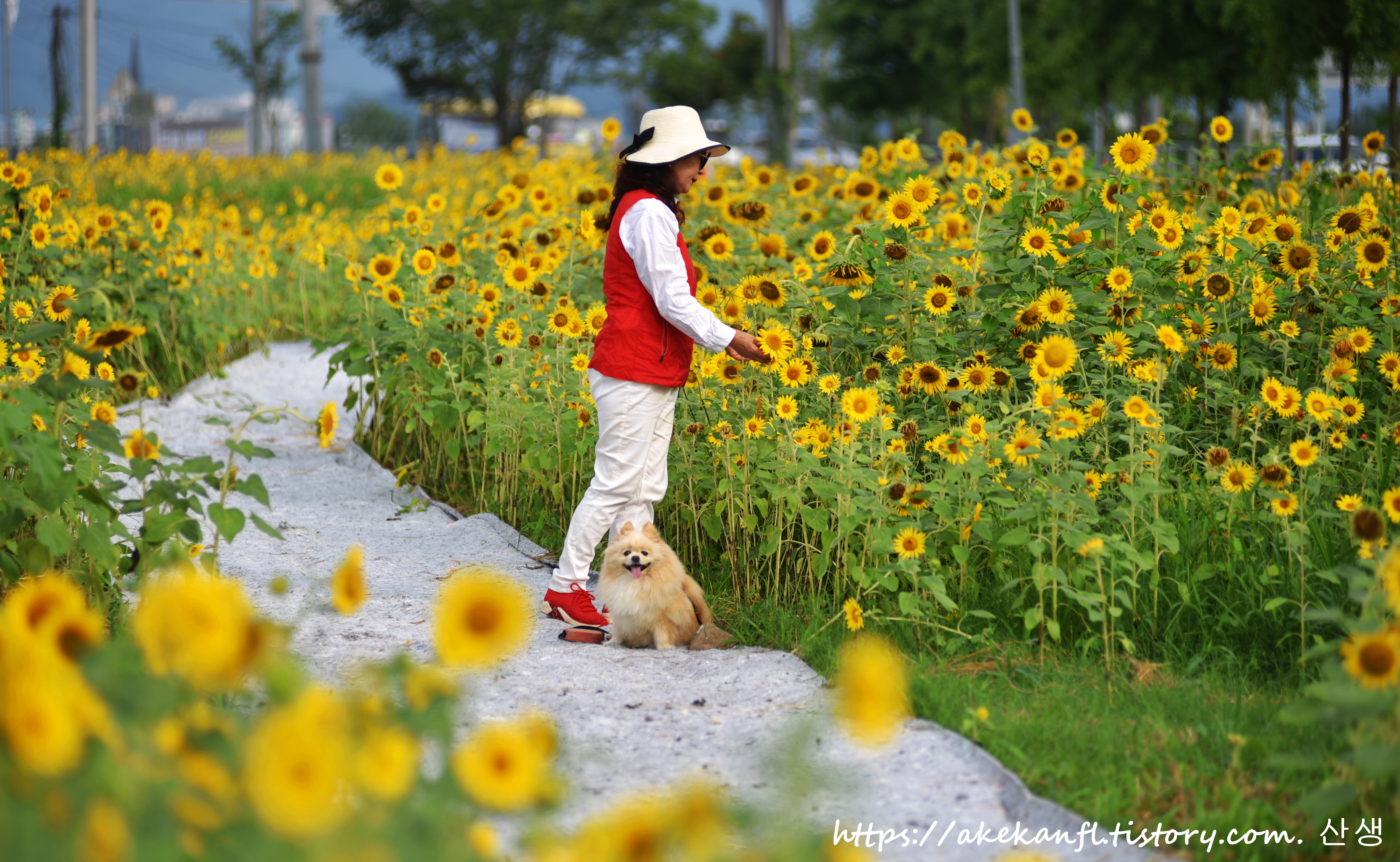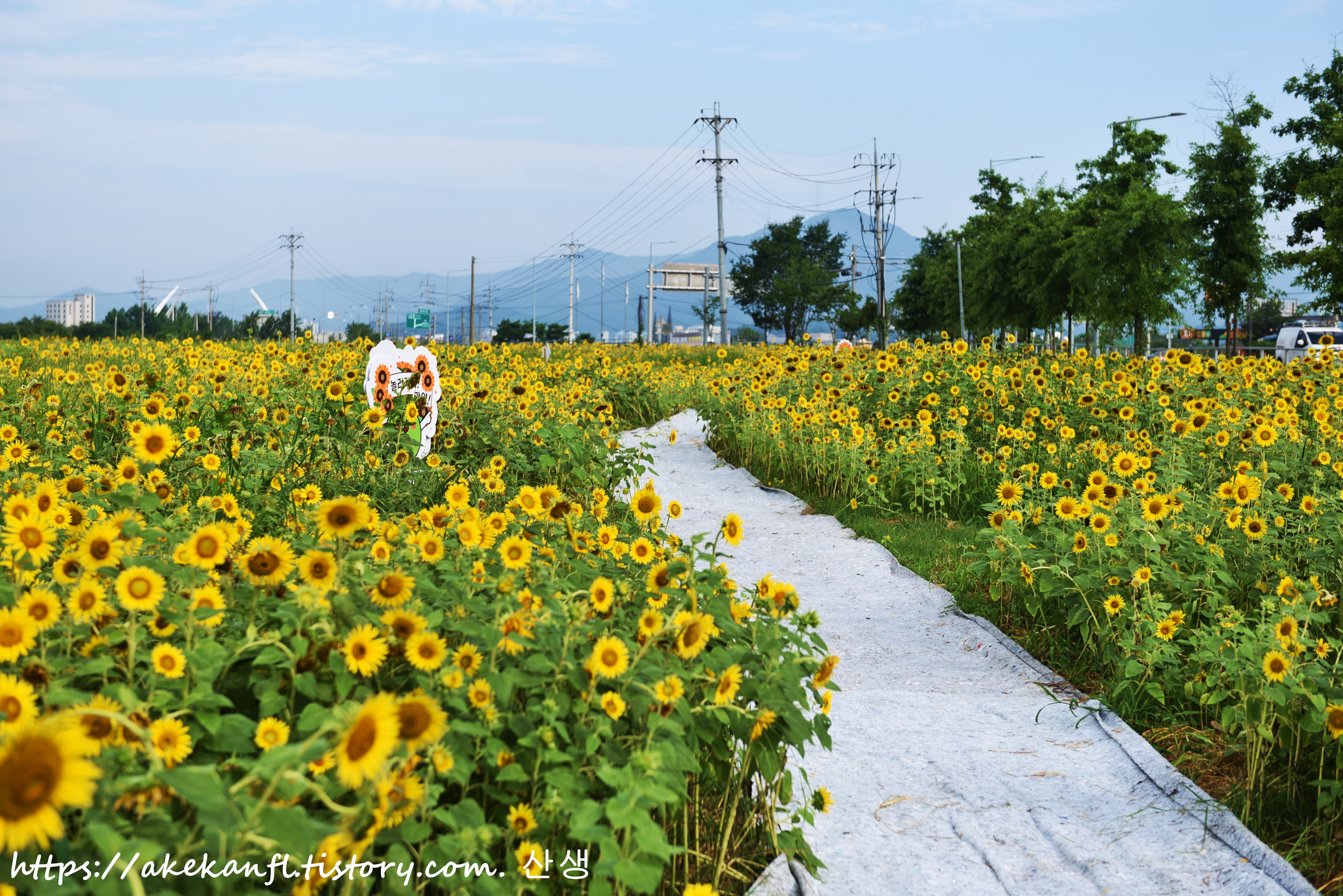 해바라기 꽃길을 당겨 담고...