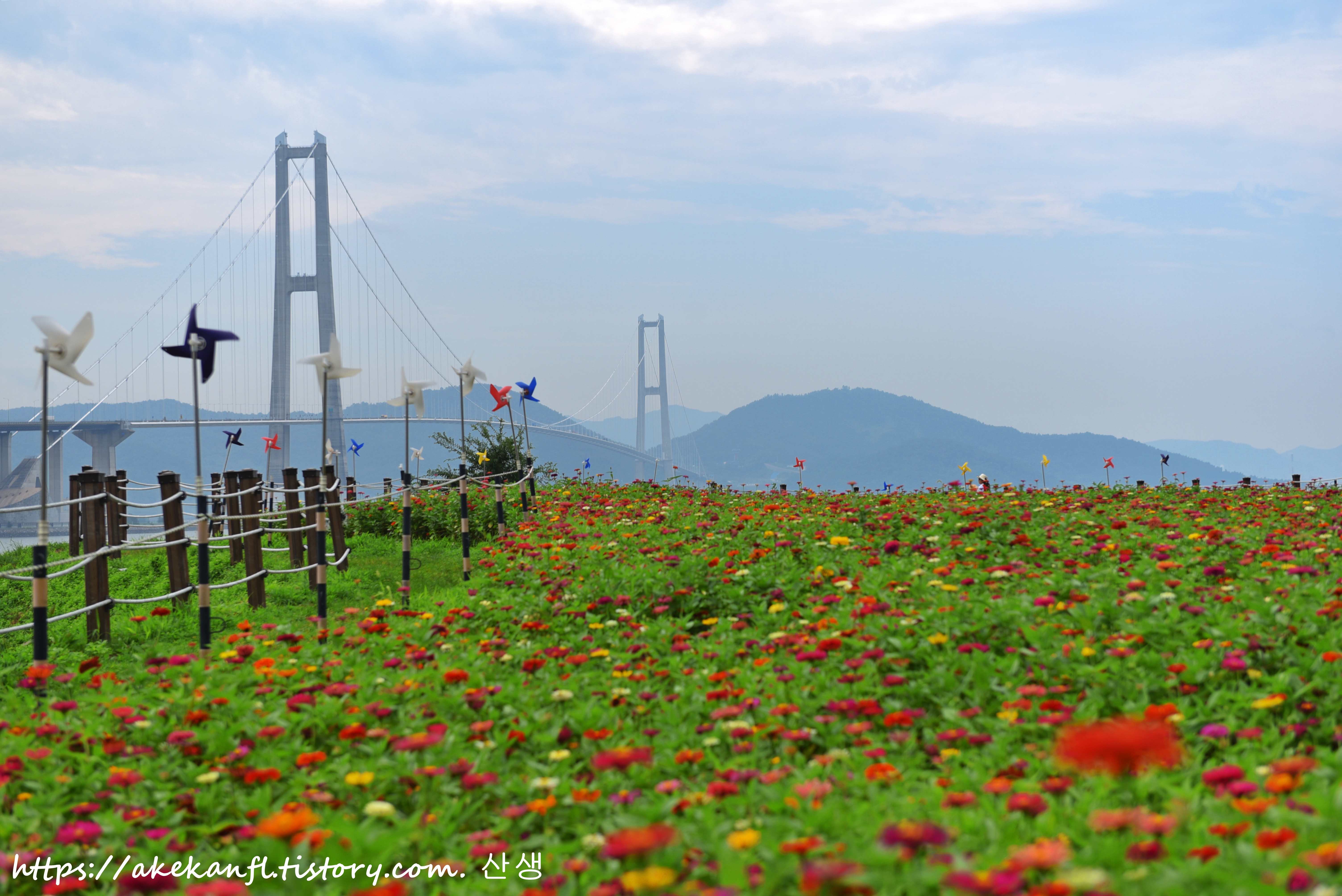 멋진 꽃길과 이순신대교를 배경으로...