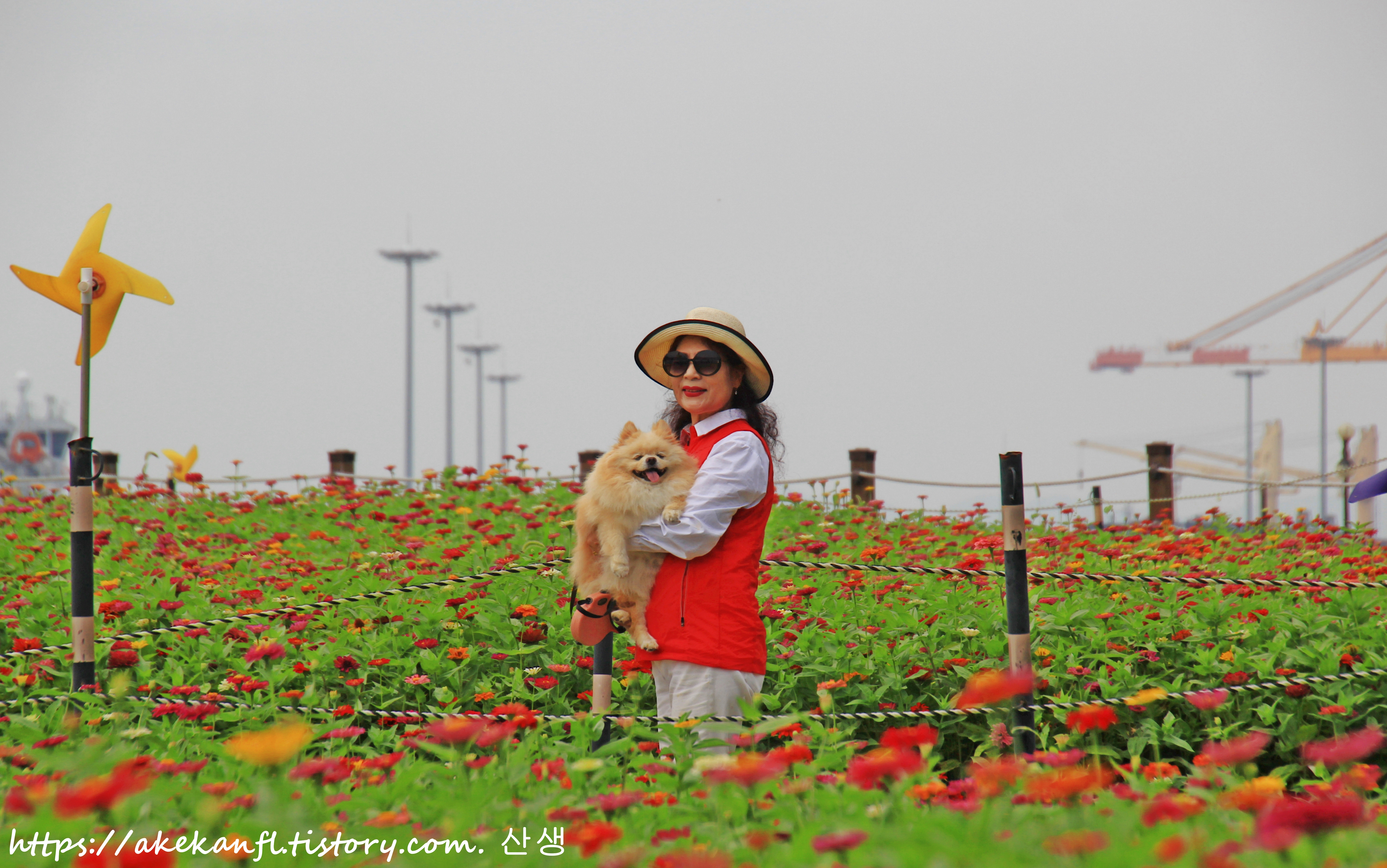 꽃밭과 어우러진 광양항을 끝으로
