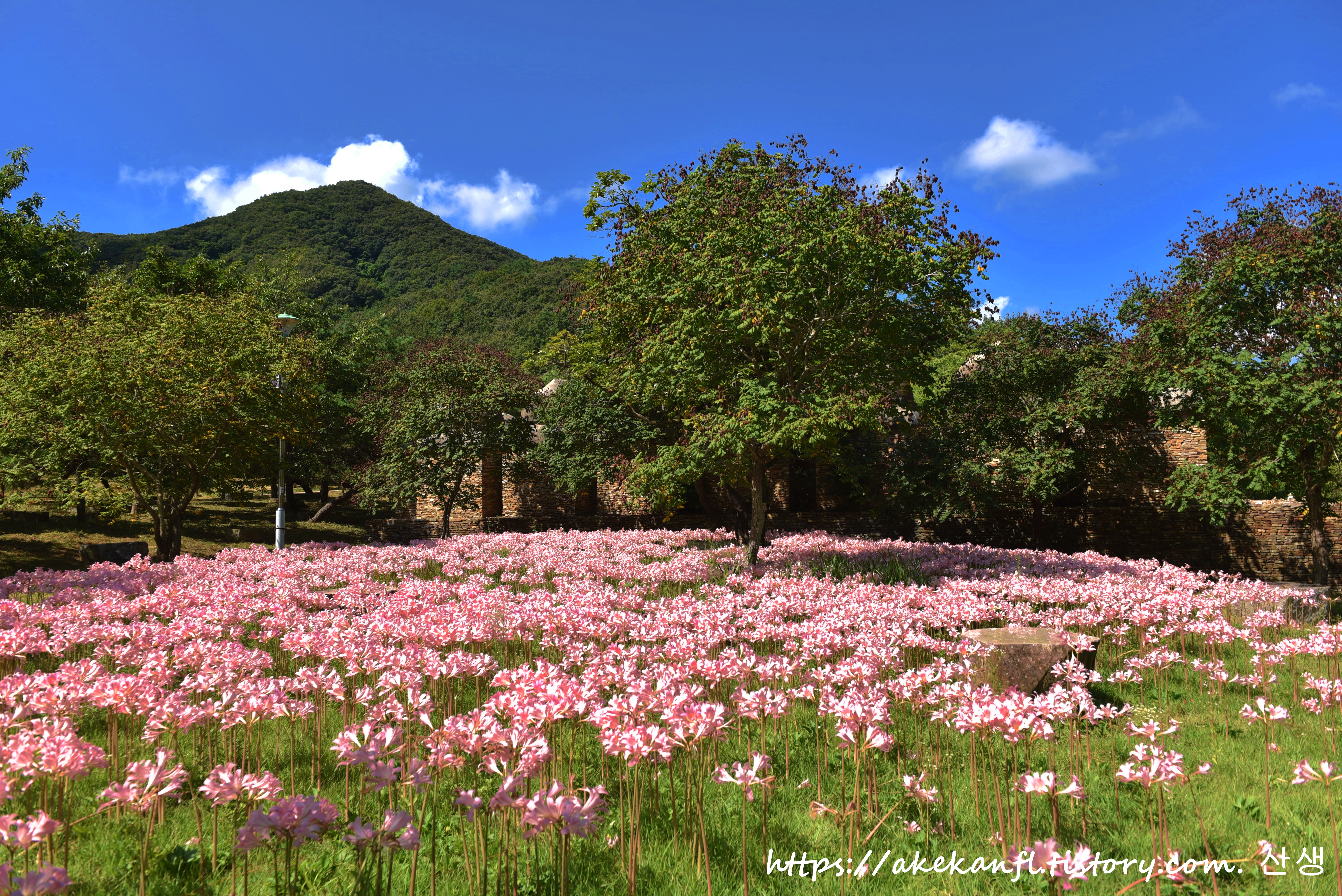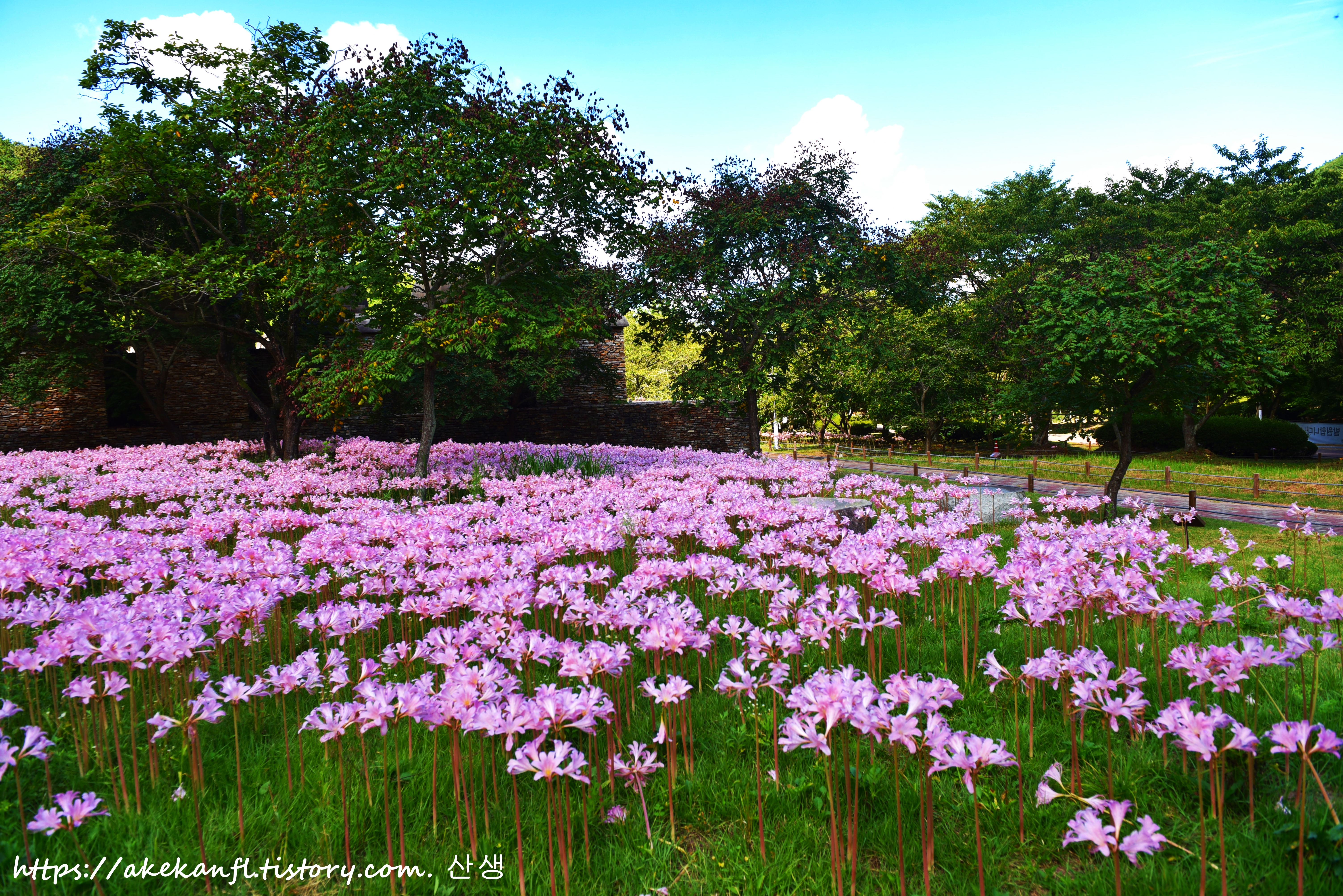 탐방로 옆 분홍상사화 군락지 풍광