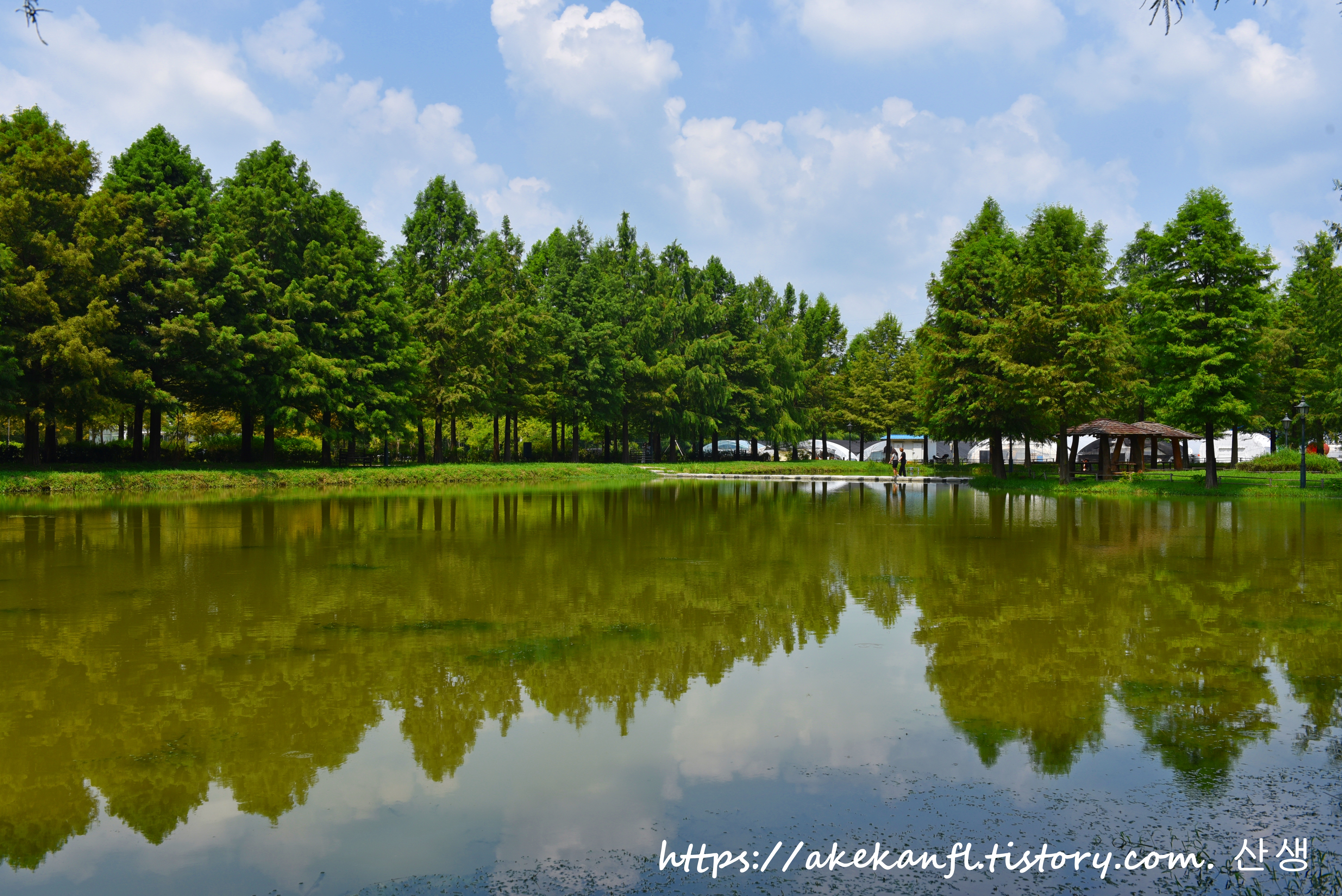 가로수 옆 아름다운 연못을 담아봄