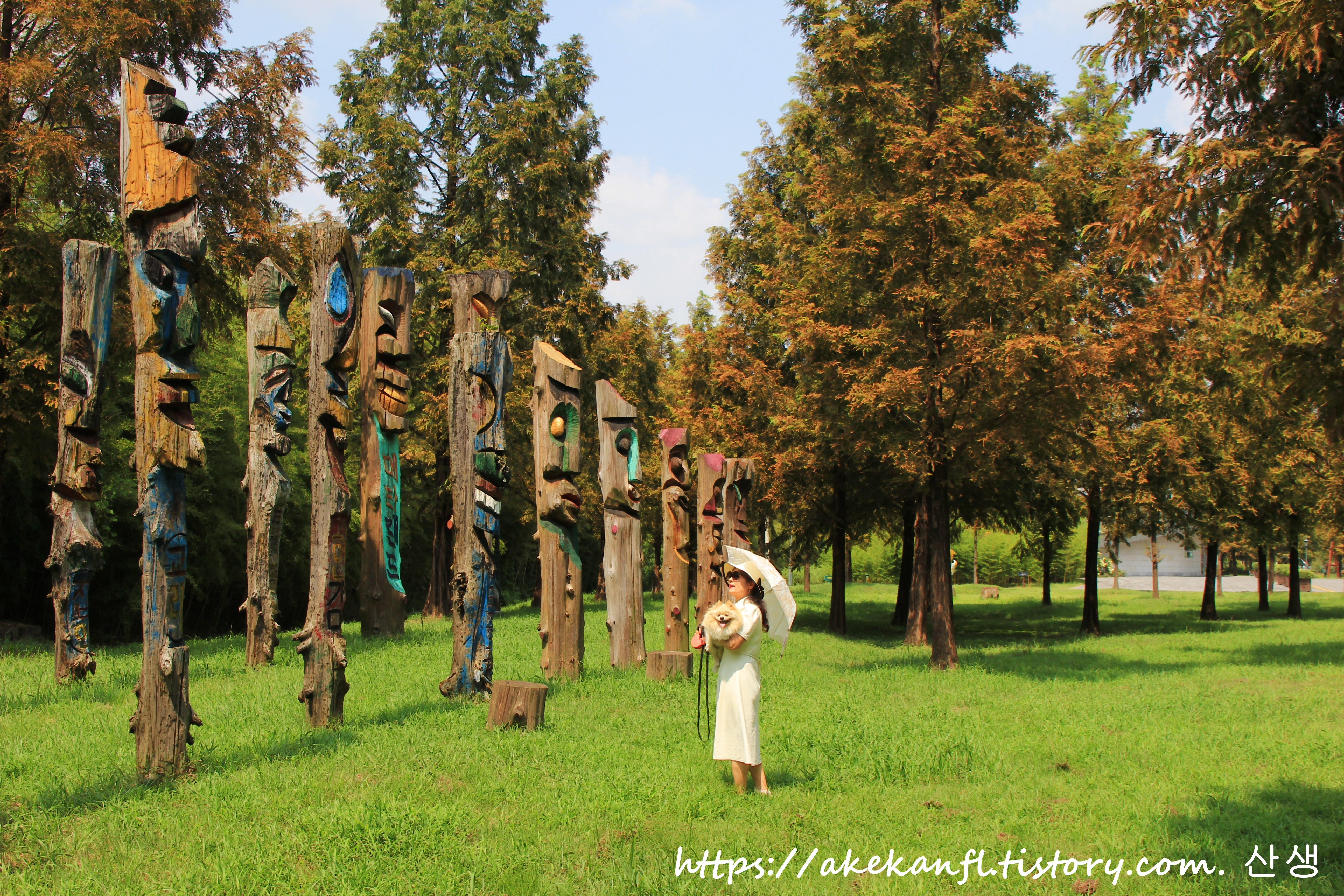 메타세쿼이아랜드의 장승 앞에서...