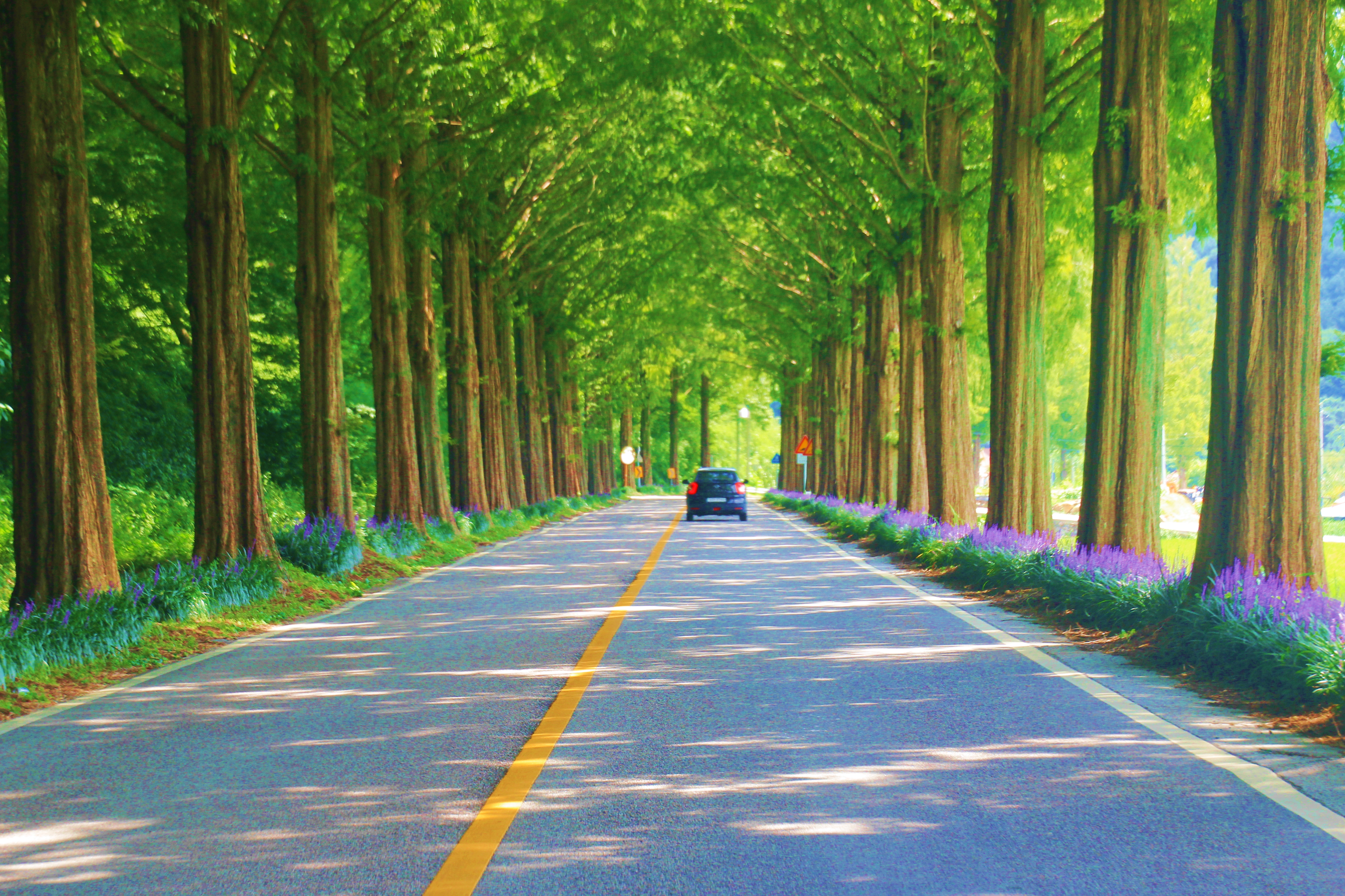 멋진 가로수 터널을 당겨 담고...