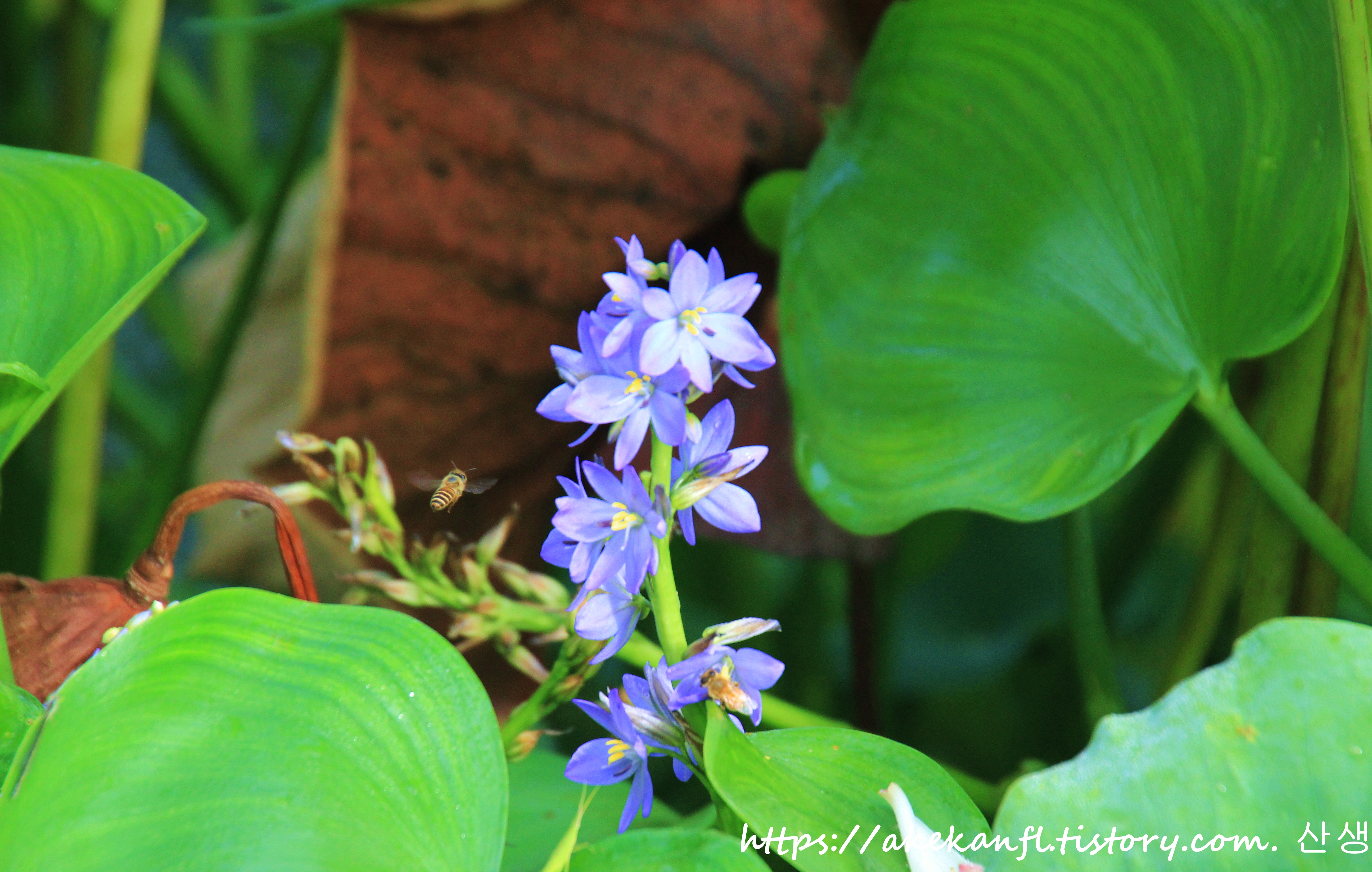 보랏빛 물옥잠을 당겨 담고...