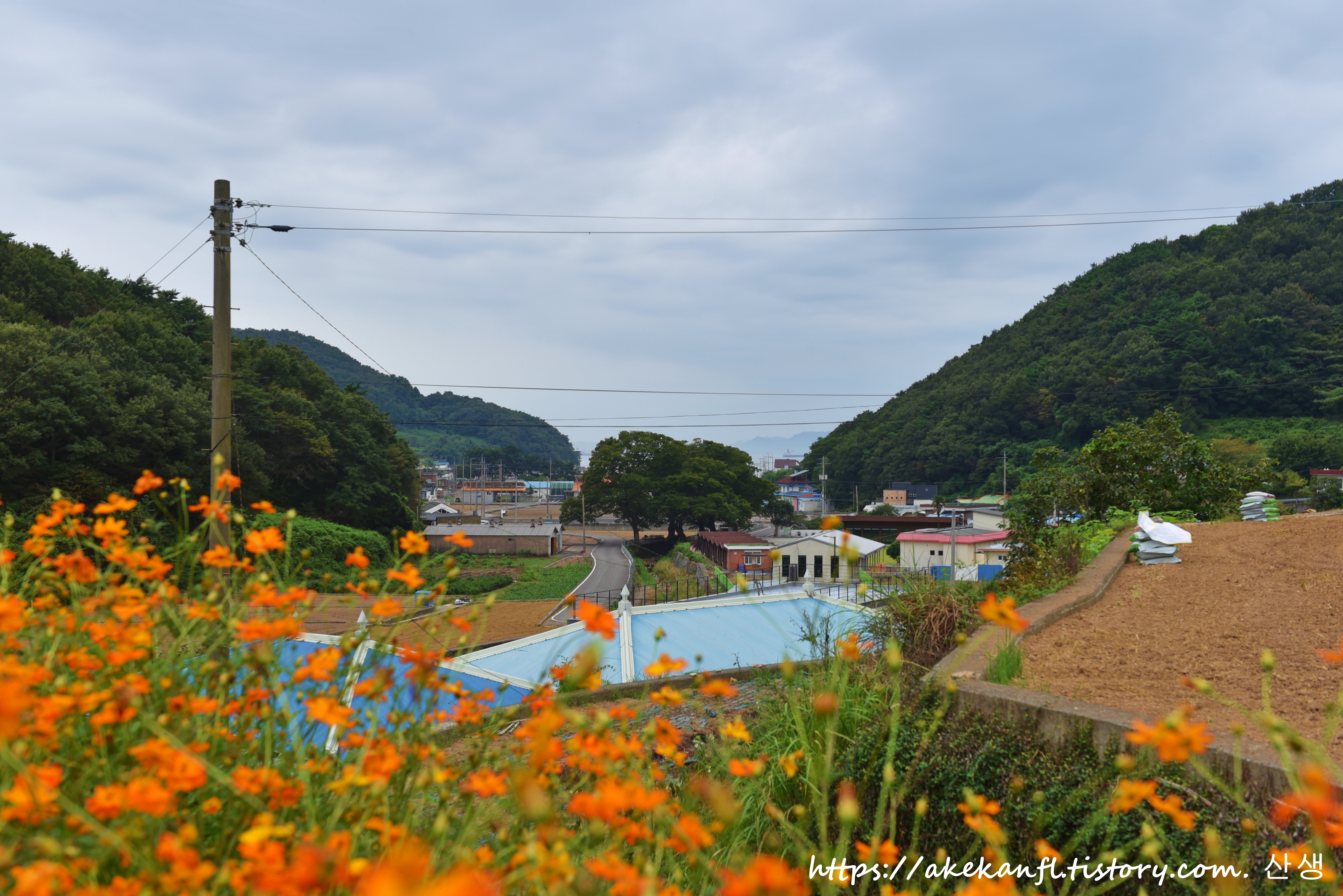 꽃사이로 마을 쪽을 더 당겨봄