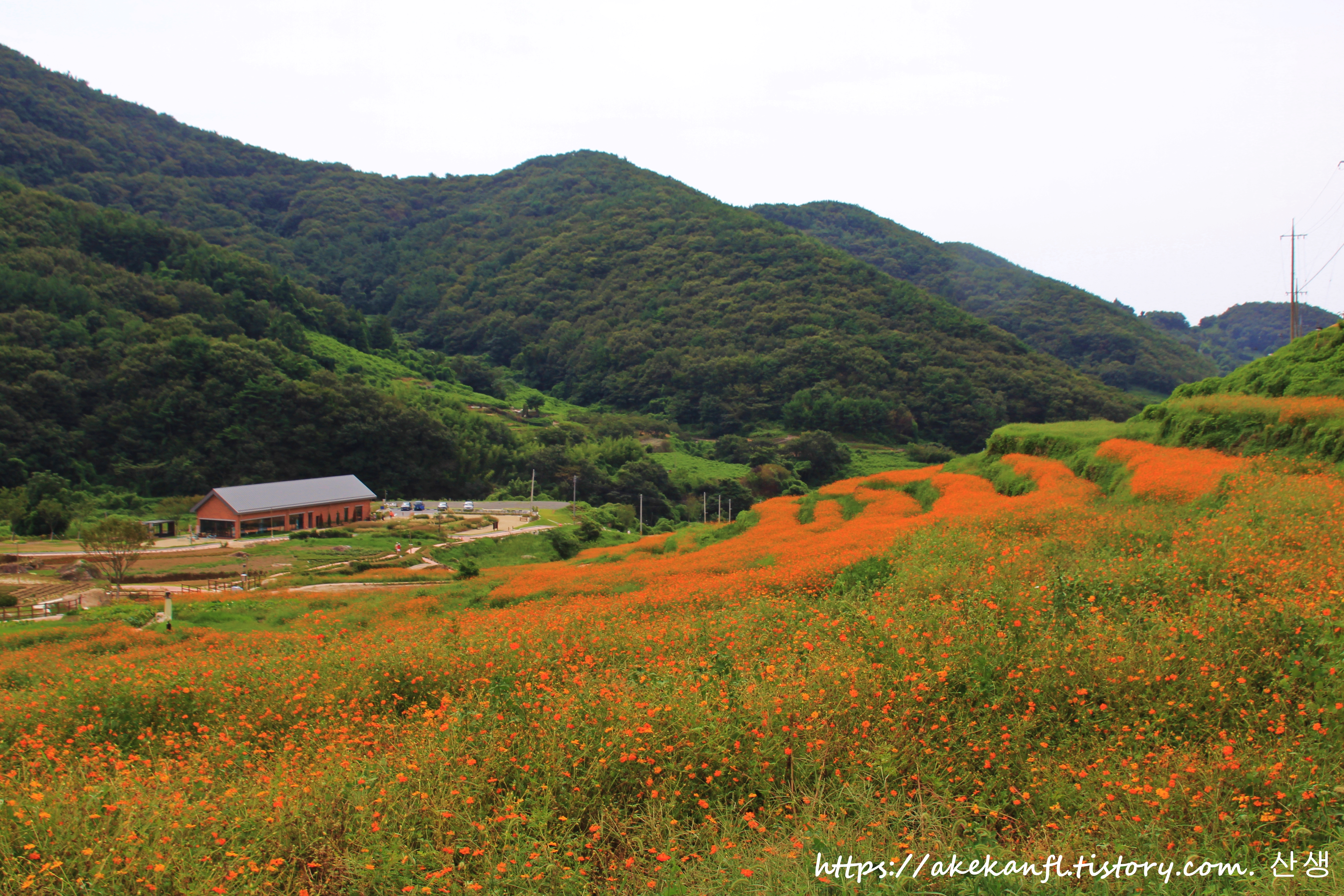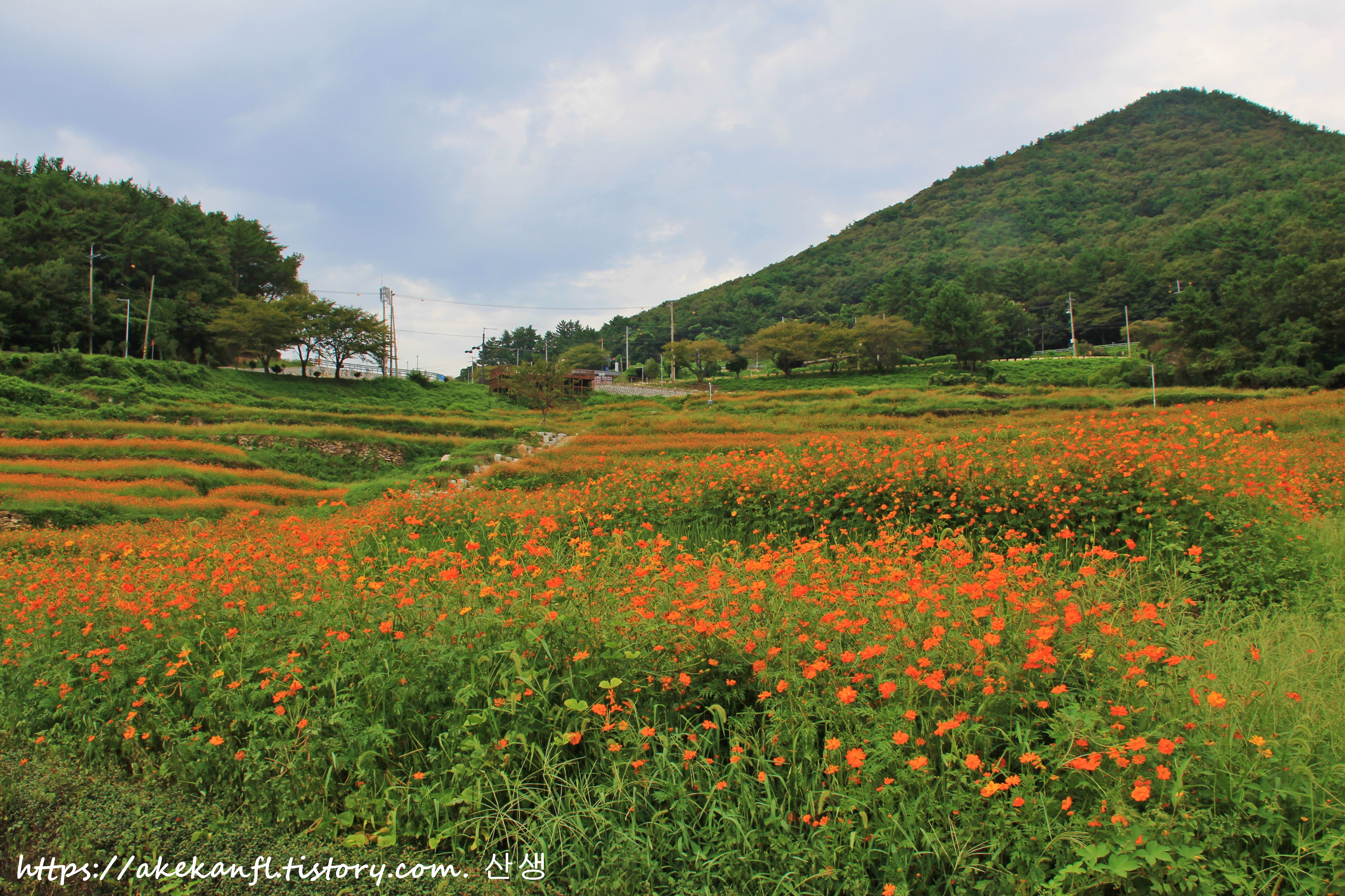 주홍빛 꽃밭의 풍광