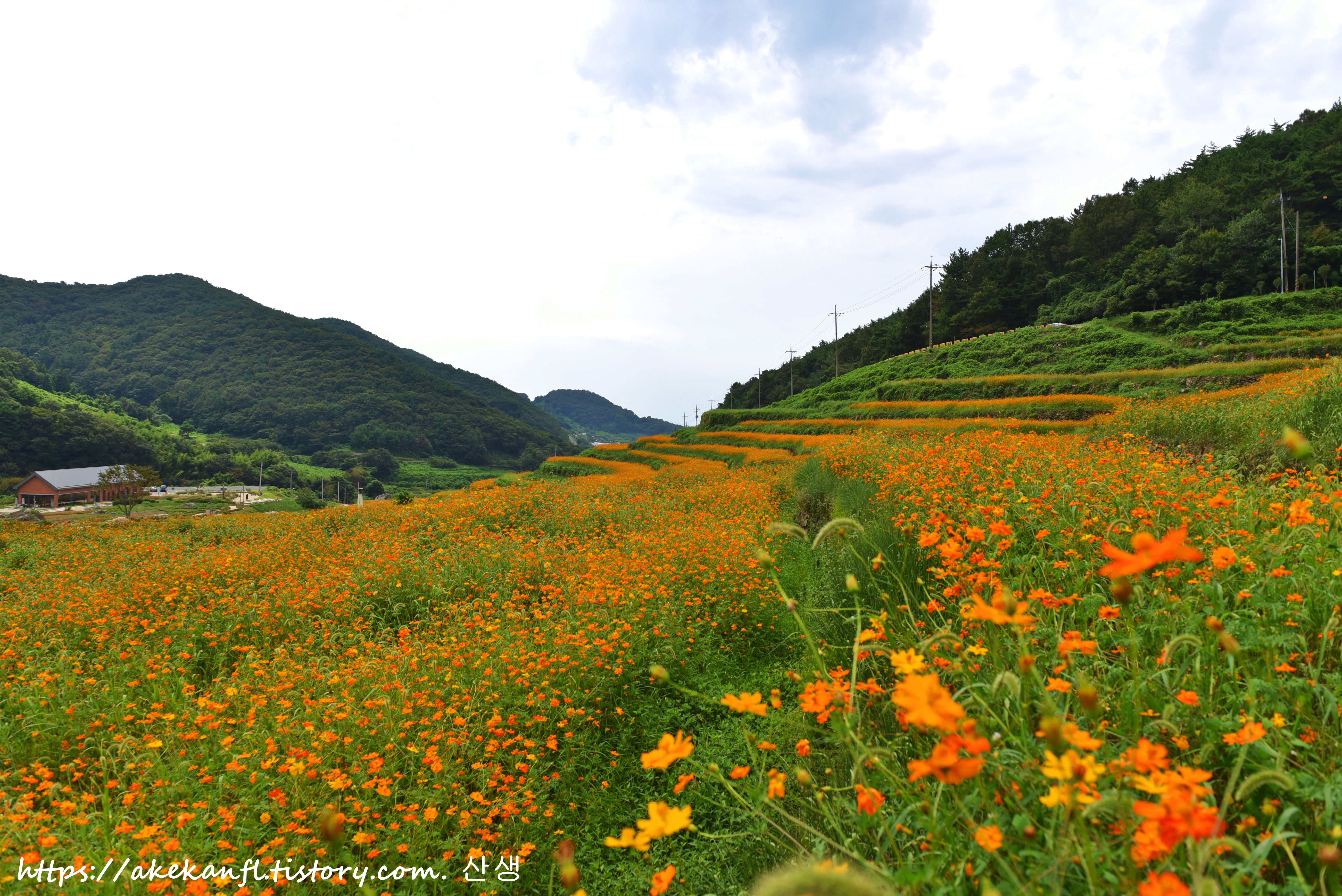꽃밭 둑에서 멋진 풍광을 당겨 담고...