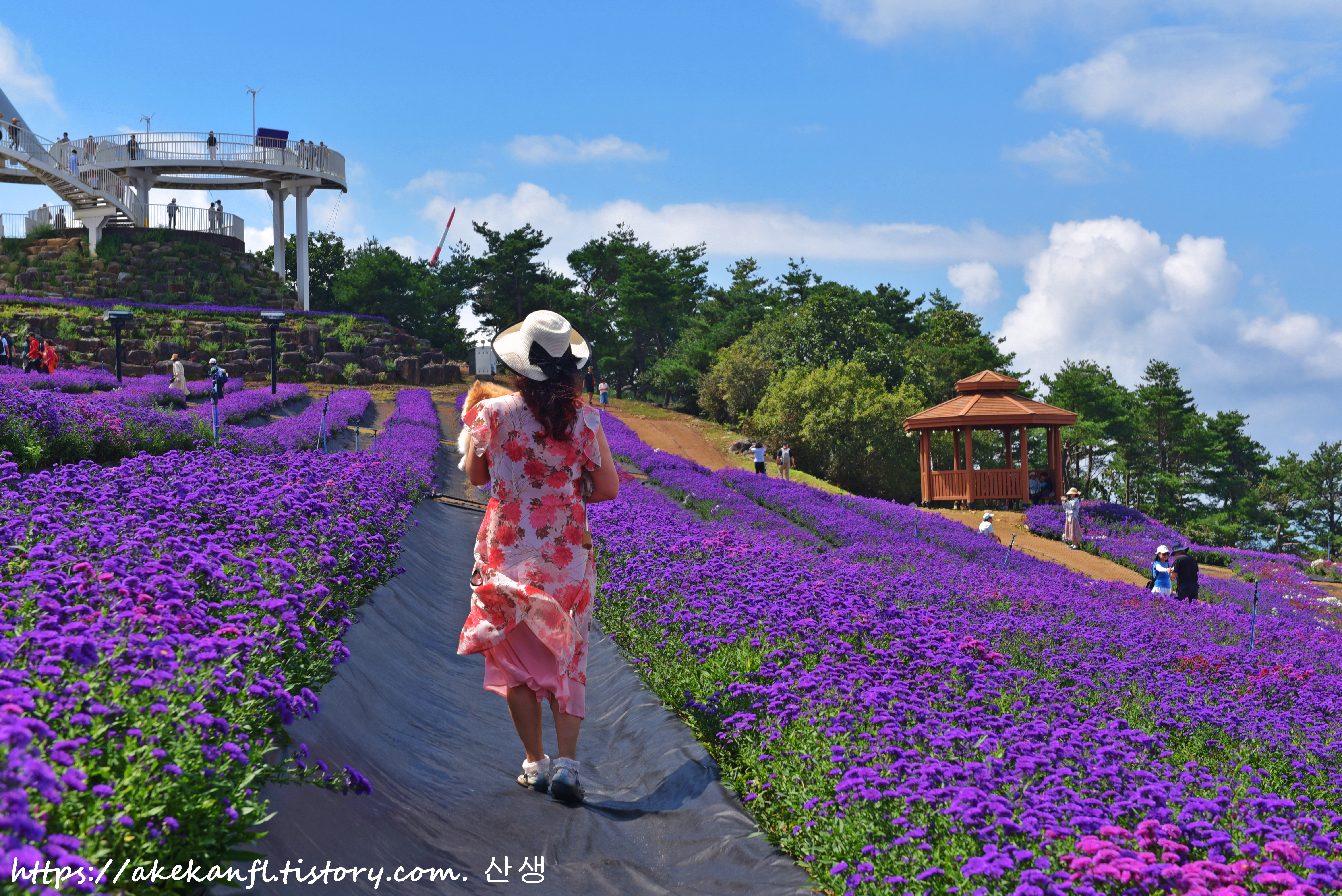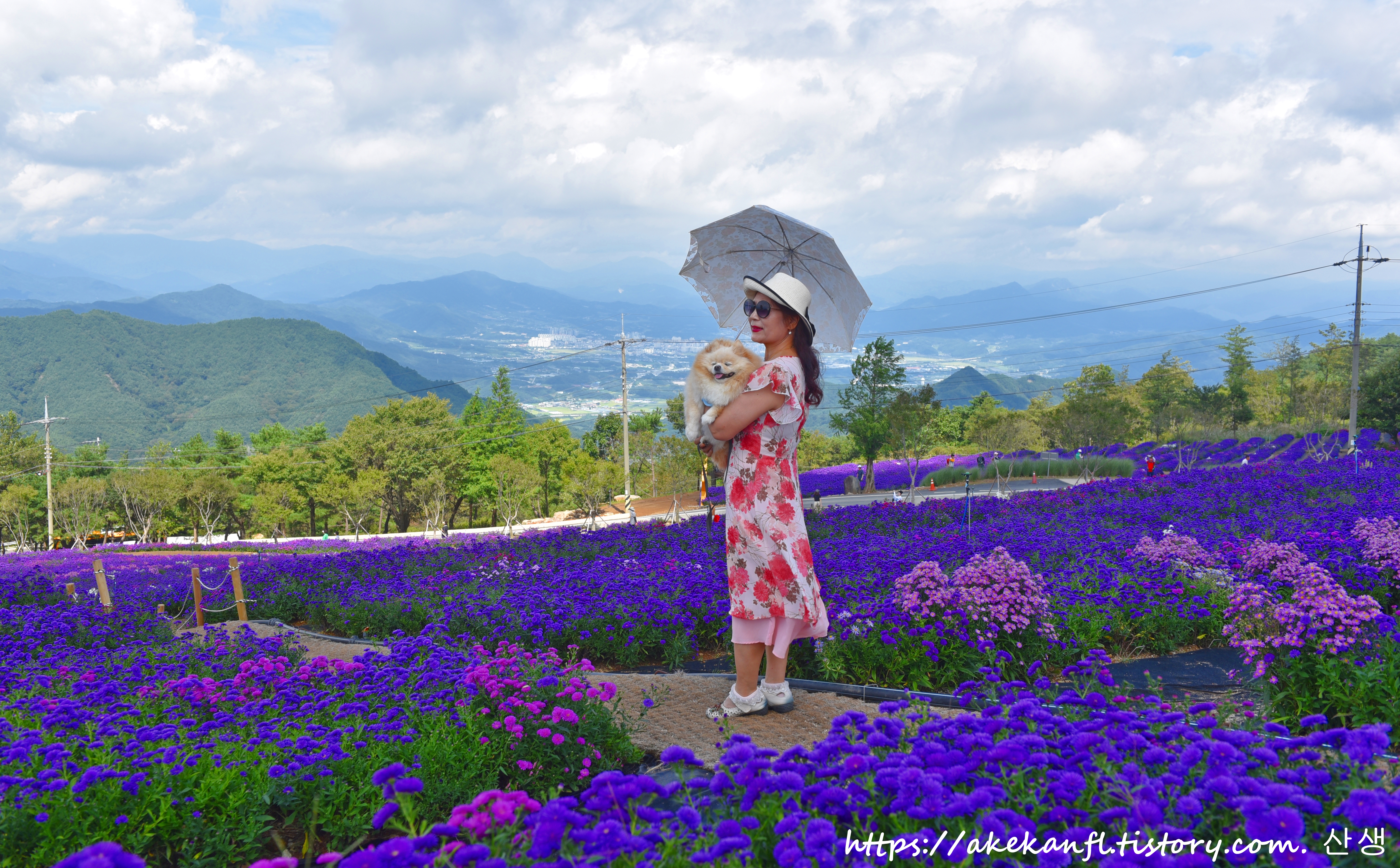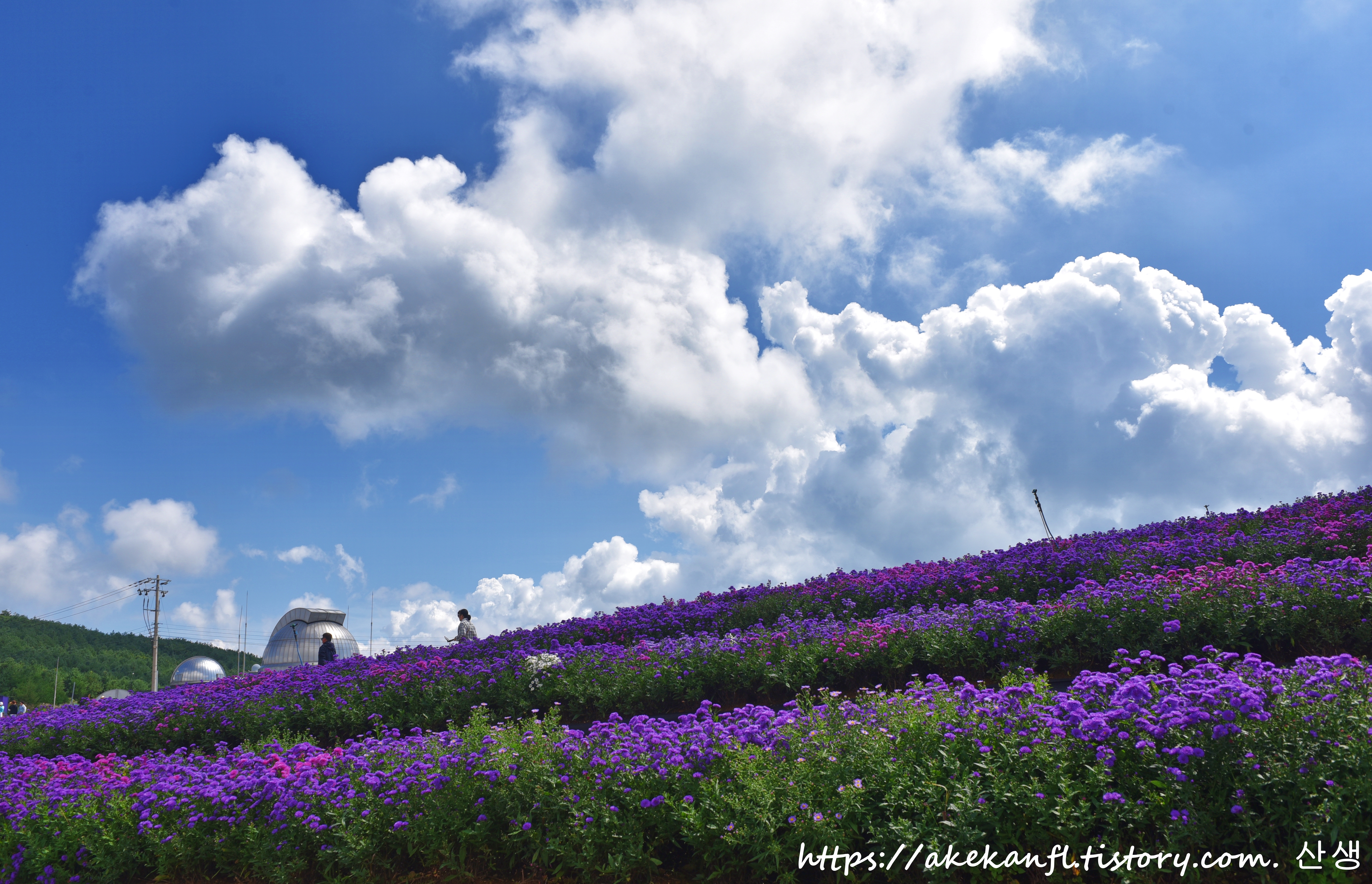 눈부신 보랏빛 꽃밭을 당겨 담고...