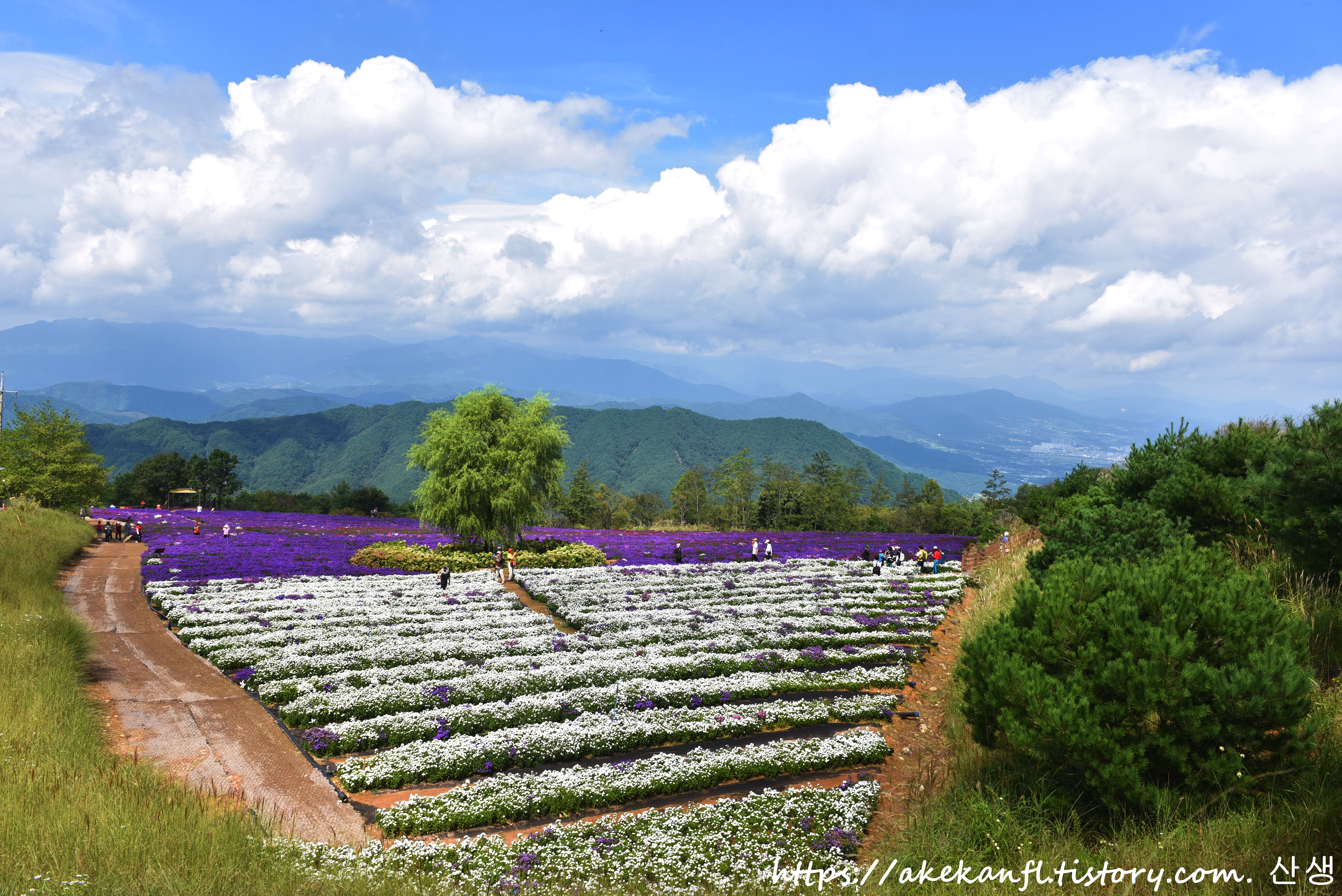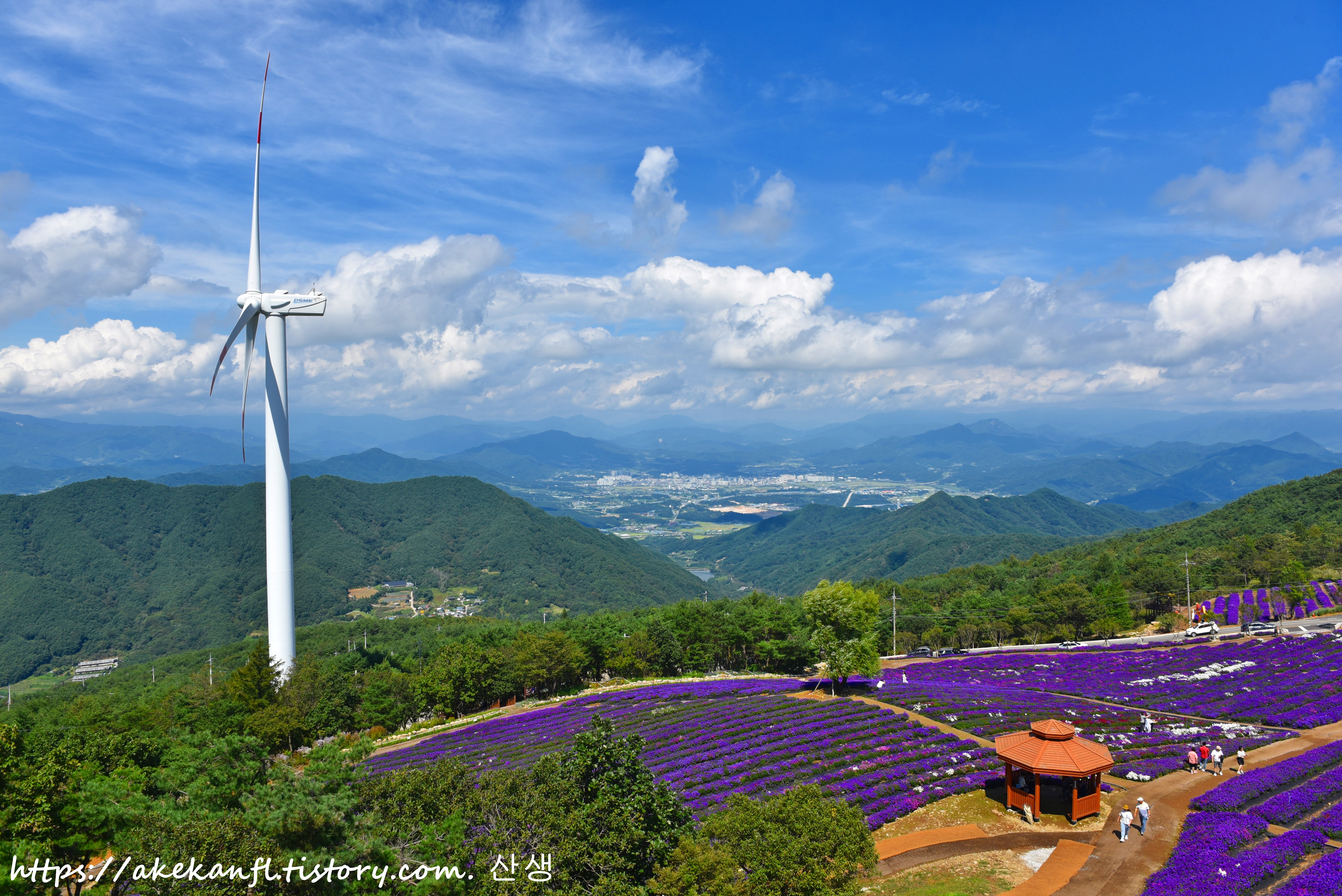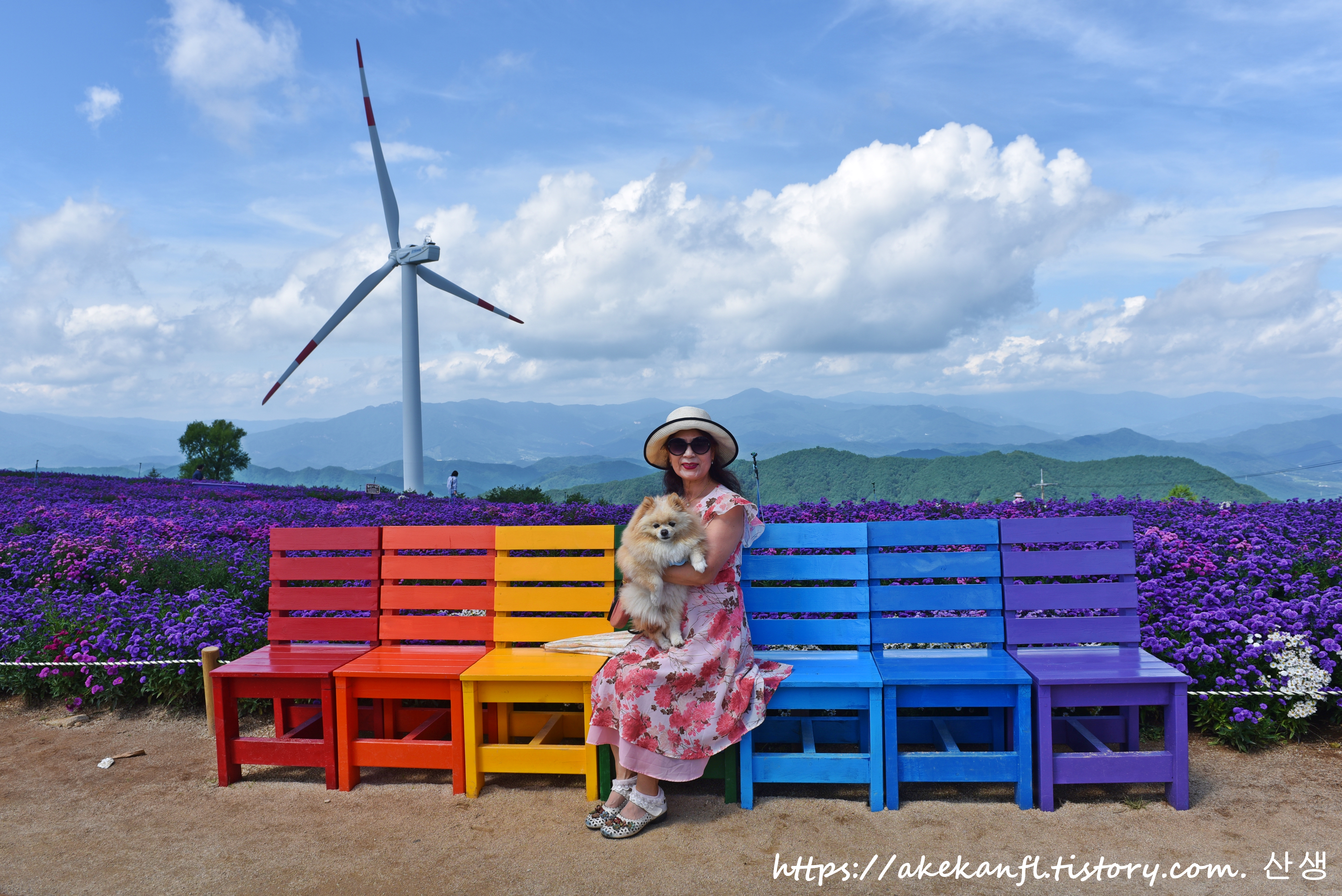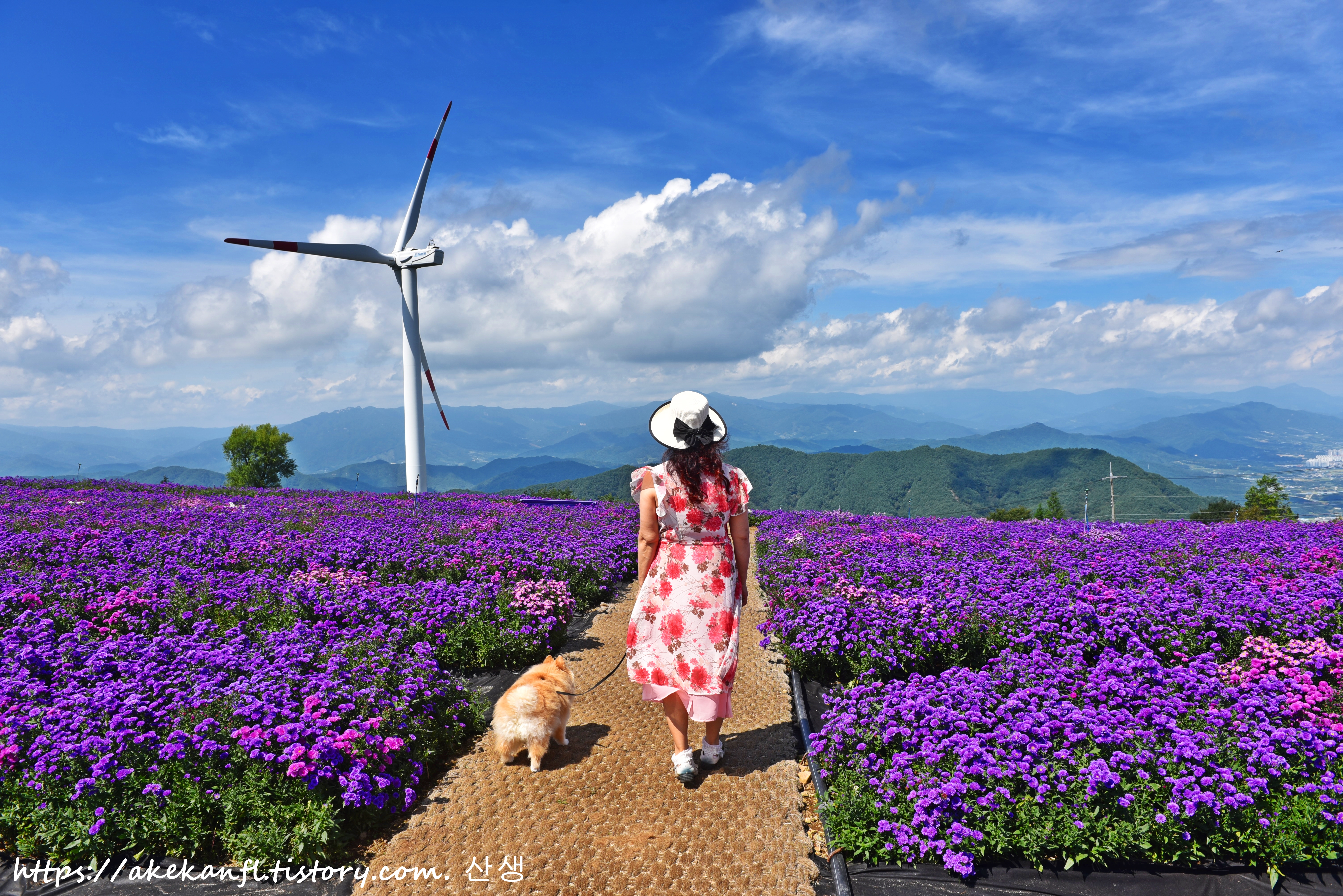 눈부신 보랏빛 꽃밭을 당겨 담고...