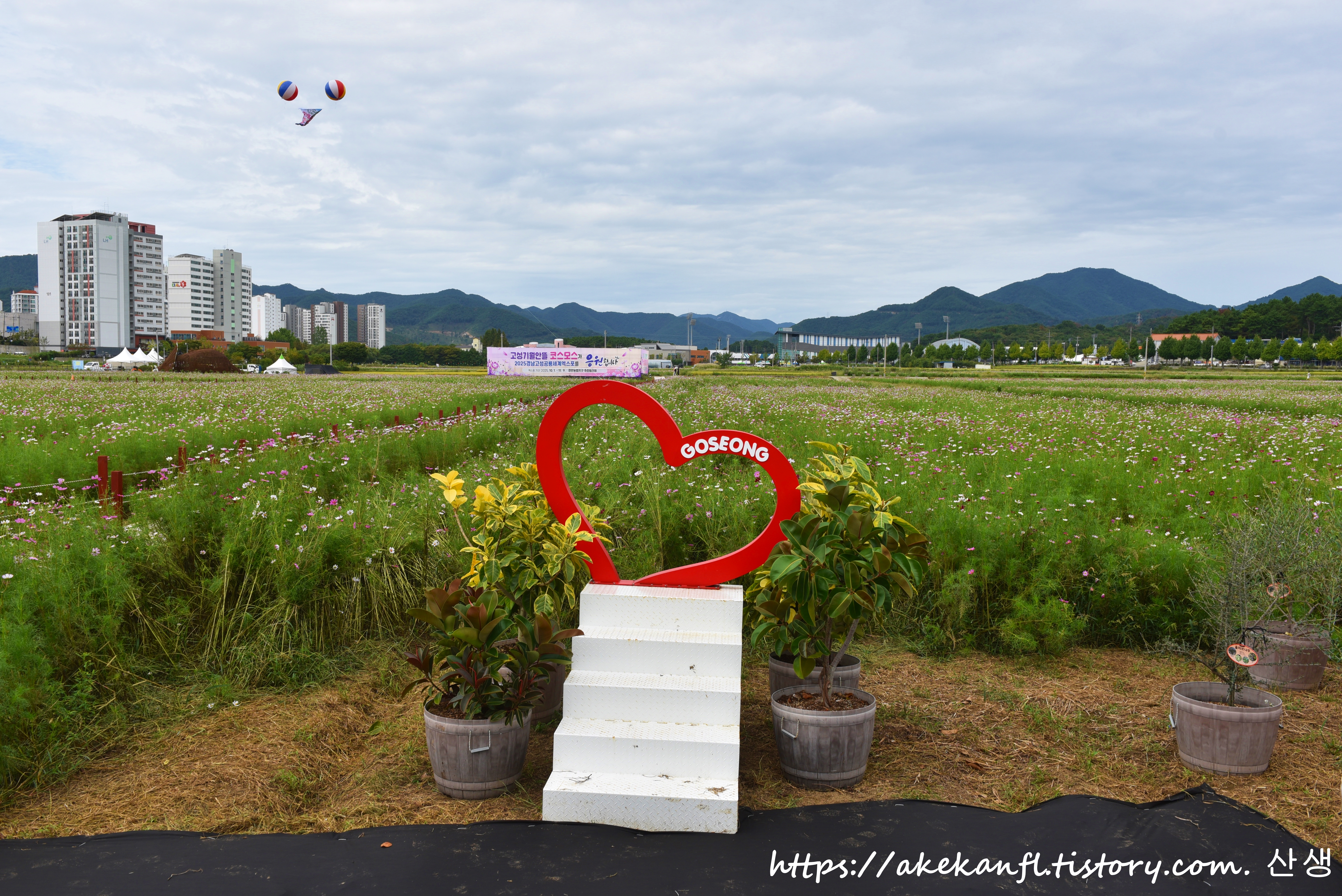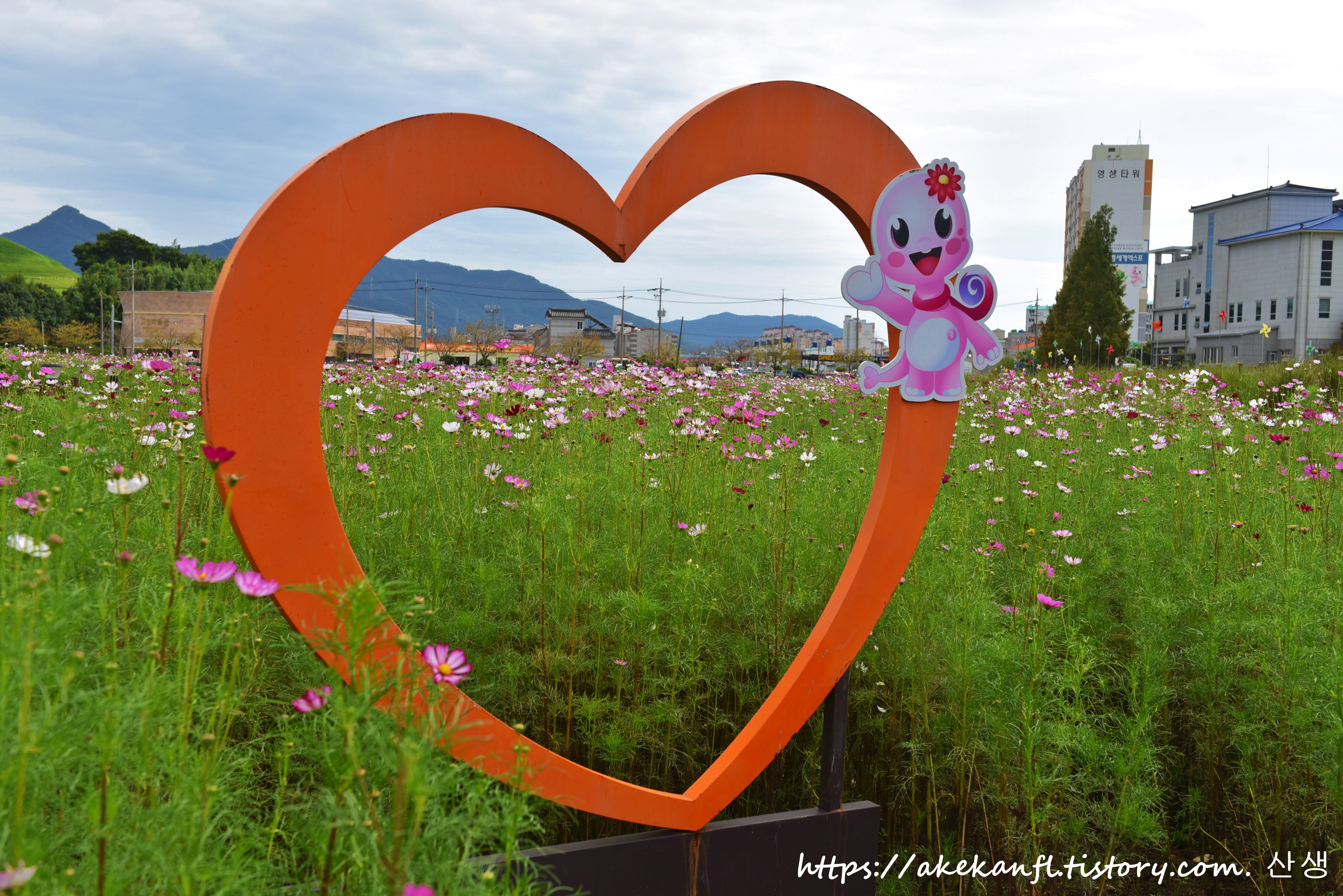 꽃밭 입구의 하트 포토존 쪽을 당겨 담고...