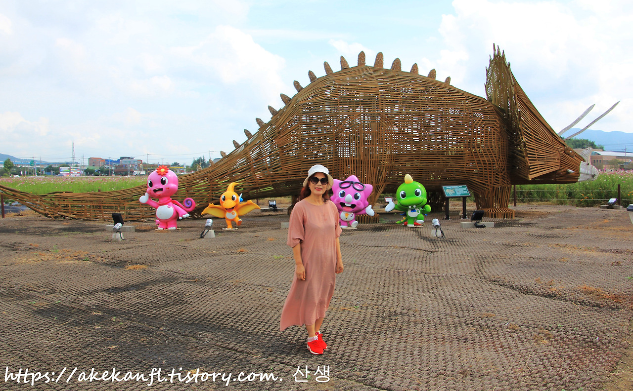 꽃길에서 나무 공룡포토존을 당겨 담고....