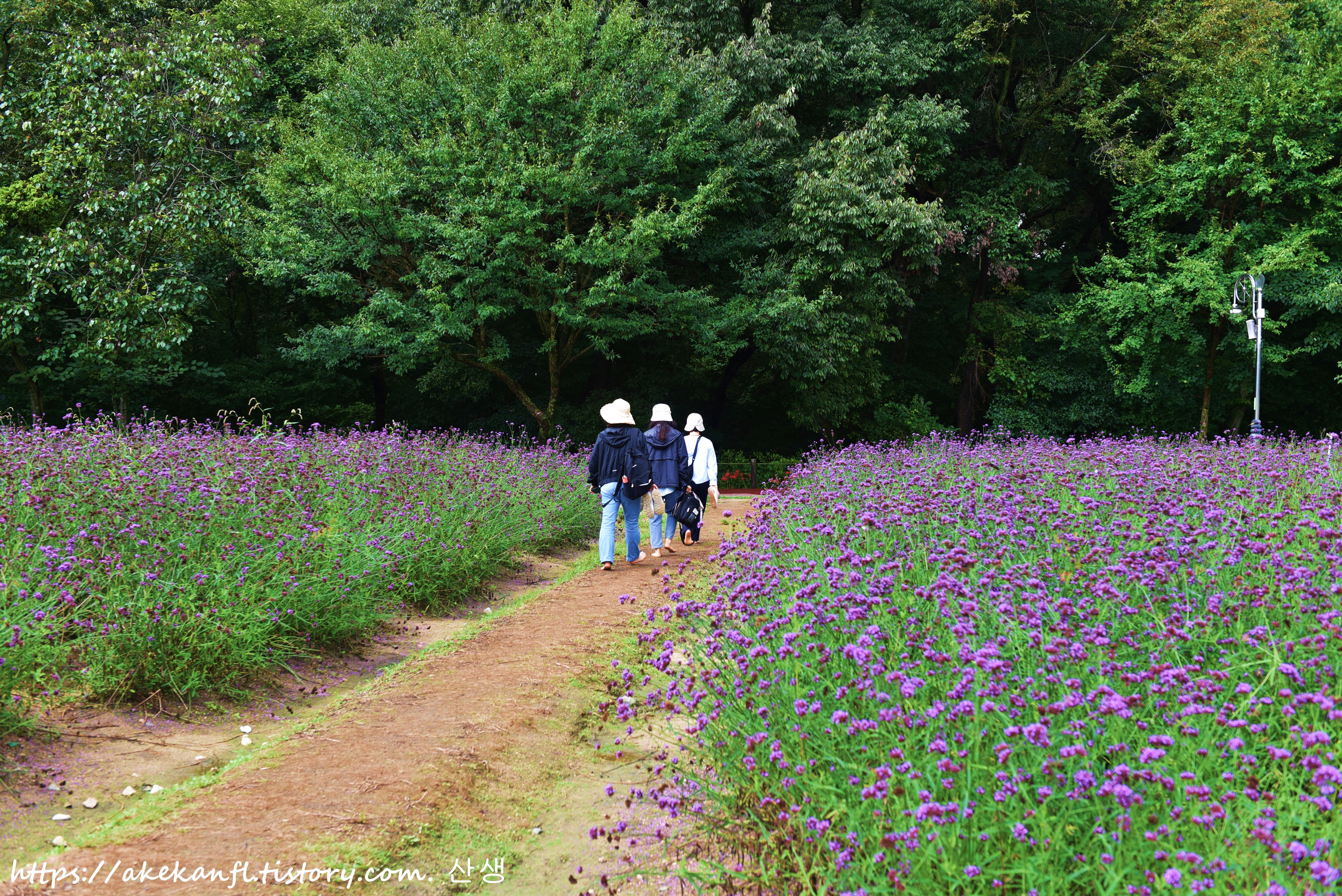 버들마편초 꽃밭 쪽을 당겨 담고...