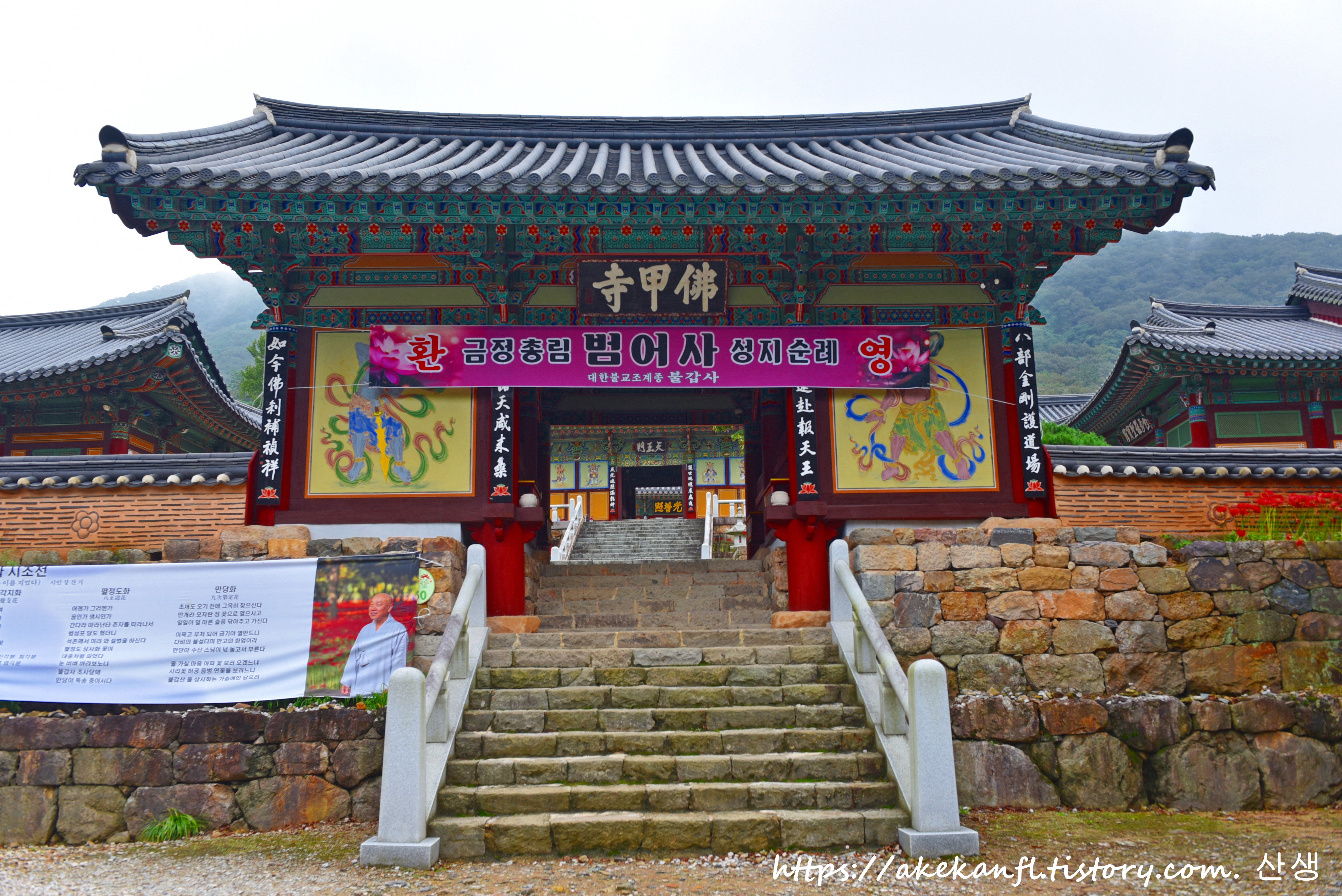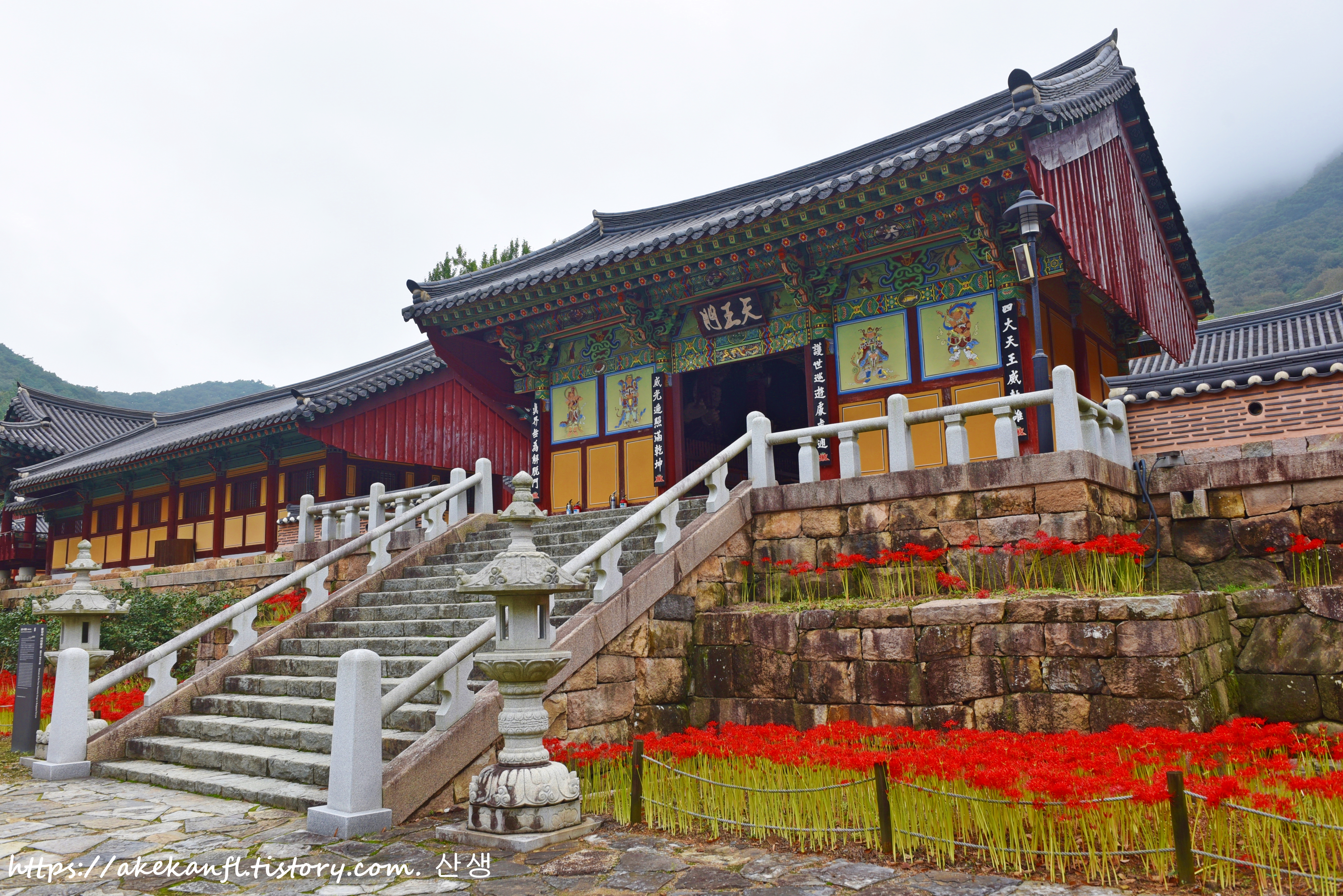 꽃무릇과 어우러진 천왕문 쪽을 담고....