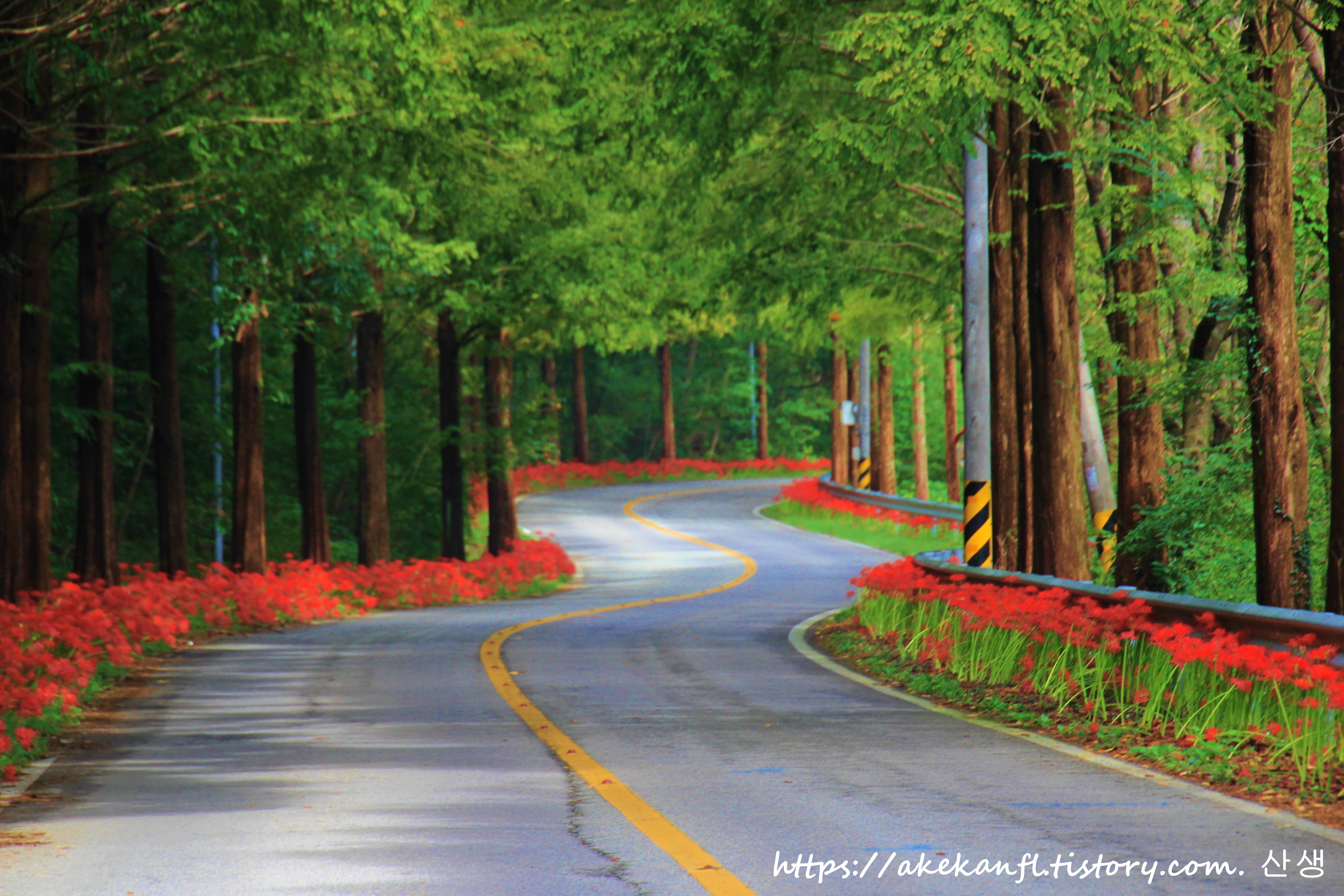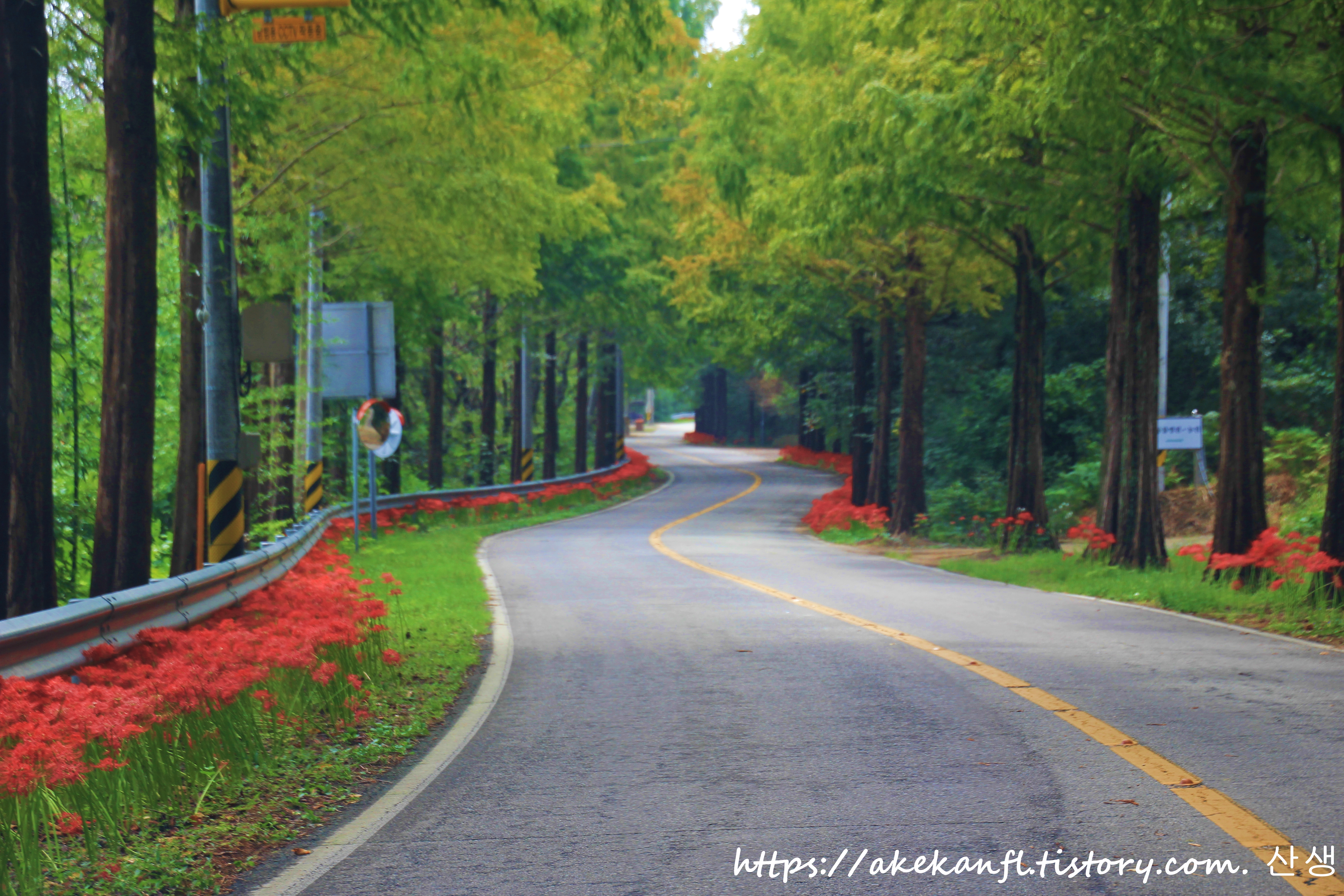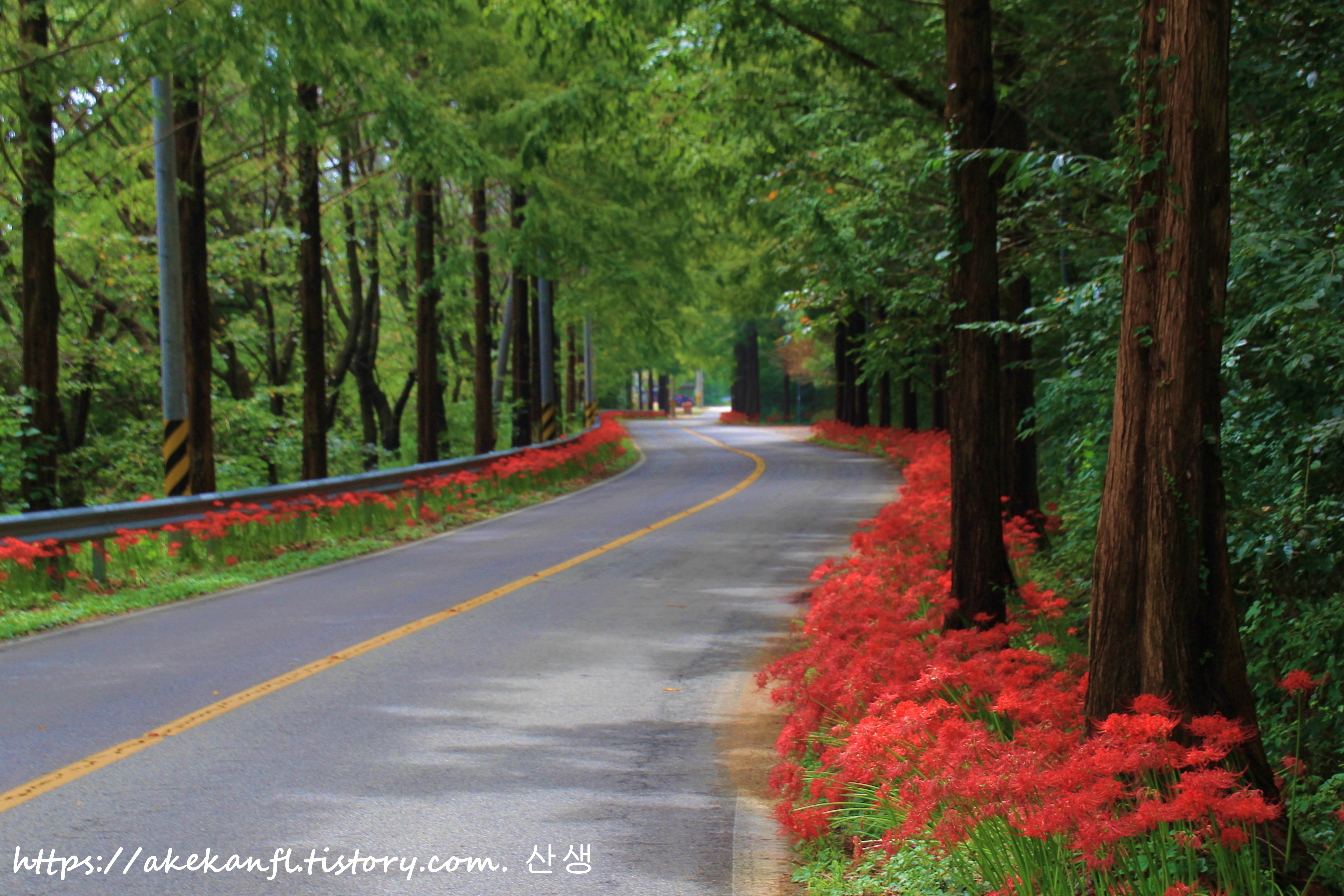 불갑사로 이어지는 도로의 꽃무릇 풍광