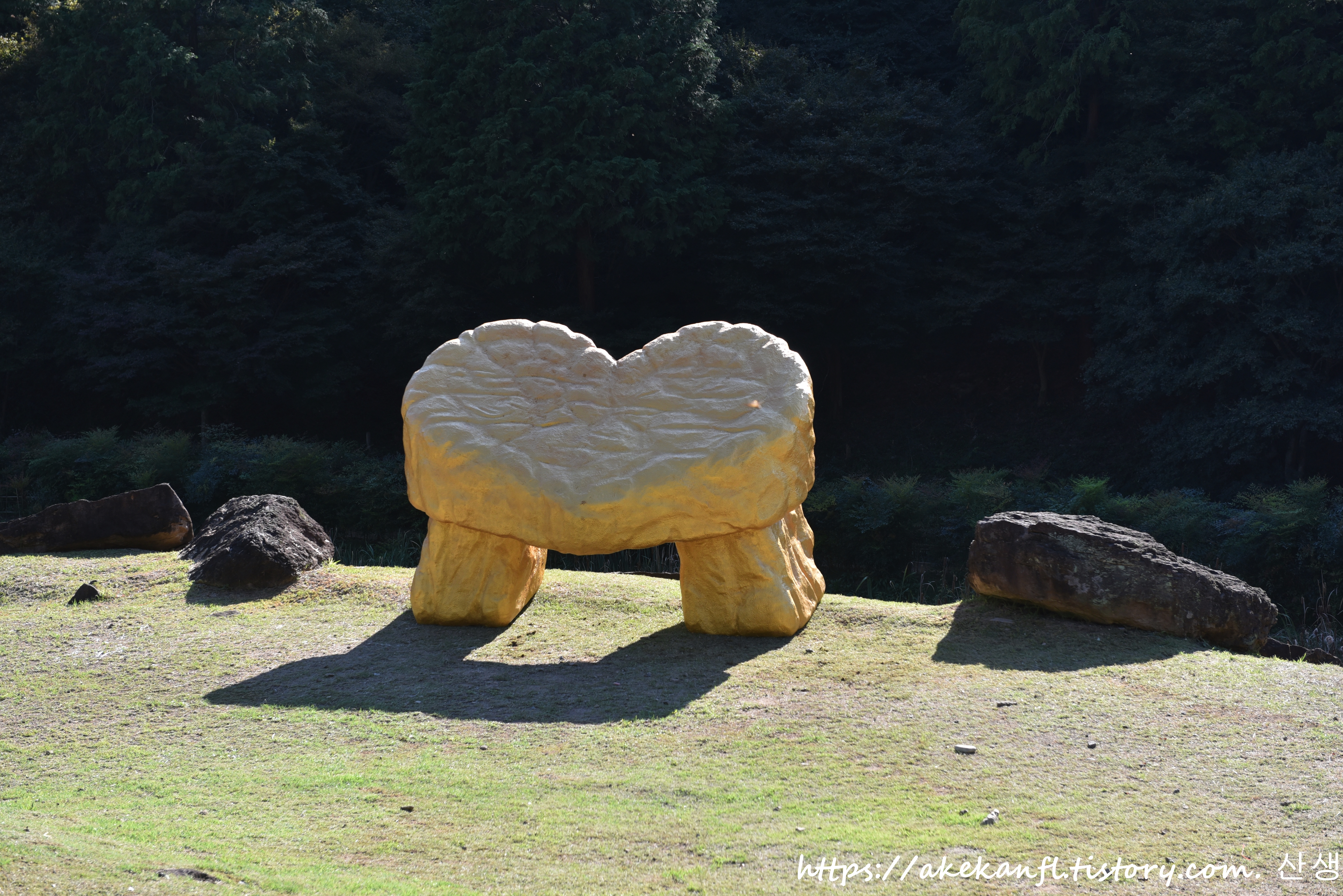 꽃길 아래의 고인돌 하트 포토존을 당겨 담고...