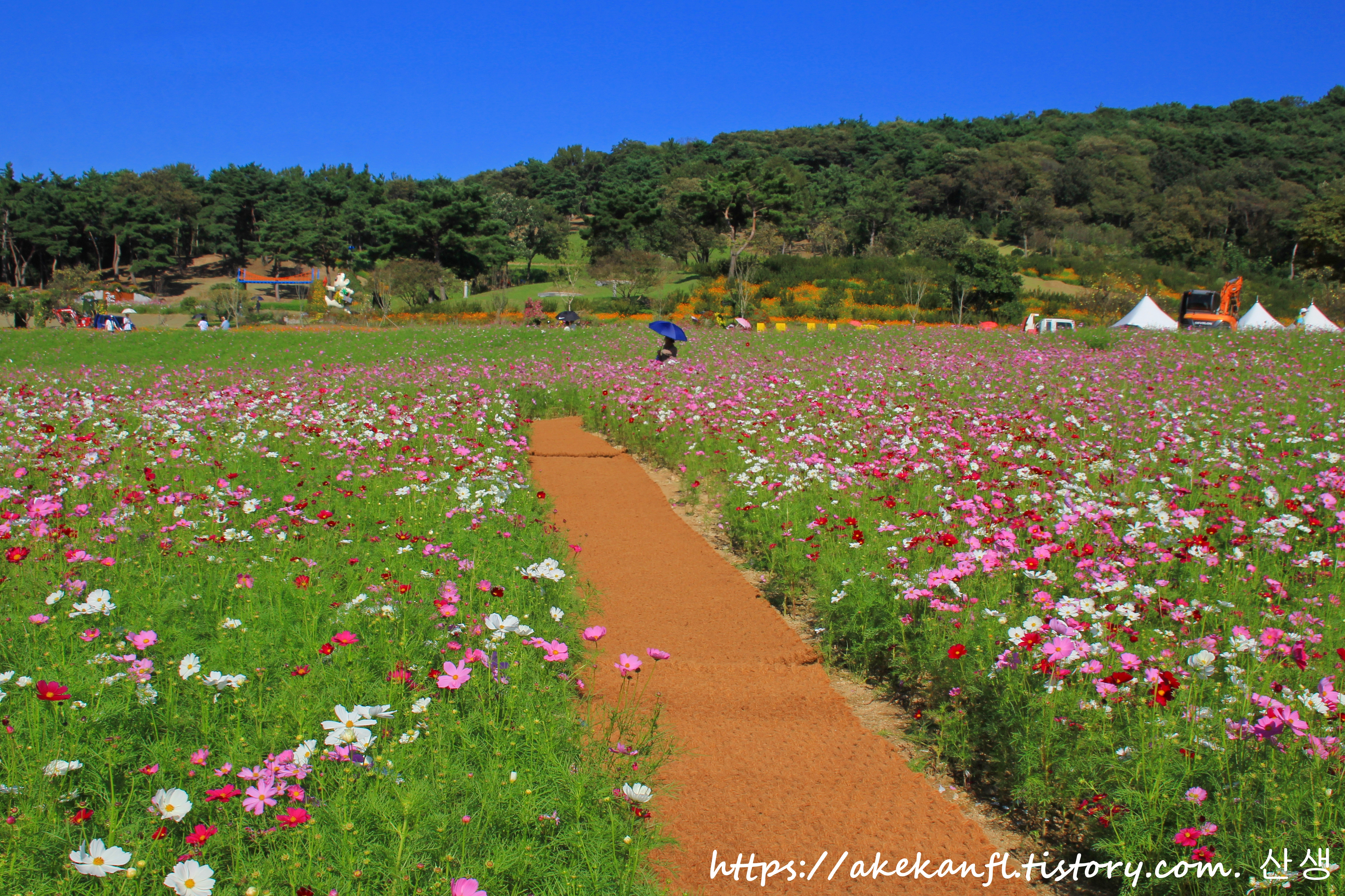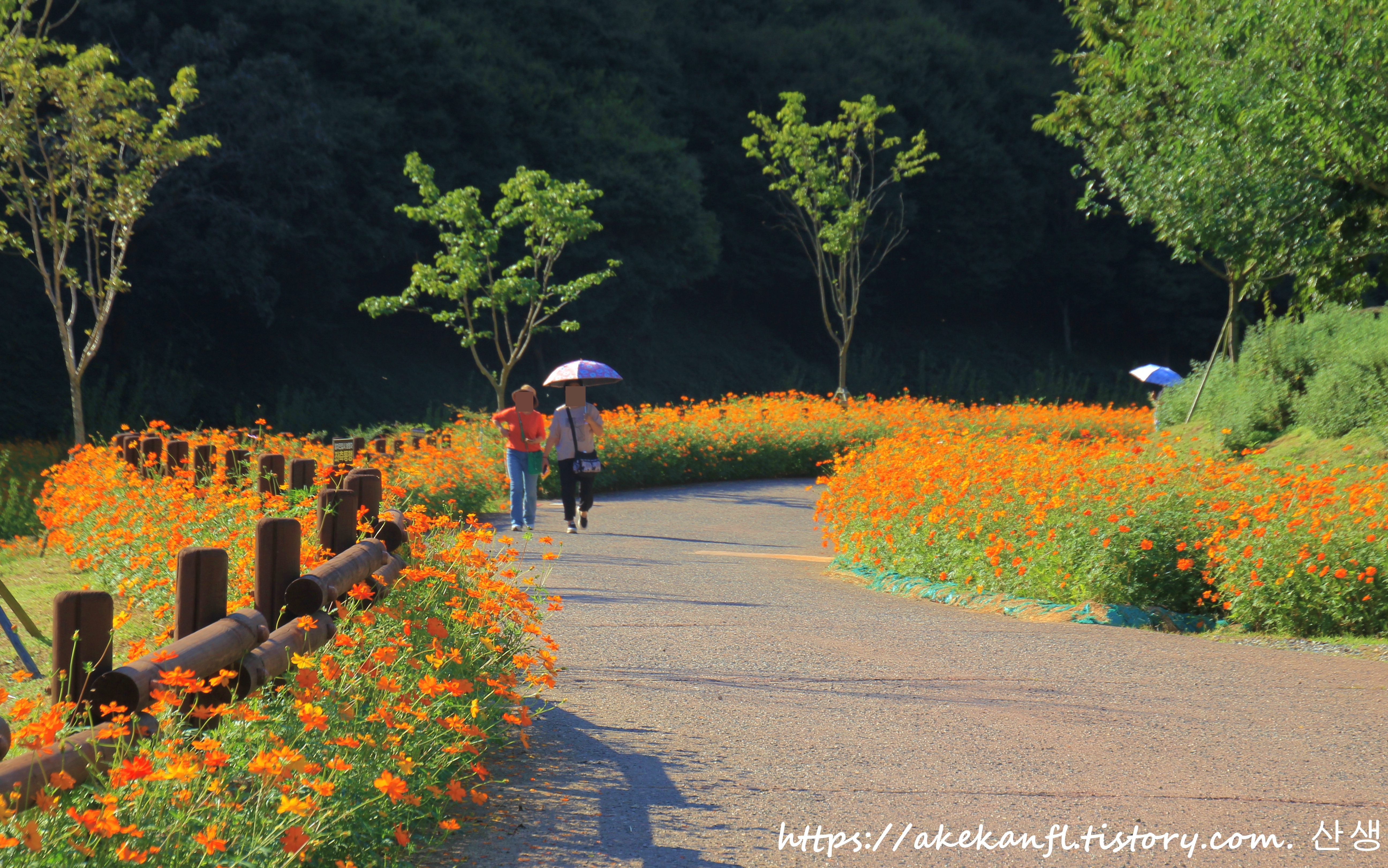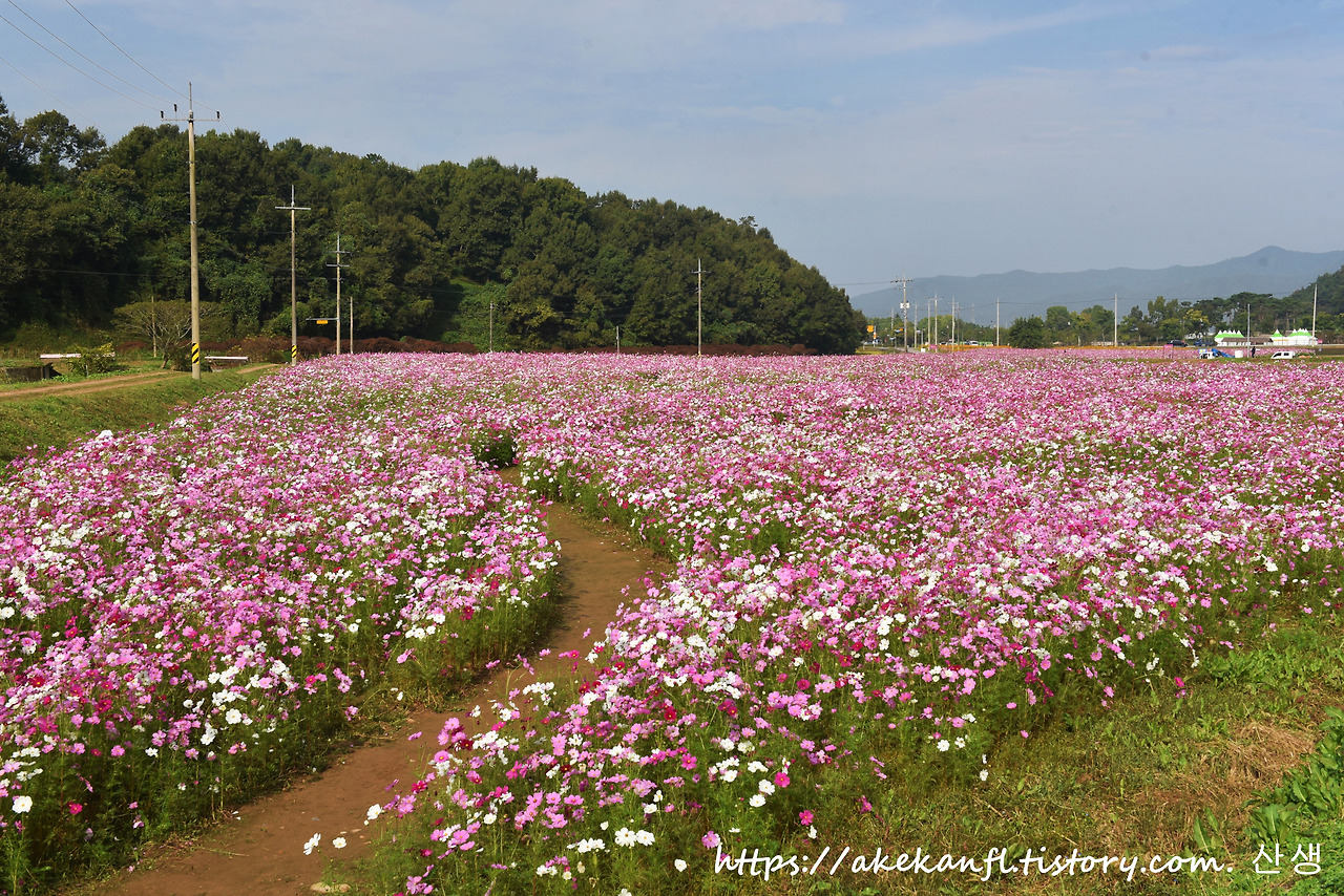 눈부신 코스모스 꽃밭을 당겨 담고...