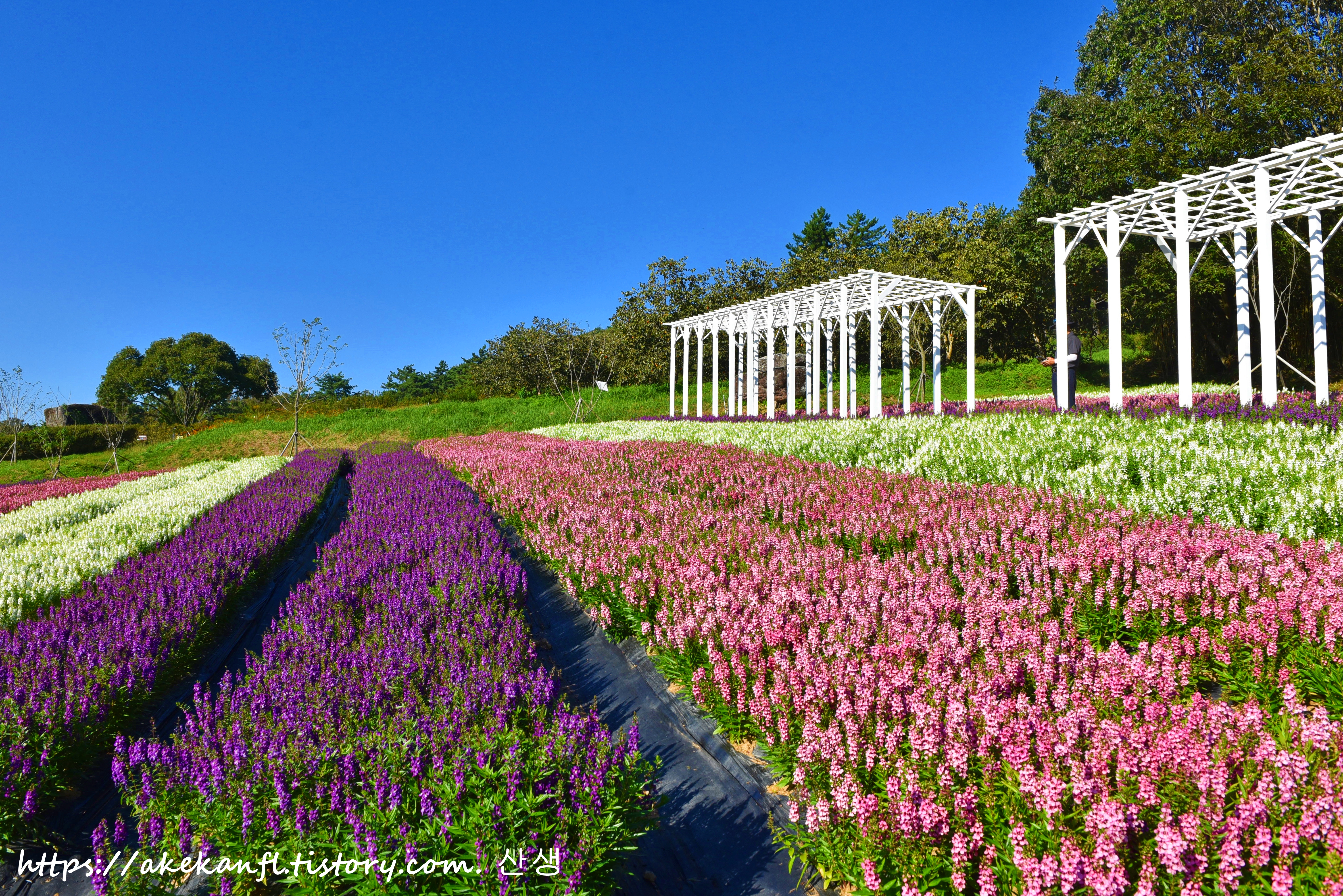 꽃길에서 언덕의 안젤로니아 꽃밭을 당겨 담고...
